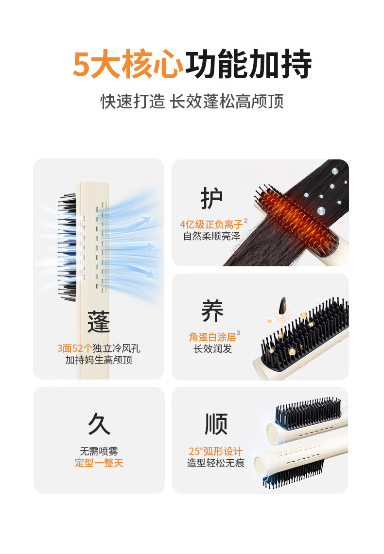 罗拉如炬冷风定型直发梳负离子卷直两用无痕梳发根高颅顶发型蓬松神器直板夹不伤发持久卷发棒梳内扣造型梳 【冷风无痕】一梳即顺不炸毛