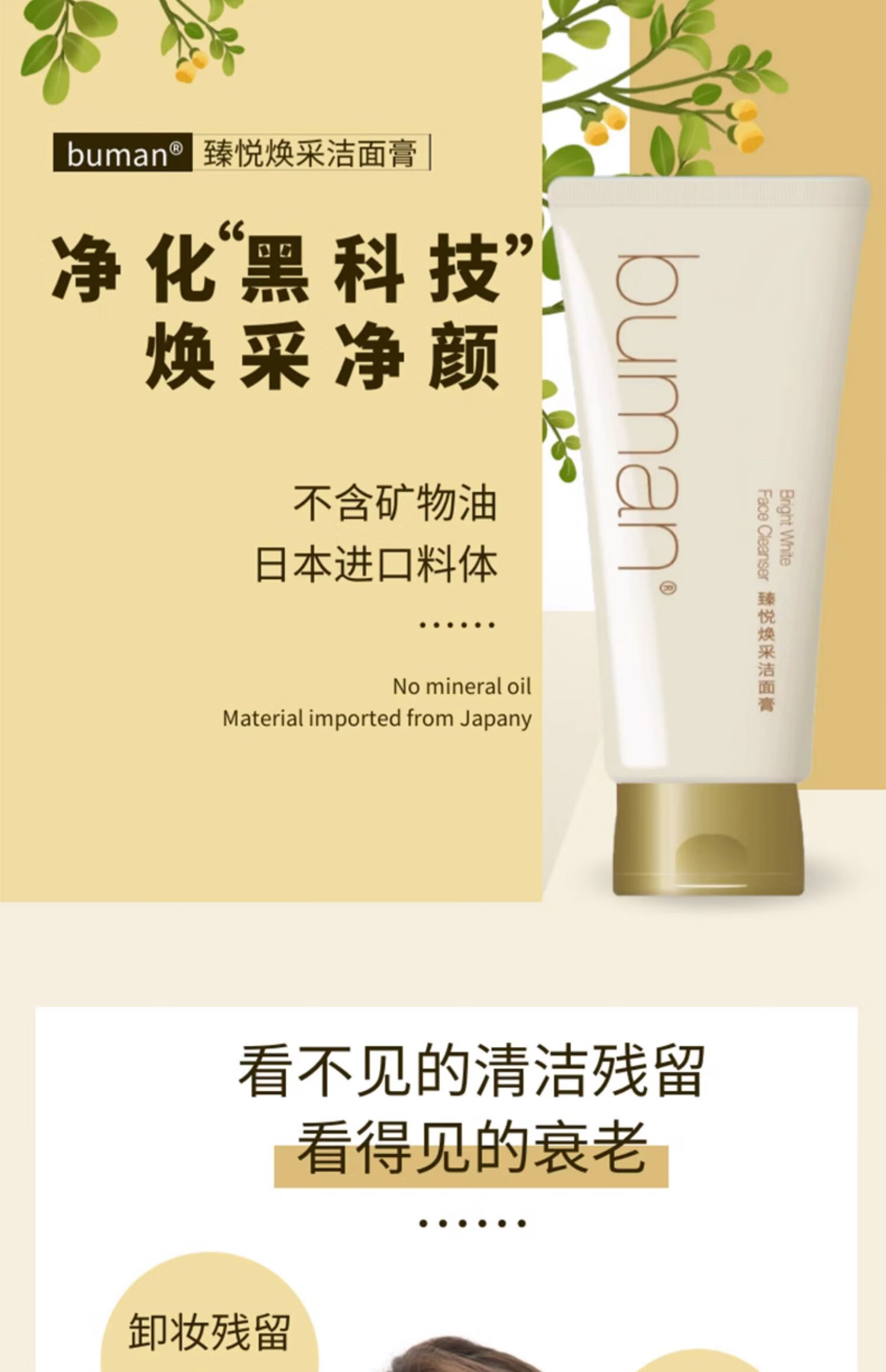 BUMAN不螨臻悦焕采洁面膏120ml温和洁面乳男女清洁保湿洗面奶专柜正品