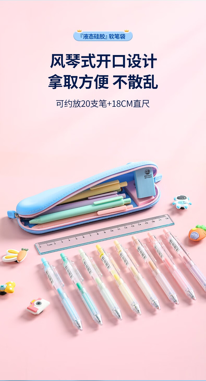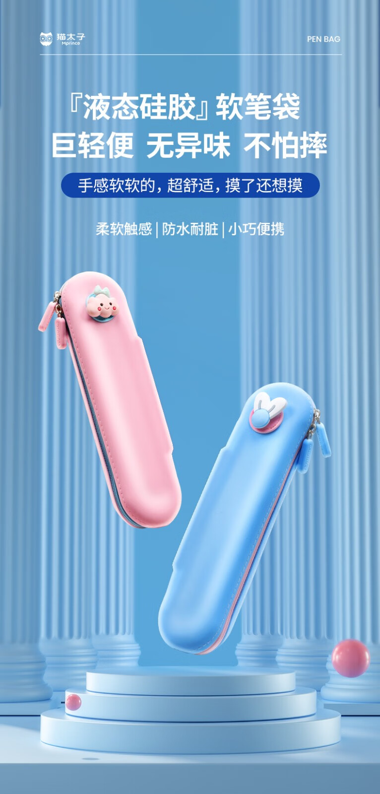 猫太子(MAOTAIZI) 高颜值液态硅胶笔袋小学生儿童女铅笔盒学习文具盒简约时尚抗压耐摔轻盈防水 百变液态硅胶笔袋 樱花粉