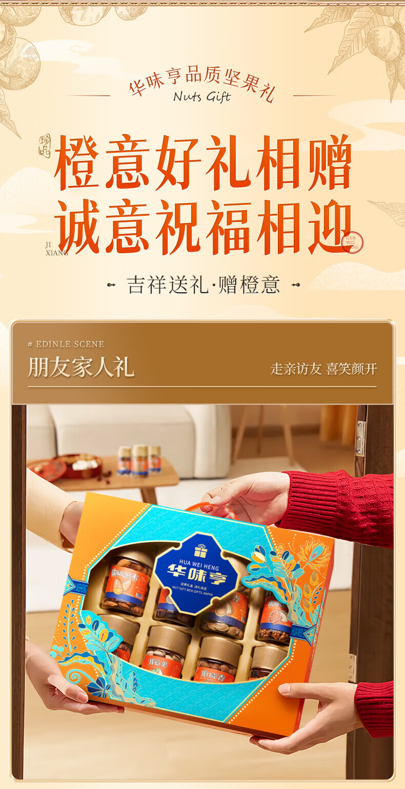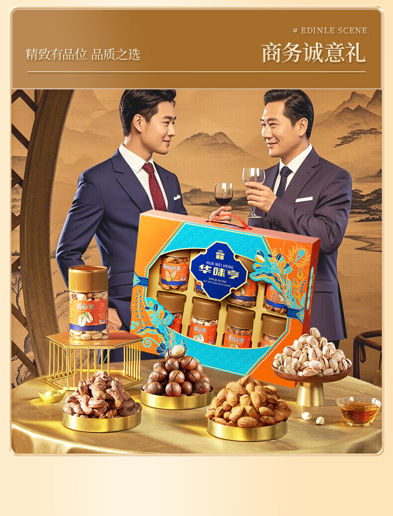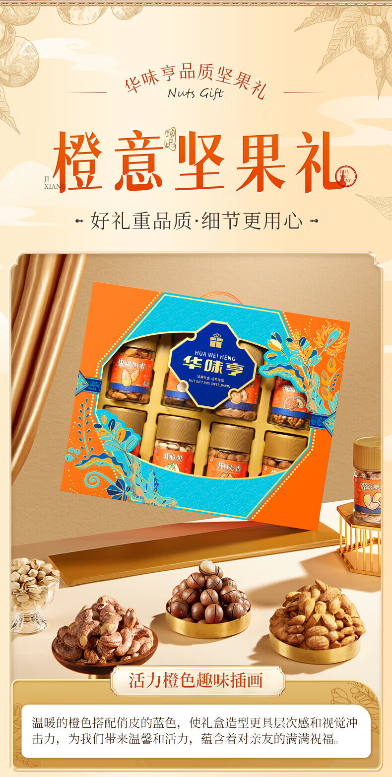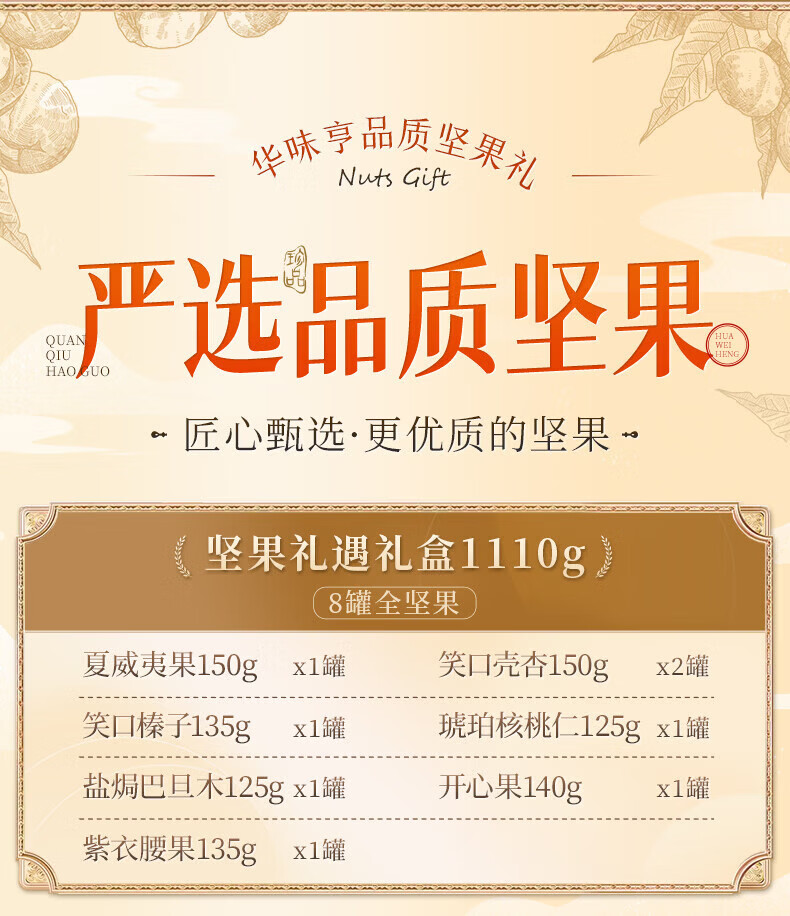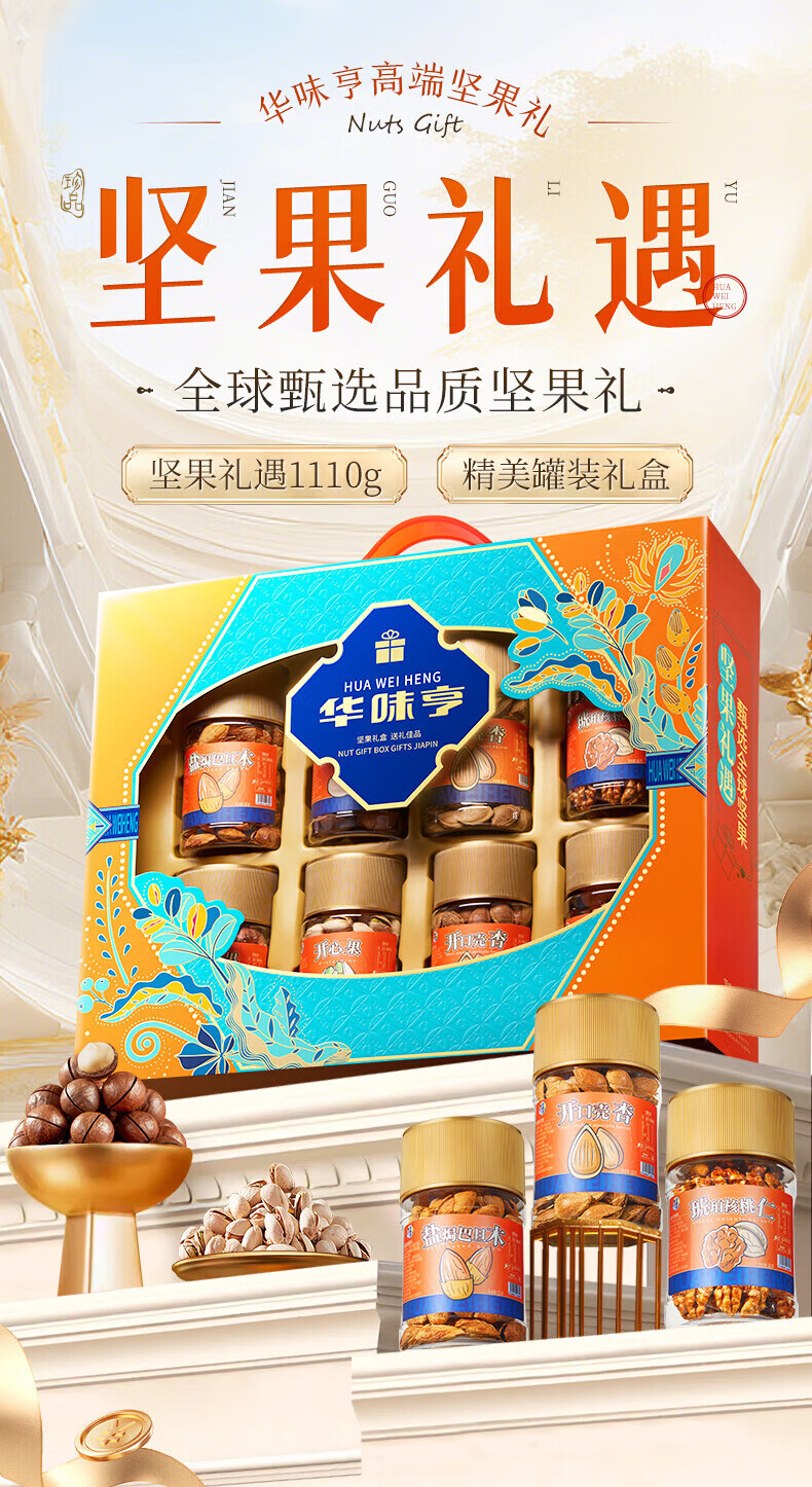 华味亨坚果礼遇礼盒1110g/8罐 纯坚果年货送礼团购开心果核桃休闲零食 罐装坚果礼盒1110g