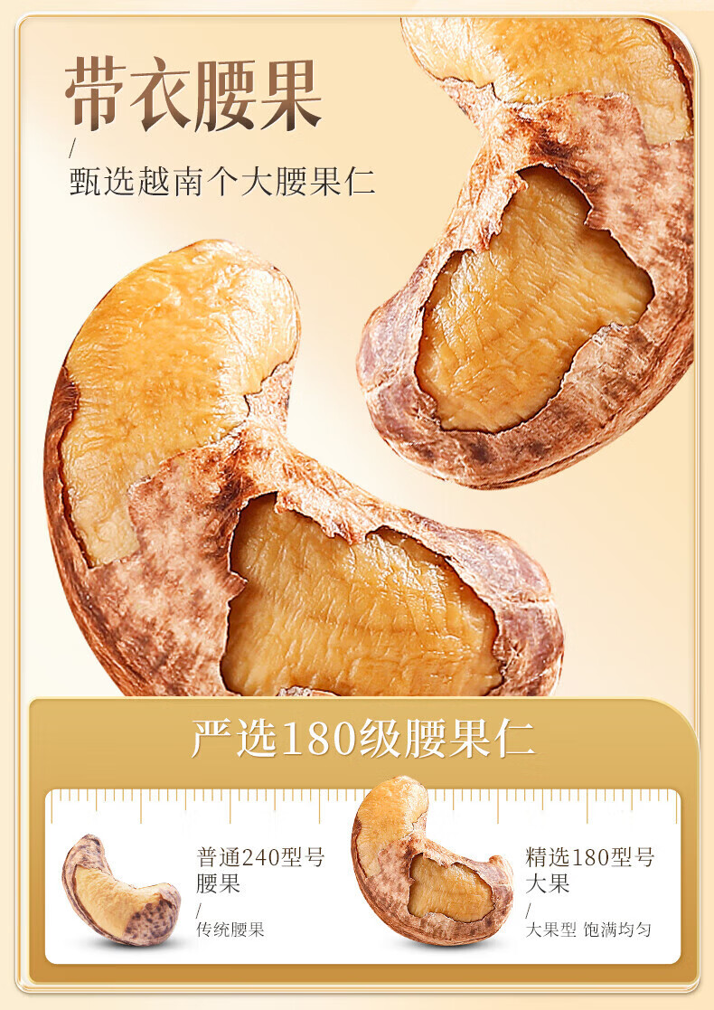 味滋源炭烧腰果仁干货坚果零食小吃特产炒货袋装年货每日坚果干果 500g/袋 1袋装