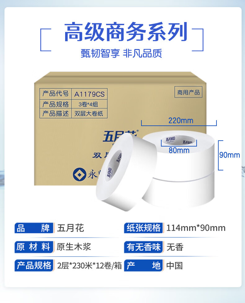 五月花(May Flower)大盘纸2层230米*12卷 单卷680g商场酒店厕用大卷纸 整箱售