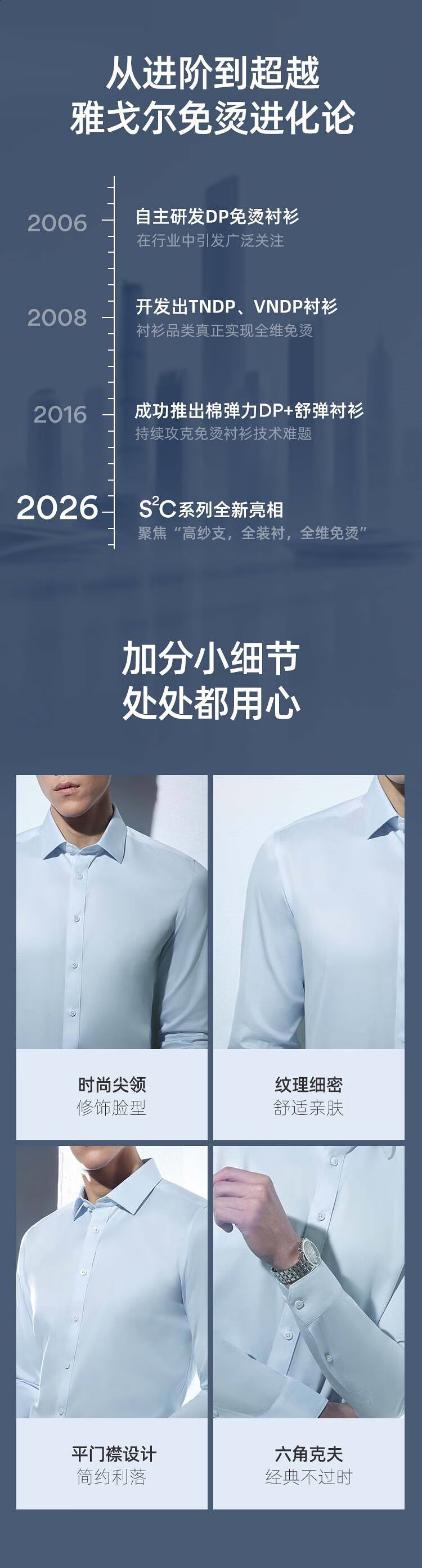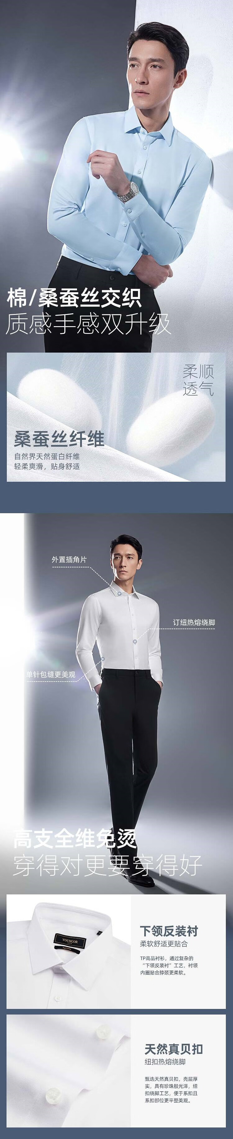 雅戈尔(YOUNGOR)【300支+桑蚕丝】2026春季新品商务免烫高端衣服男士长袖衬衫 漂白VLTP114787BBY 41 (175/96Y)