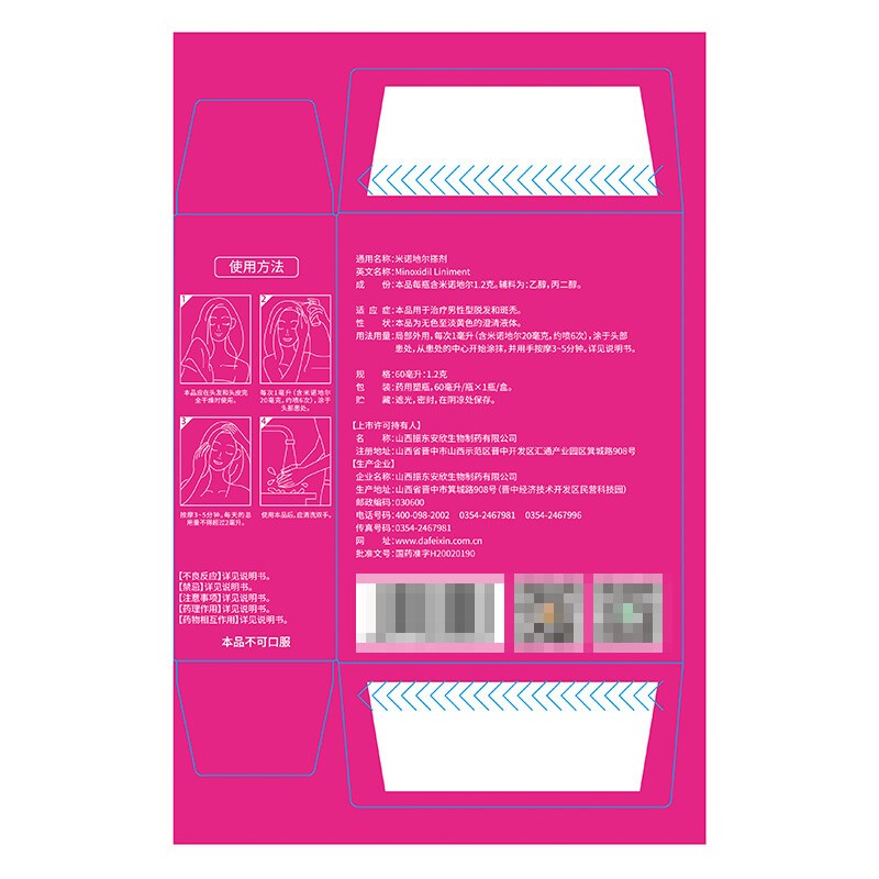 [万汉靓力]米诺地尔搽剂 5%*60ml 1盒装 60ml*1瓶用于治疗脱发严重男专用防脱生发育发际线增液