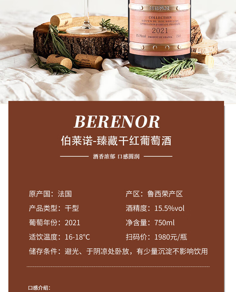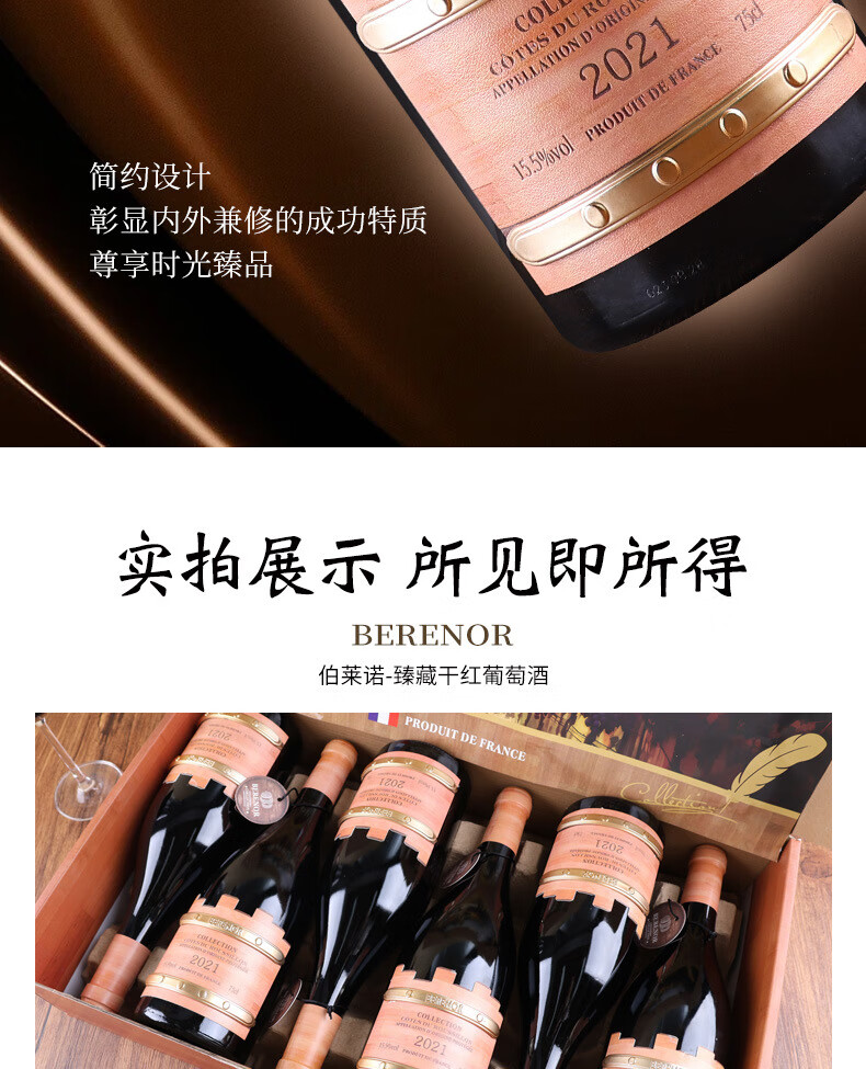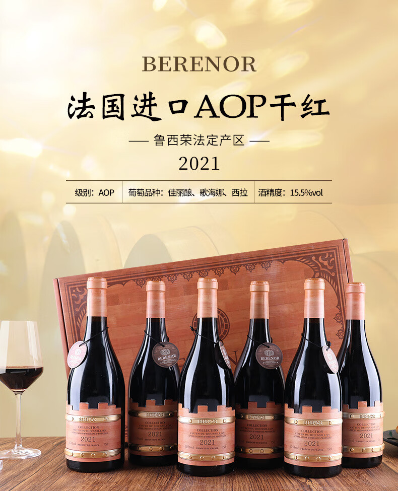 萃雨台法国进口干红葡萄酒【伯莱诺·臻藏】鲁西荣法定产区AOP干红葡萄酒 法国进口干红葡萄酒-伯莱诺-臻藏6支