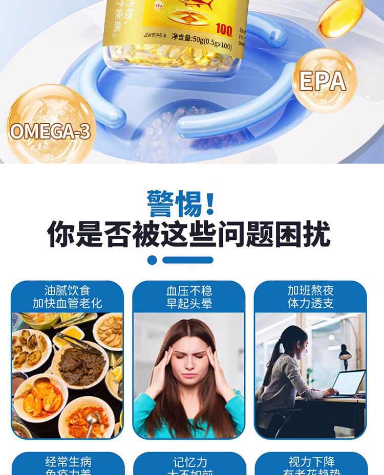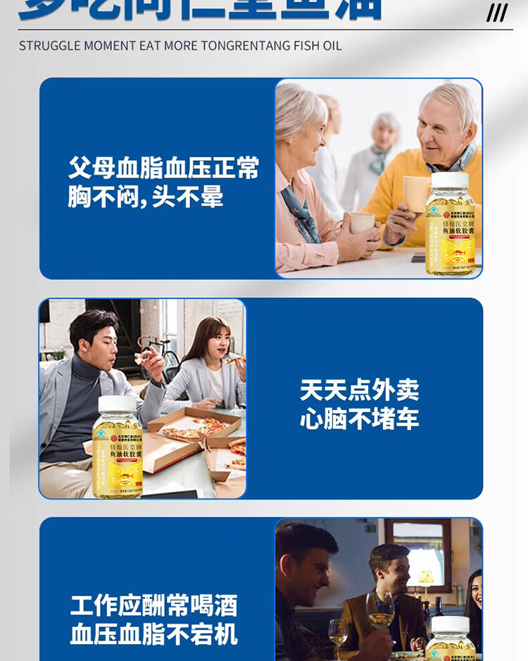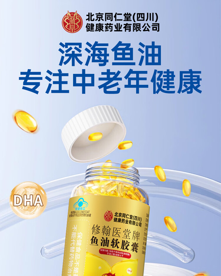 朕皇北京同仁堂 深海鱼油软胶囊 血管通降血脂omega3nyo3鱼肝油中老年 【呵护心脑眼】 100粒*3瓶