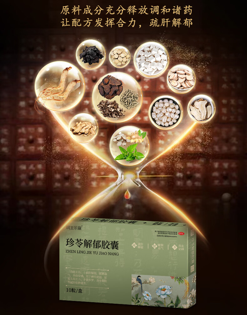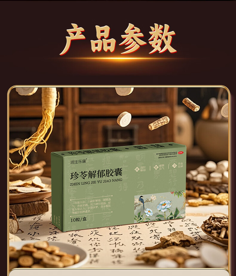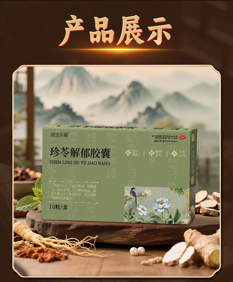 [润生乐寐]珍苓解郁胶囊 10粒 3盒装 疏肝解郁养血安神健脾益气肝郁脾虚失眠多梦改善睡眠头晕乏力中老年正品中成药 告别失眠,低至56/盒