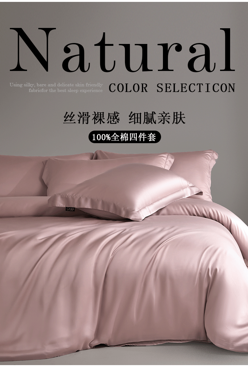 无印良品高端长绒棉床上四件套纯棉全棉轻奢高级感床单被套可裸睡被罩床品 虾粉【100支纯棉 高端轻奢】 1.8m 床笠款 四件套-被套200x230cm