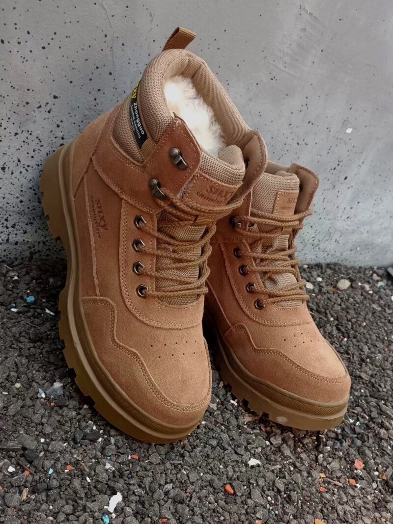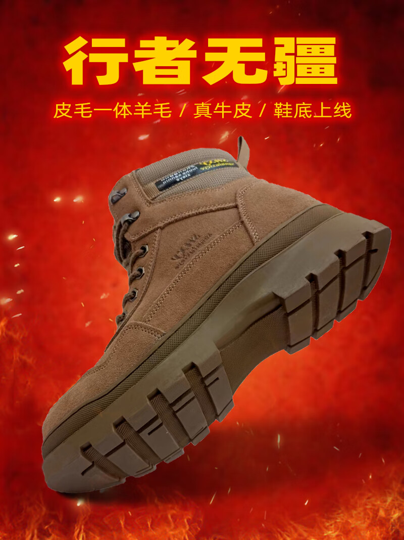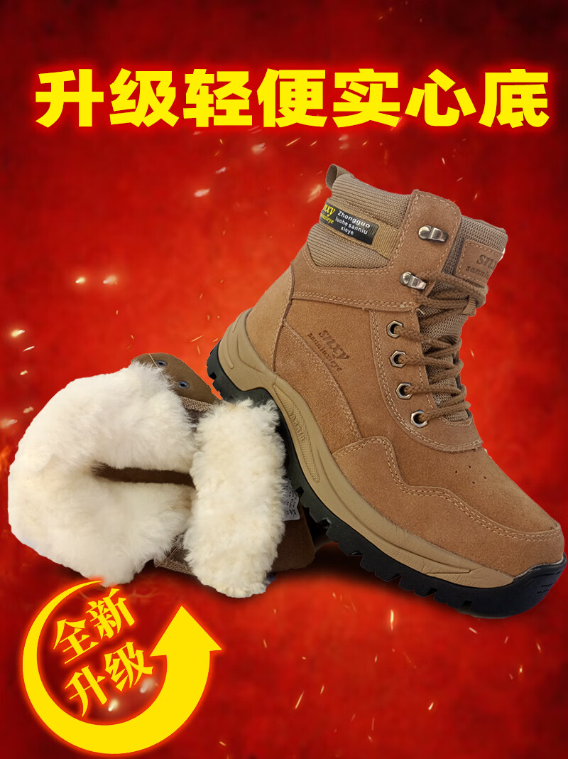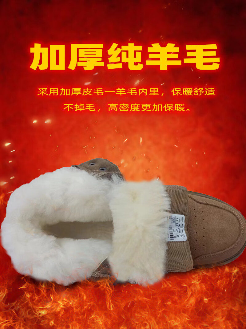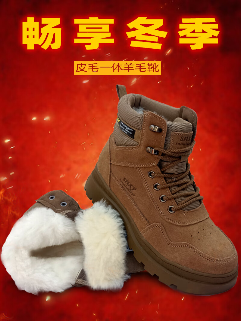 稻草人(MEXICAN)雪地靴男皮毛一体鞋加绒加厚羊毛靴冬季防寒靴防水真皮东北大棉鞋 棕黄加厚上线款【橡胶底+纯羊毛+牛皮】】 不带拉链 38 240