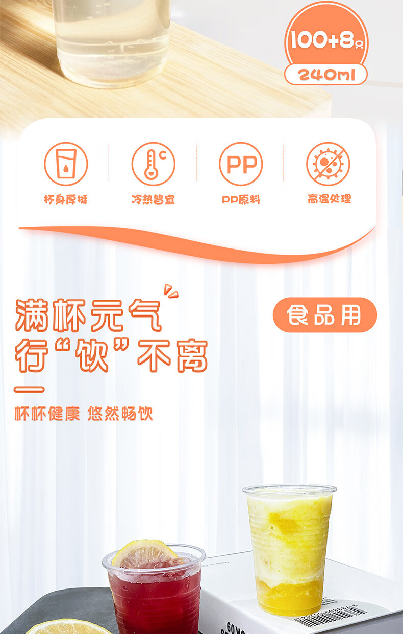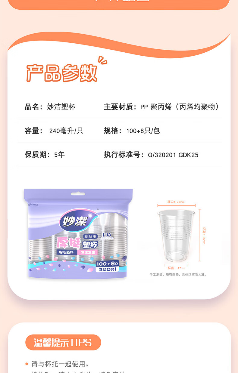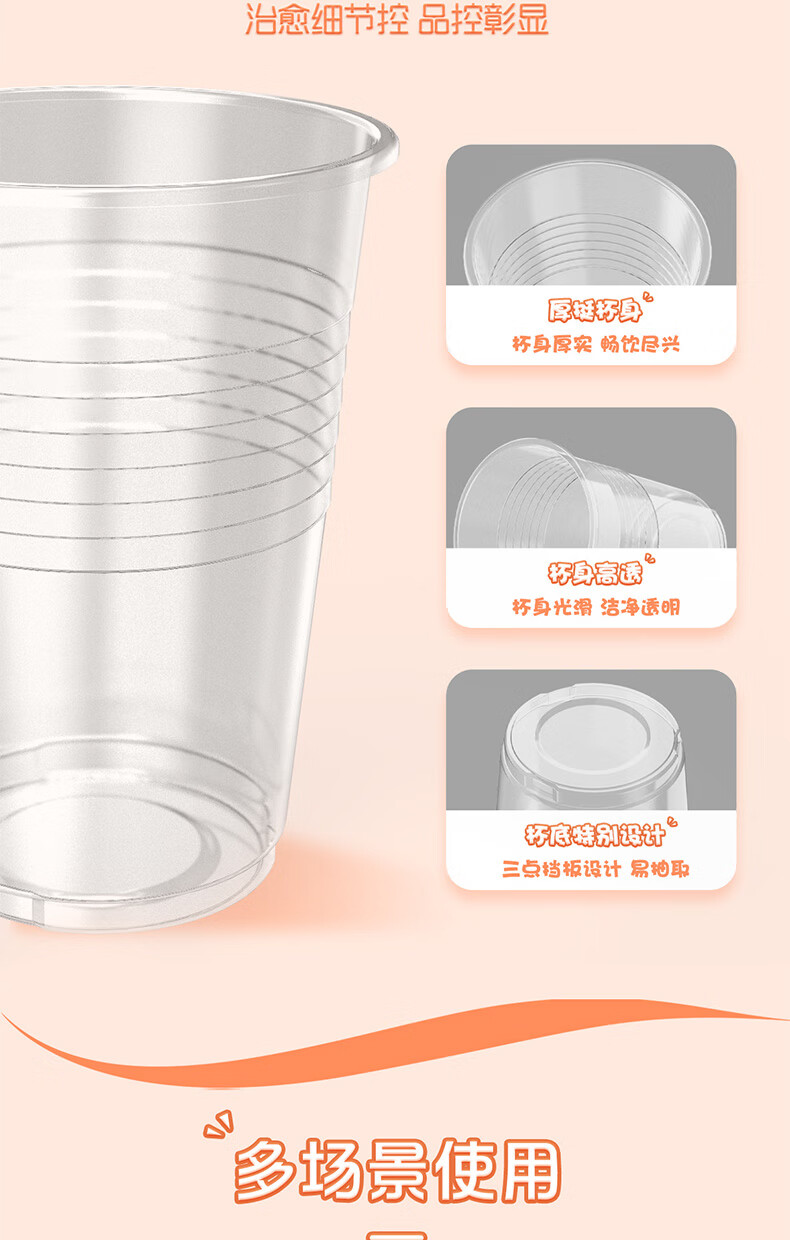 妙洁 塑料一次性杯子 茶水太空航空食品级透明加厚 108只*240ML