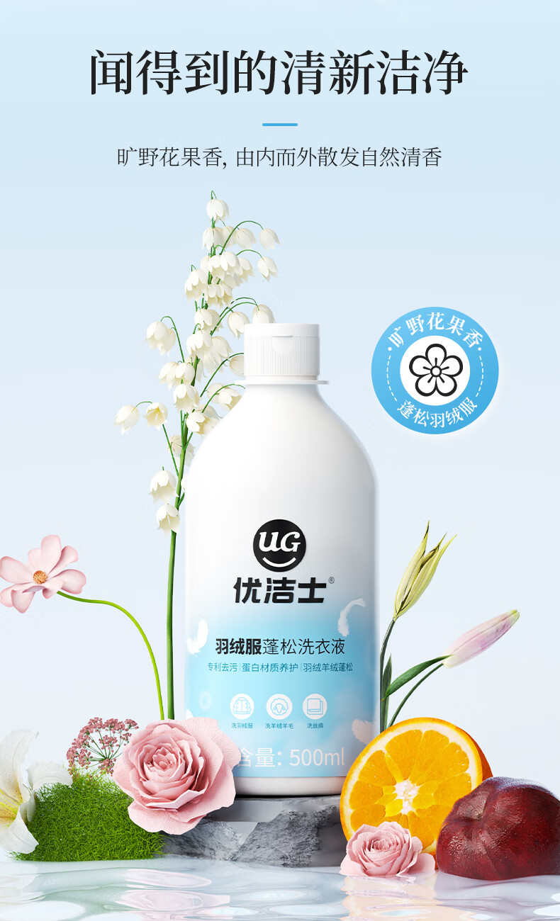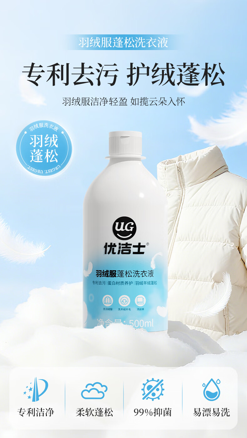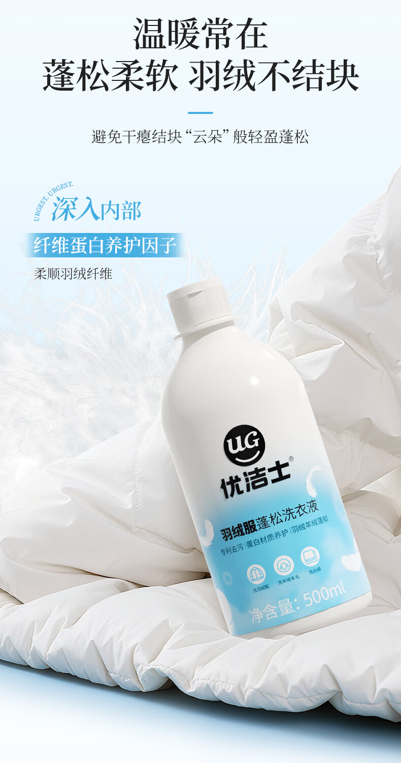 优洁士羽绒服清洗剂衣物去油污去渍蓬松神器棉衣抑菌清洗液洗涤剂 【羽绒服专用】抑菌除螨 | 2斤装