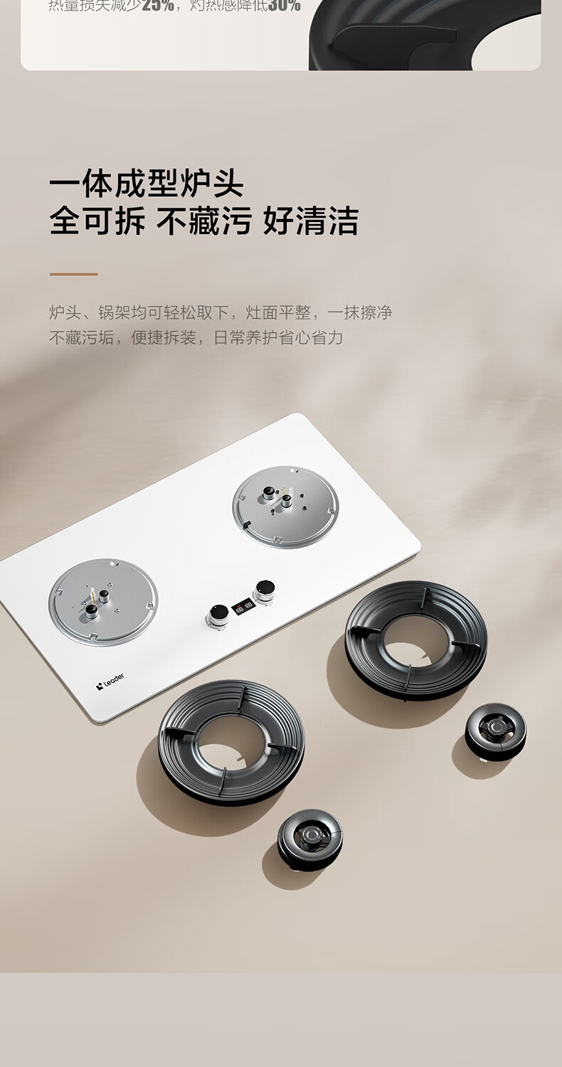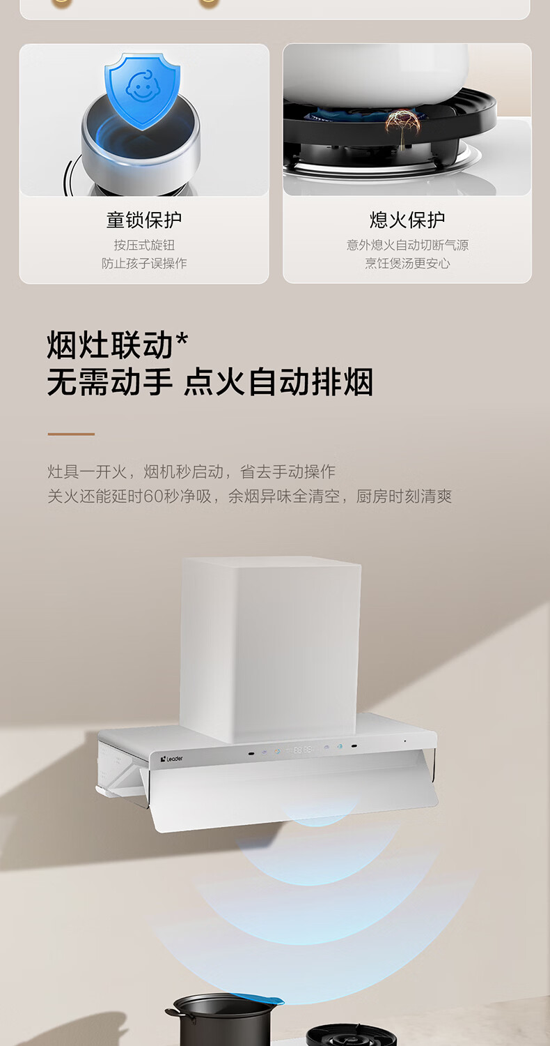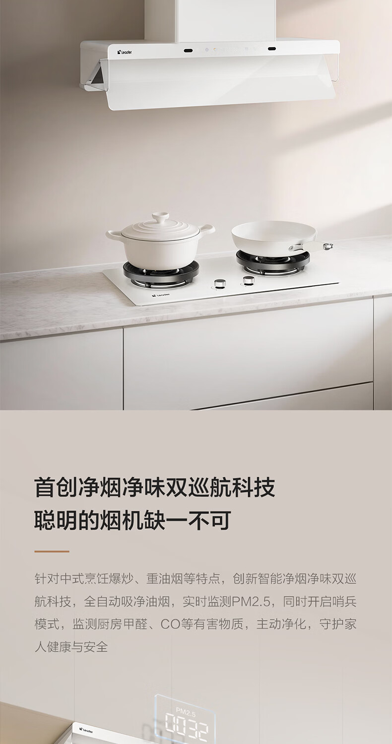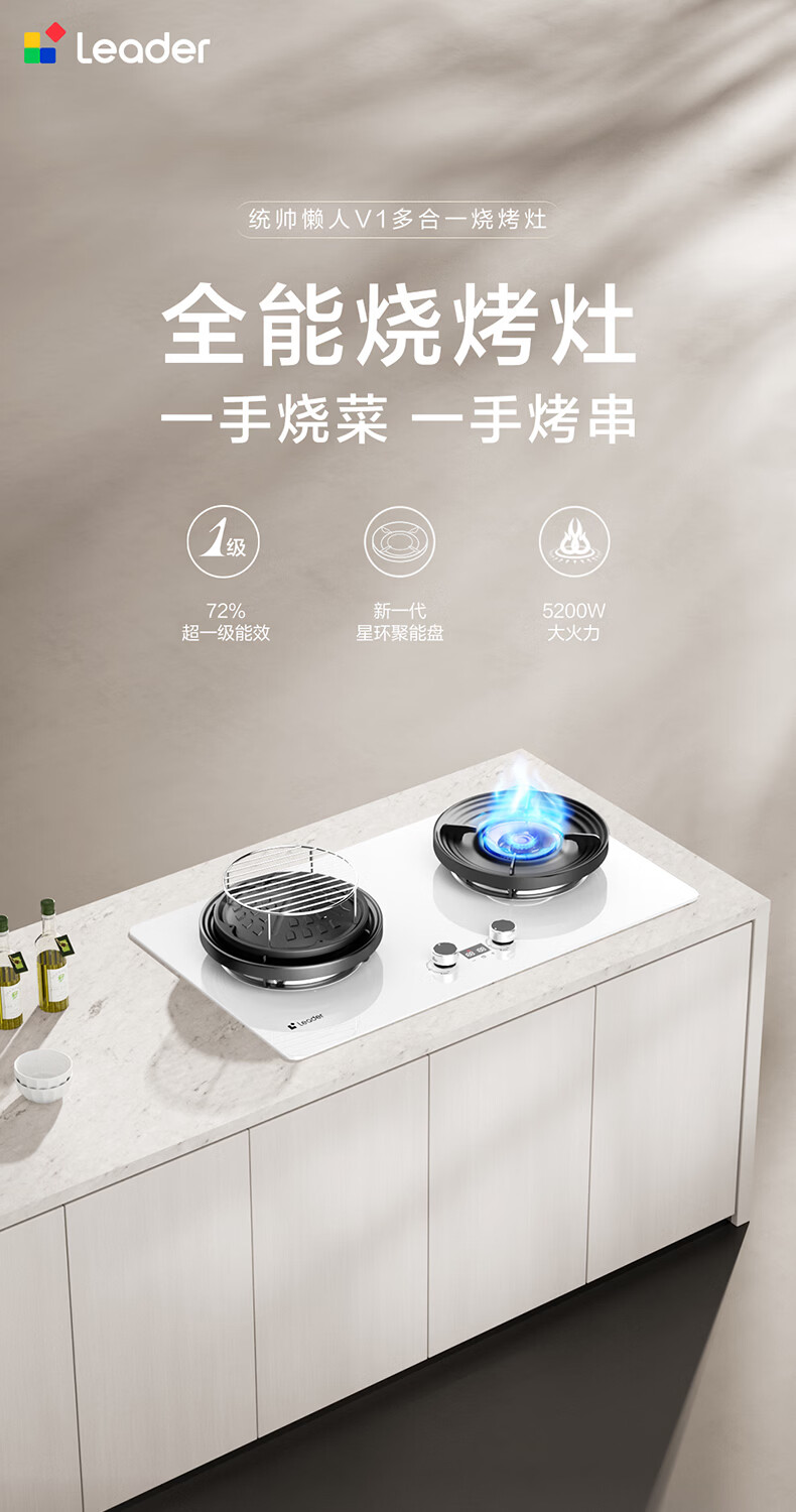 统帅(Leader)抽吸排油烟机懒人V1系列海尔 家用30风量以旧换新 白色顶侧一体烟灶套装联动 72%热效台嵌烧烤灶