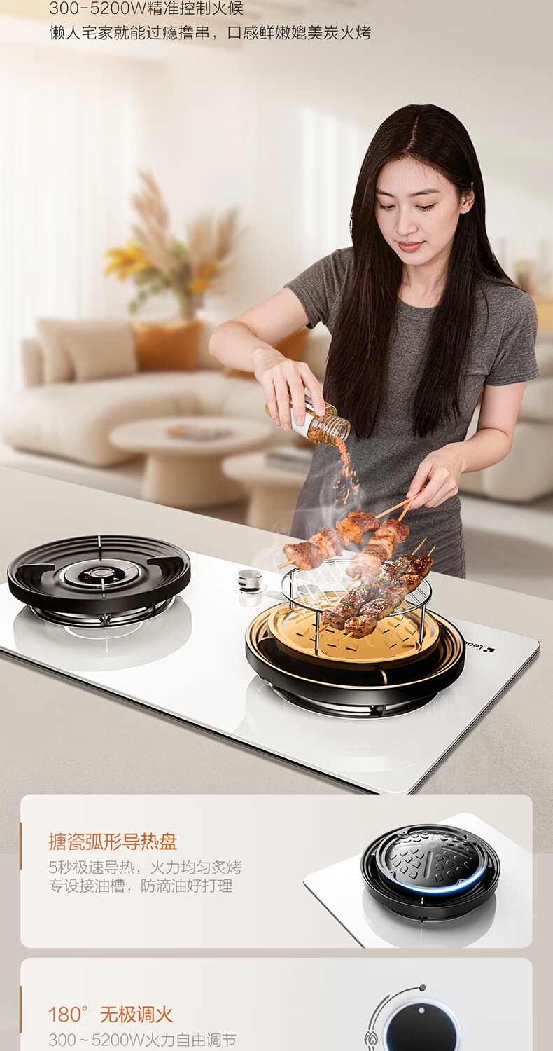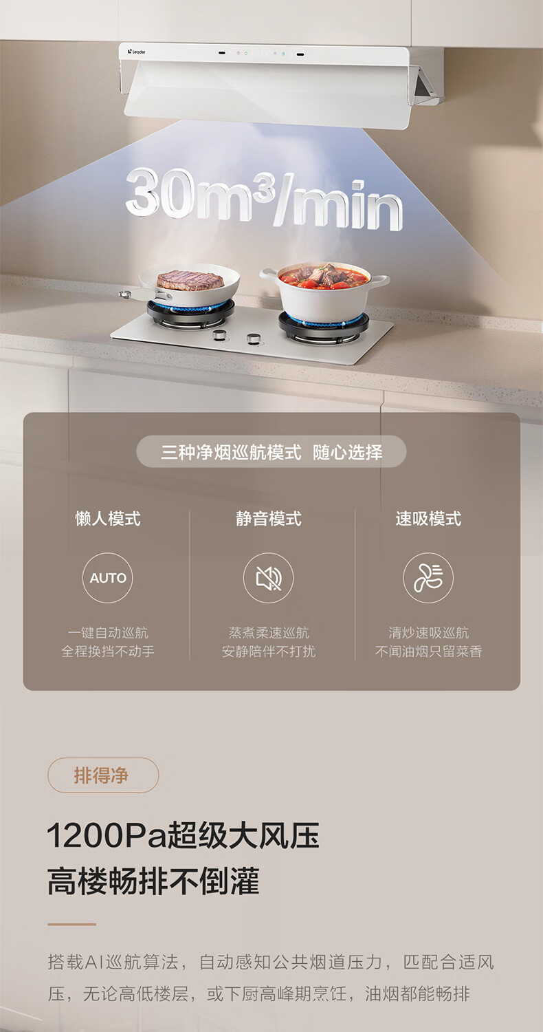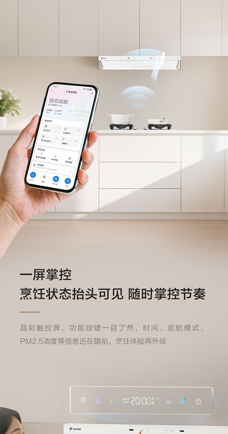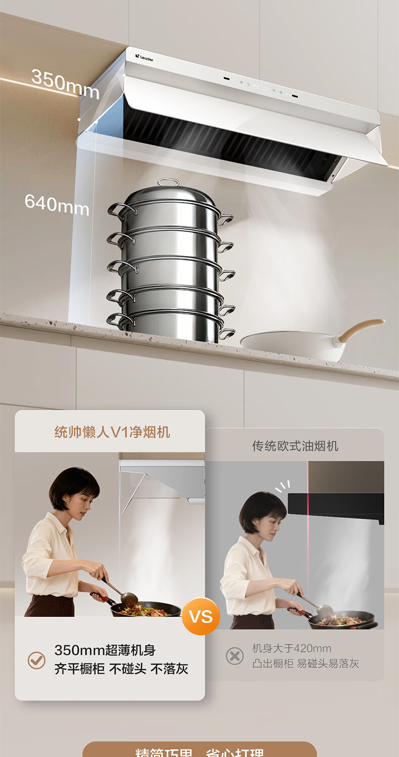 统帅(Leader)抽吸排油烟机懒人V1系列海尔 家用30风量以旧换新 白色顶侧一体烟灶套装联动 72%热效台嵌烧烤灶