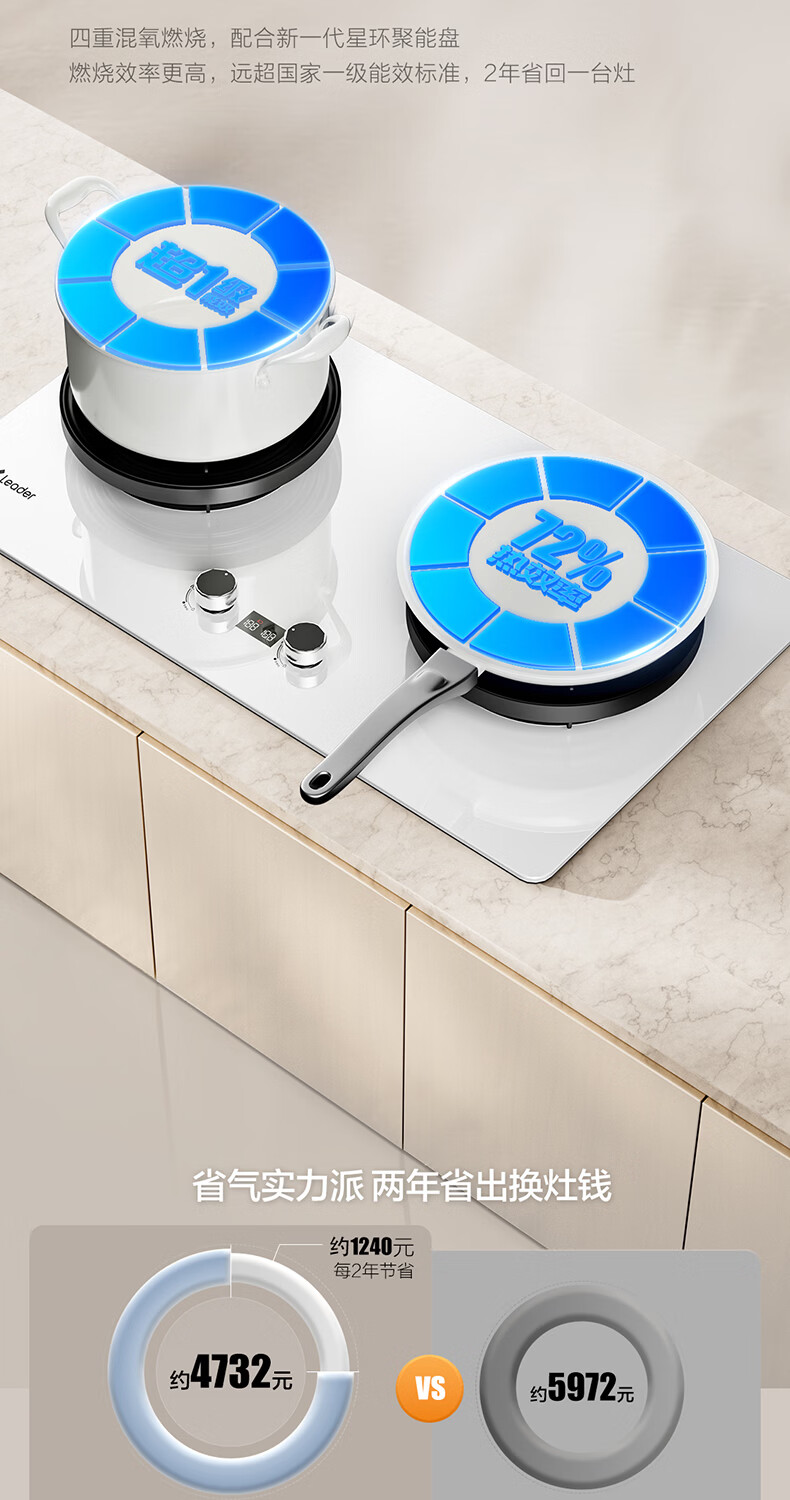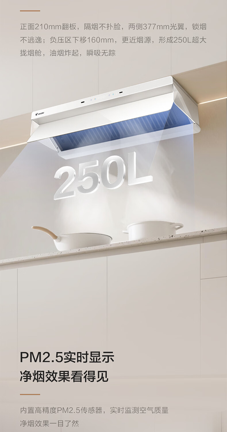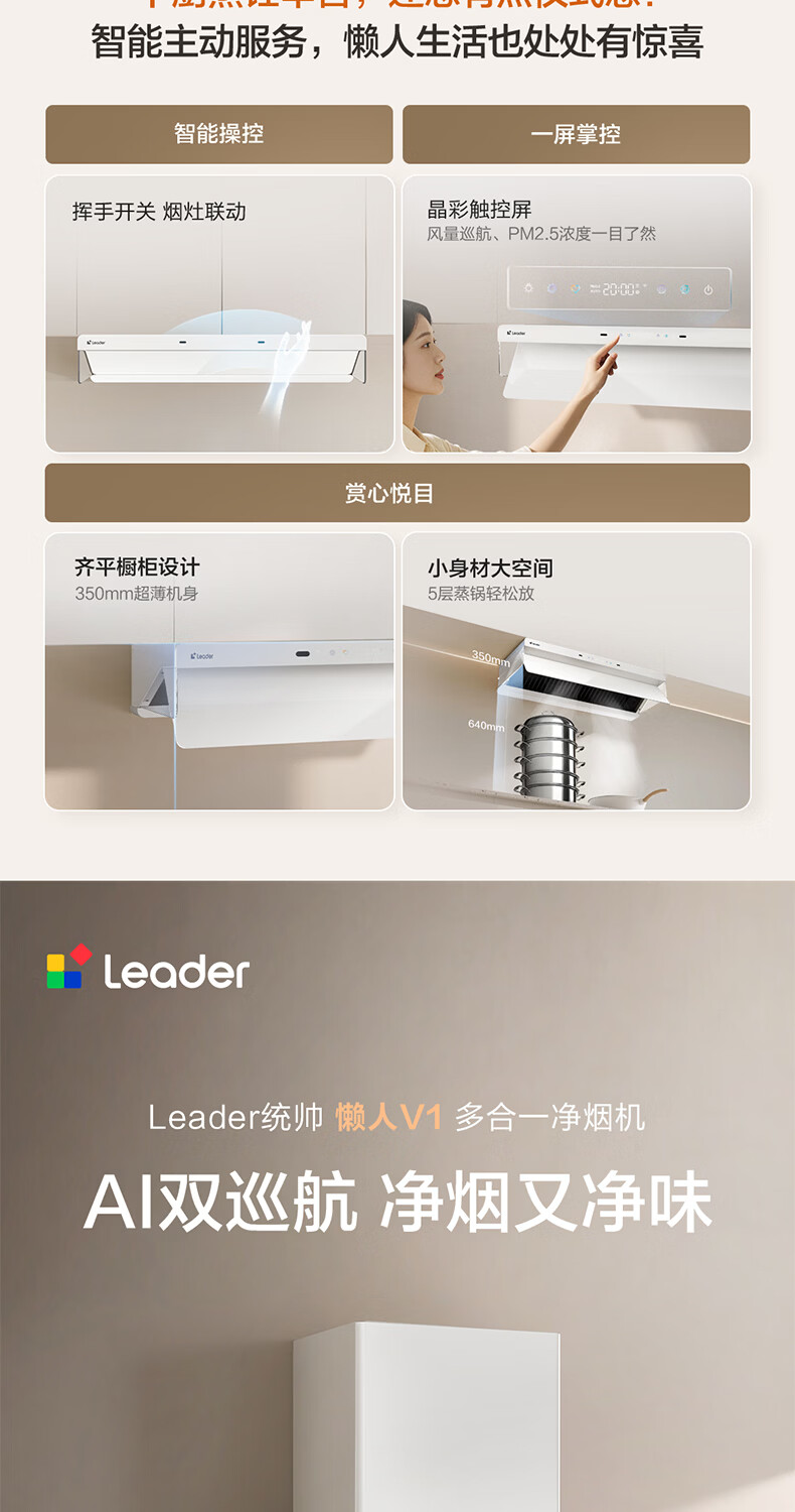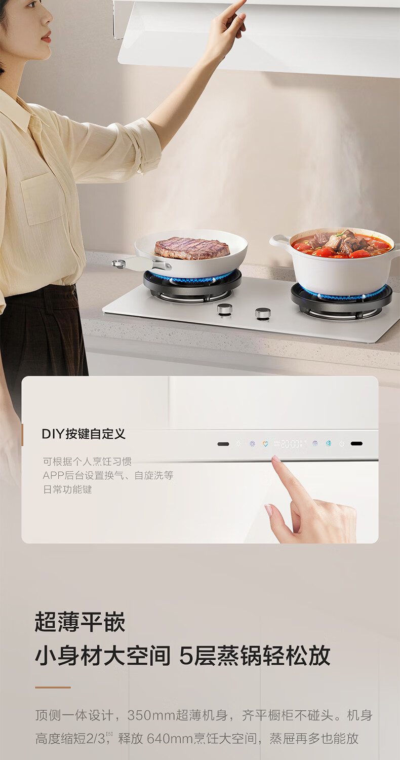 统帅(Leader)抽吸排油烟机懒人V1系列海尔 家用30风量以旧换新 白色顶侧一体烟灶套装联动 72%热效台嵌烧烤灶