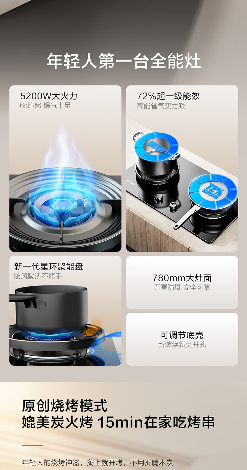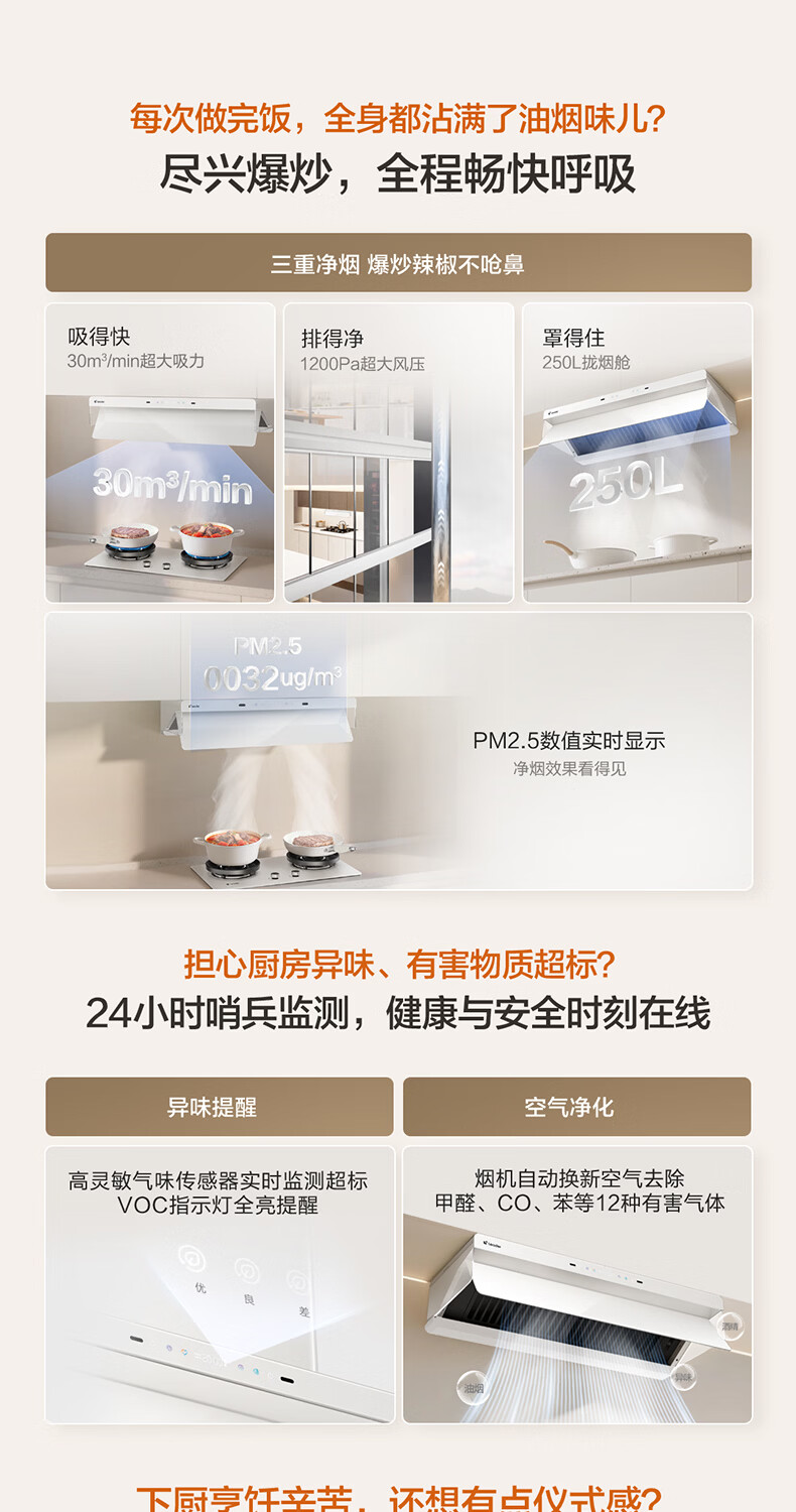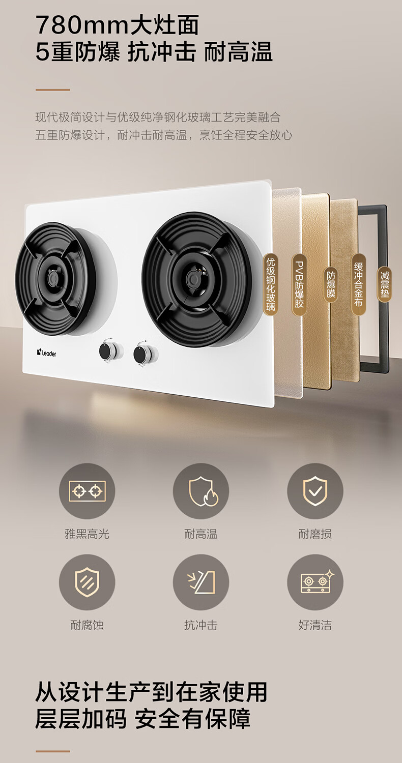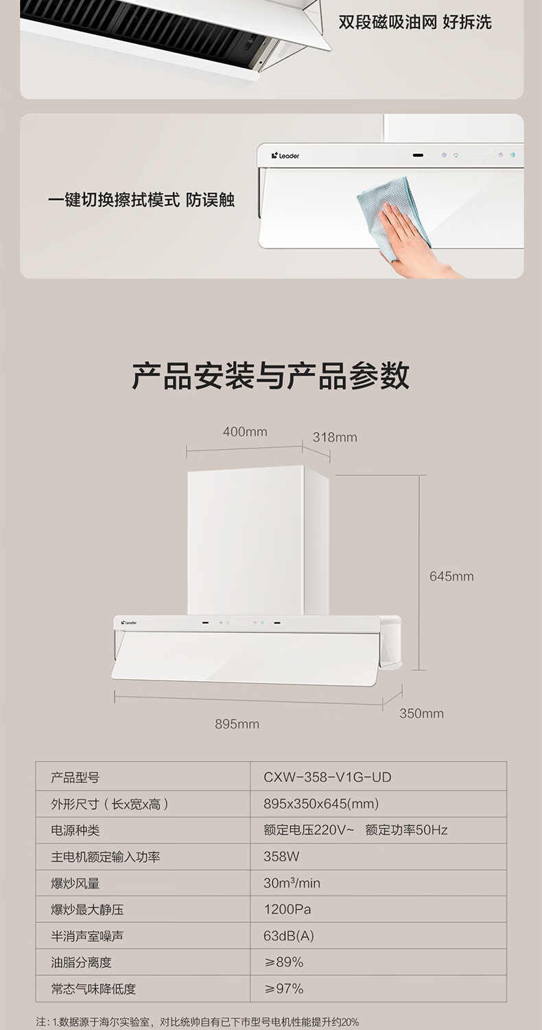 统帅(Leader)抽吸排油烟机懒人V1系列海尔 家用30风量以旧换新 白色顶侧一体烟灶套装联动 72%热效台嵌烧烤灶