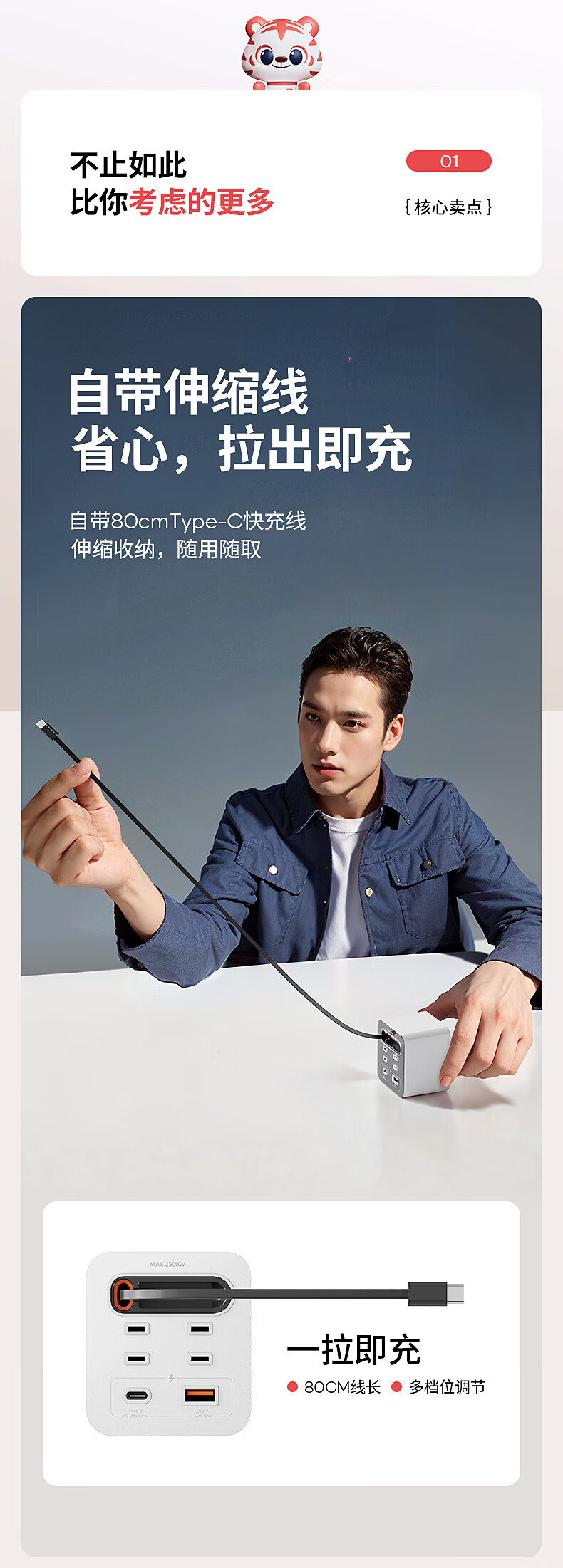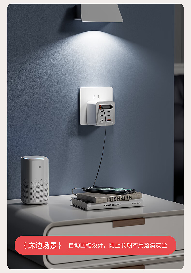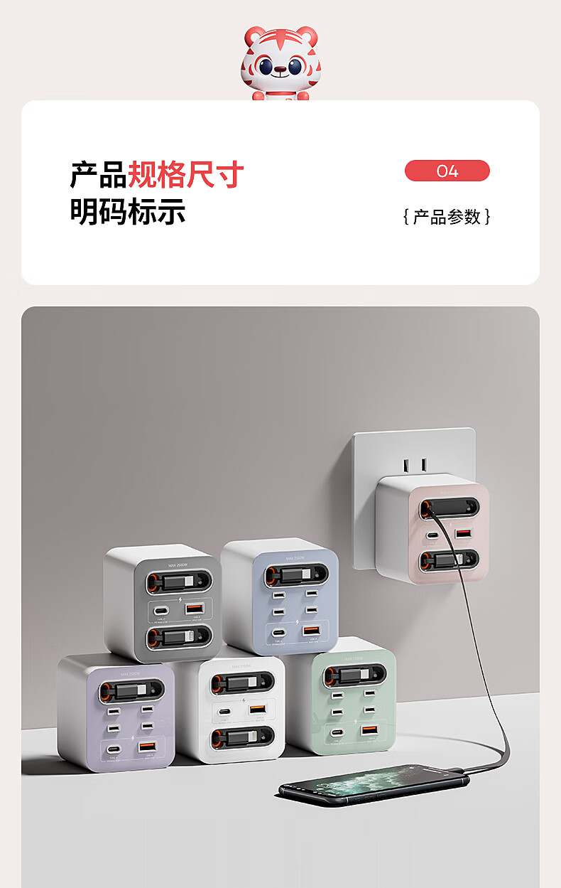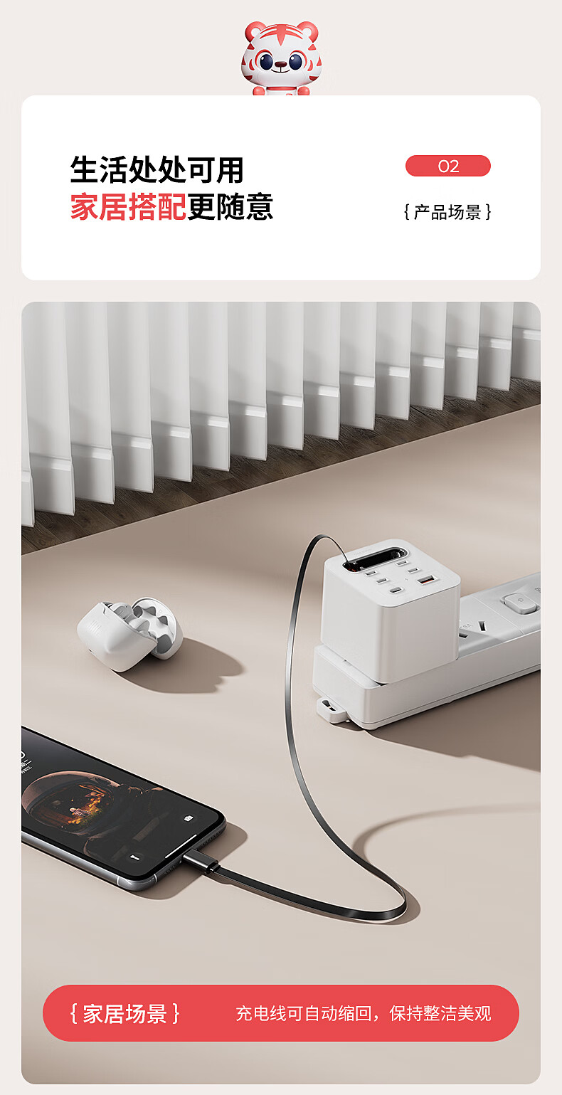 国际电工20W快充家用无线魔方插座带线转换器USB可移动电源无需充电器插头 蓝色20w快充安卓伸缩线四孔+U+C