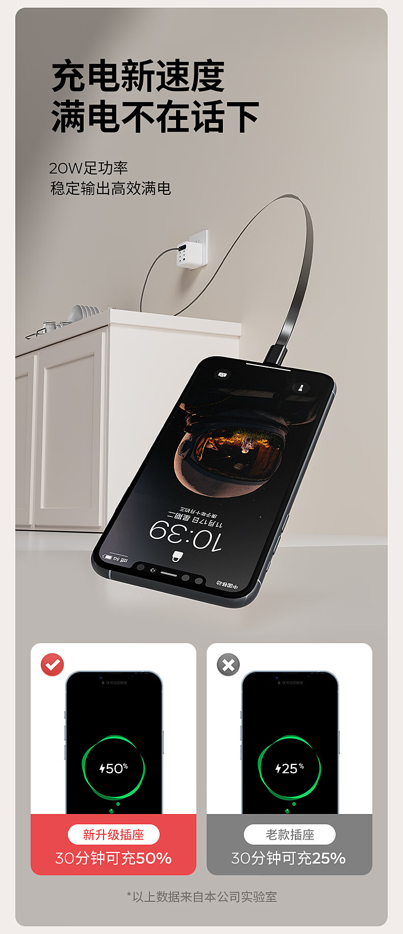 国际电工20W快充家用无线魔方插座带线转换器USB多功能可移动电源插头 1.8米带线款+苹果线+四孔+USB/C(绿色)