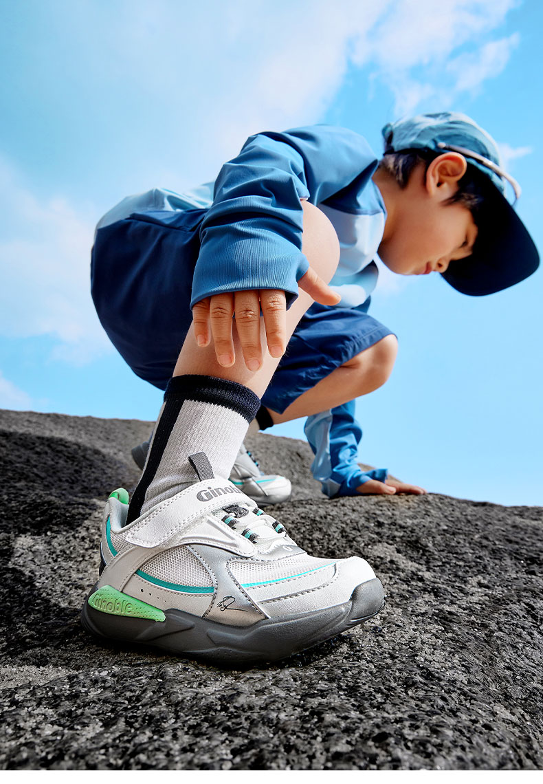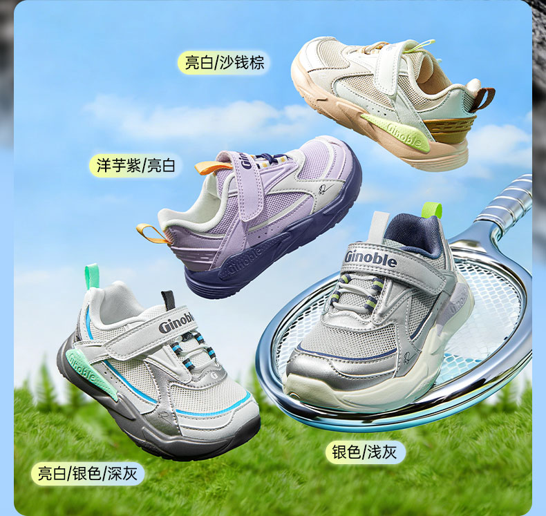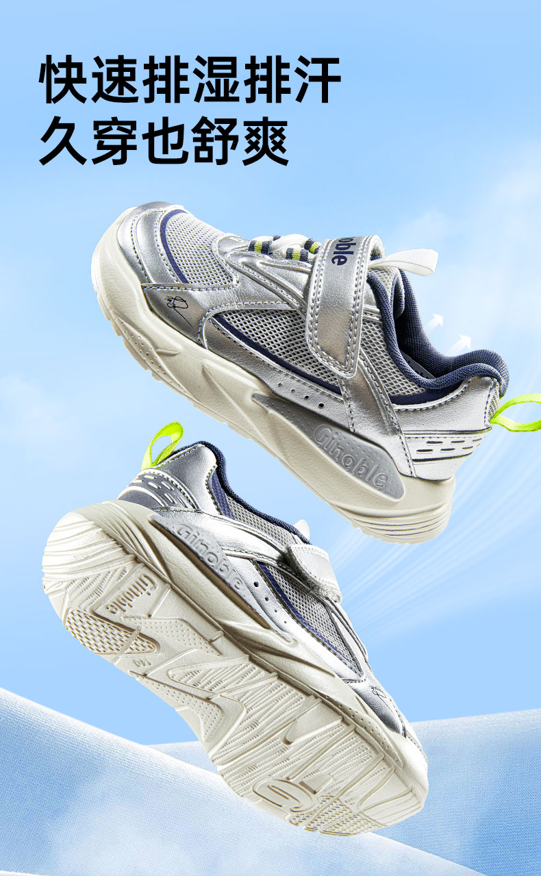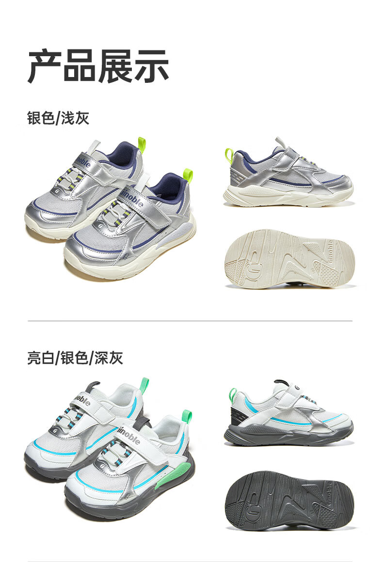 基诺浦 儿童学步鞋夏季透气童鞋18个月-5岁复古潮流系列机能鞋GW1736 银色/浅灰 27 170mm 适合脚长166-175mm