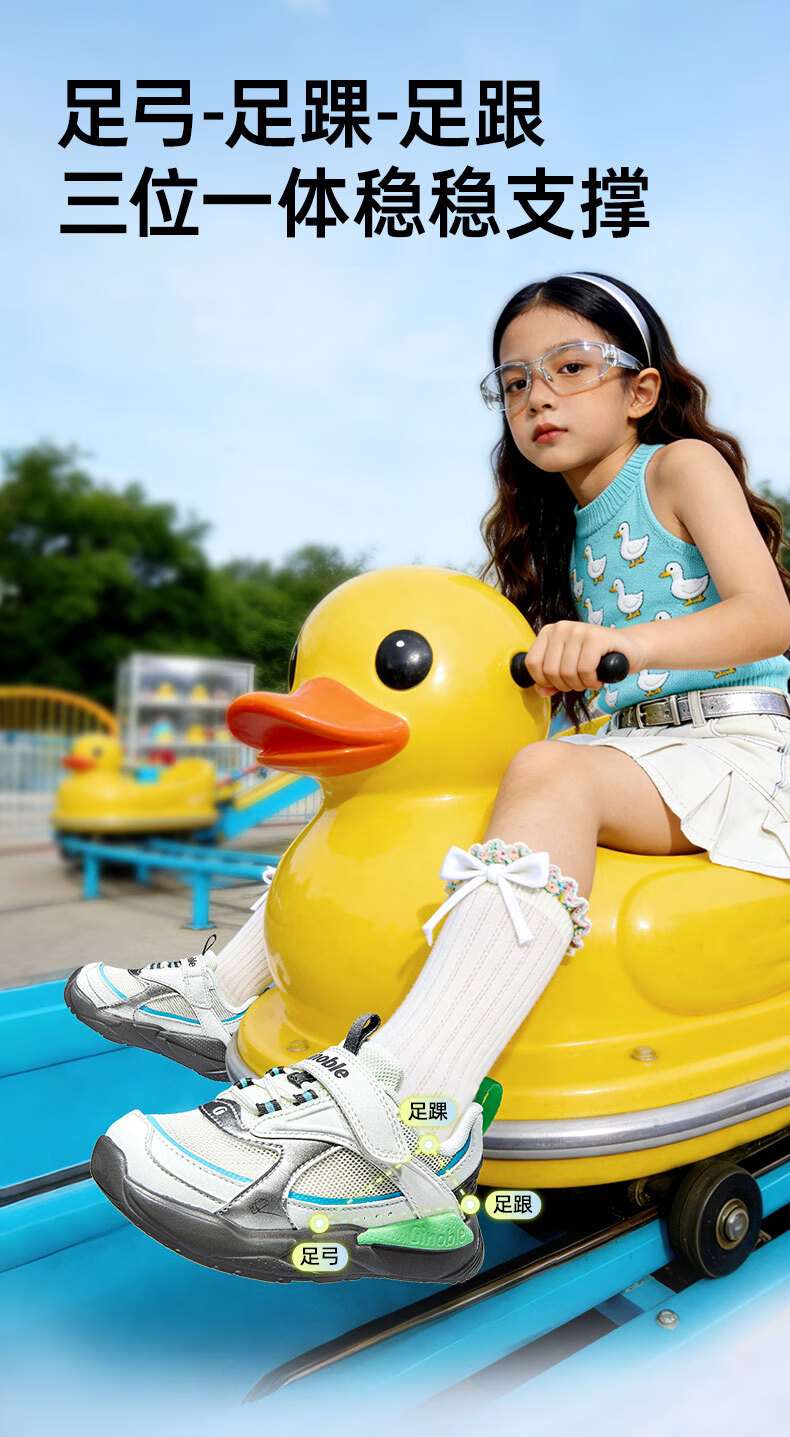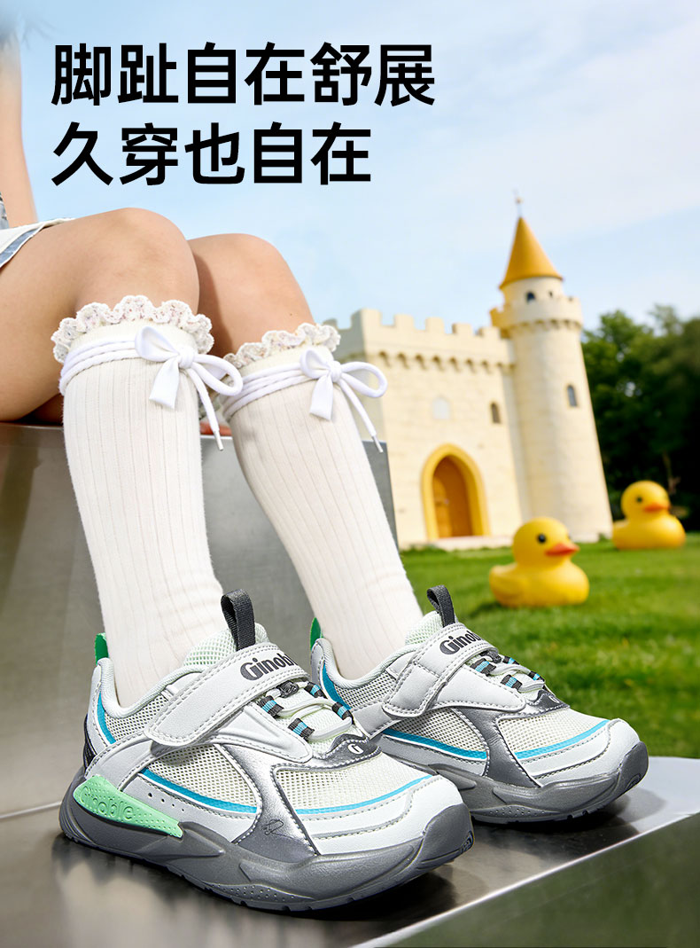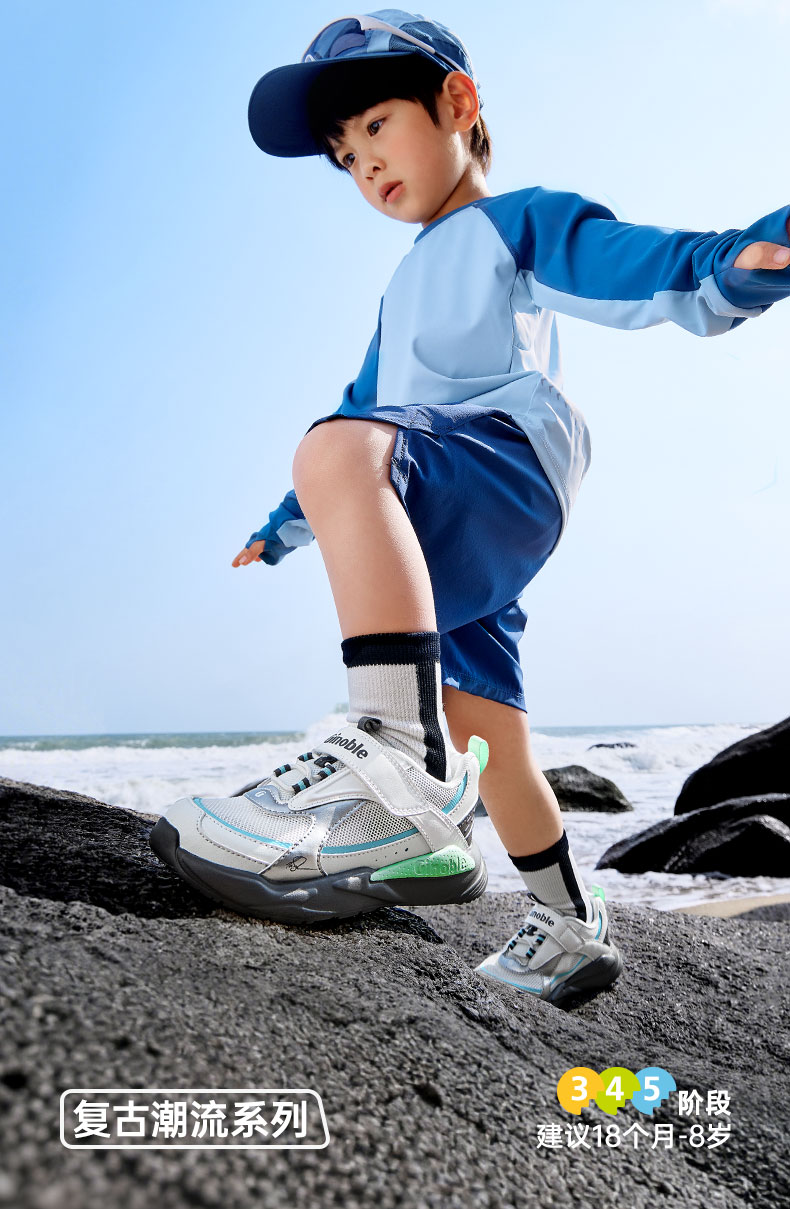 基诺浦 儿童学步鞋夏季透气童鞋18个月-5岁复古潮流系列机能鞋GW1736 银色/浅灰 27 170mm 适合脚长166-175mm
