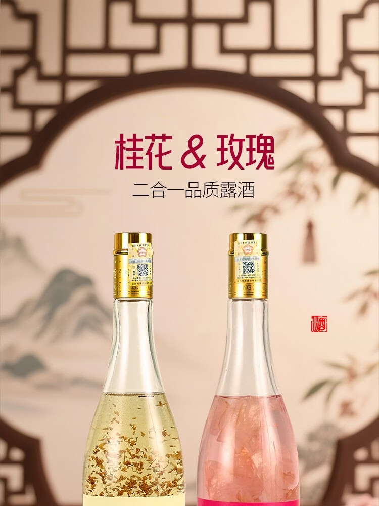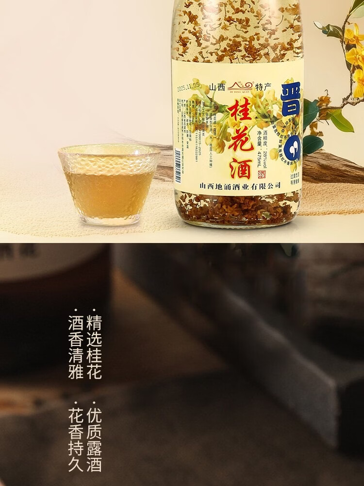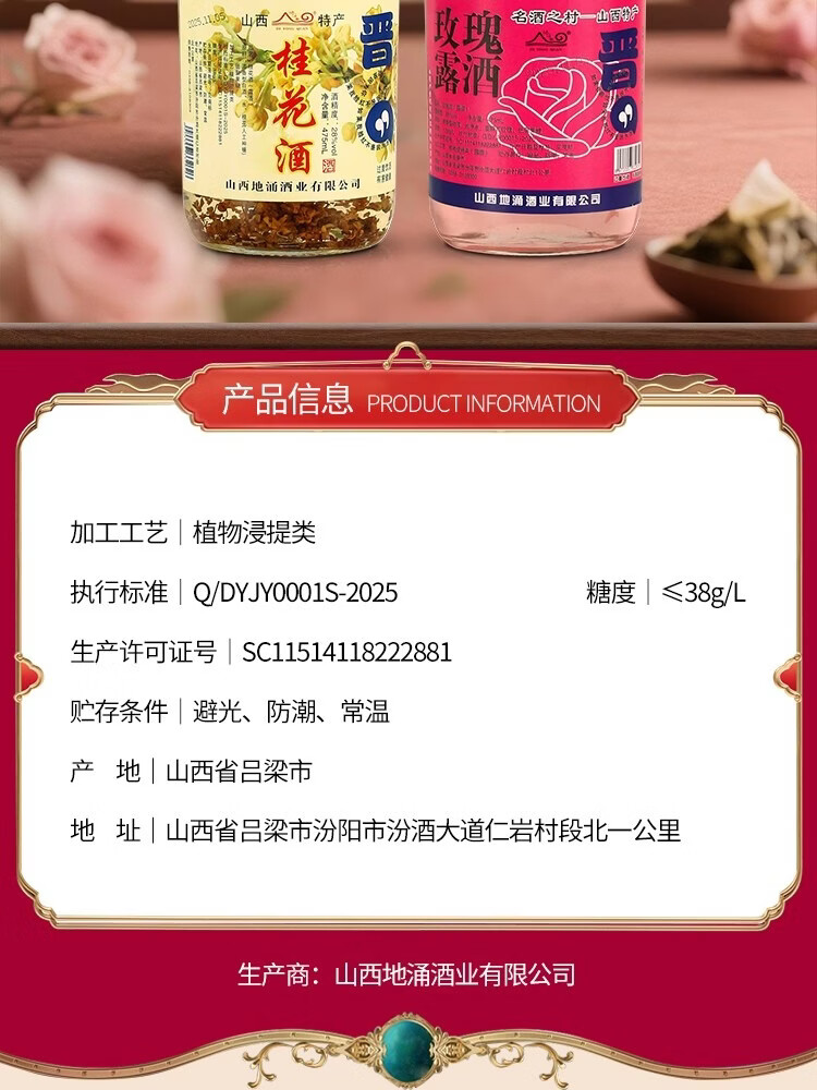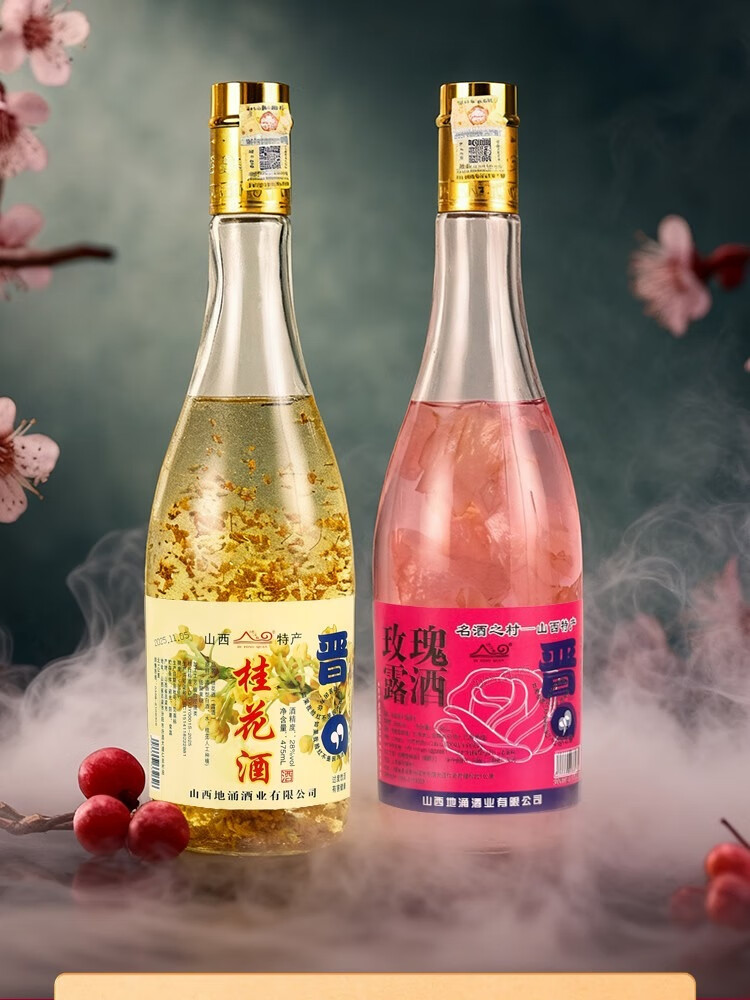 地涌泉名酒之村 山西特产 玫瑰露酒 桂花酒 28度低度酒 自饮酒L 28度 475mL 2瓶 玫瑰露酒1瓶+桂花酒1瓶