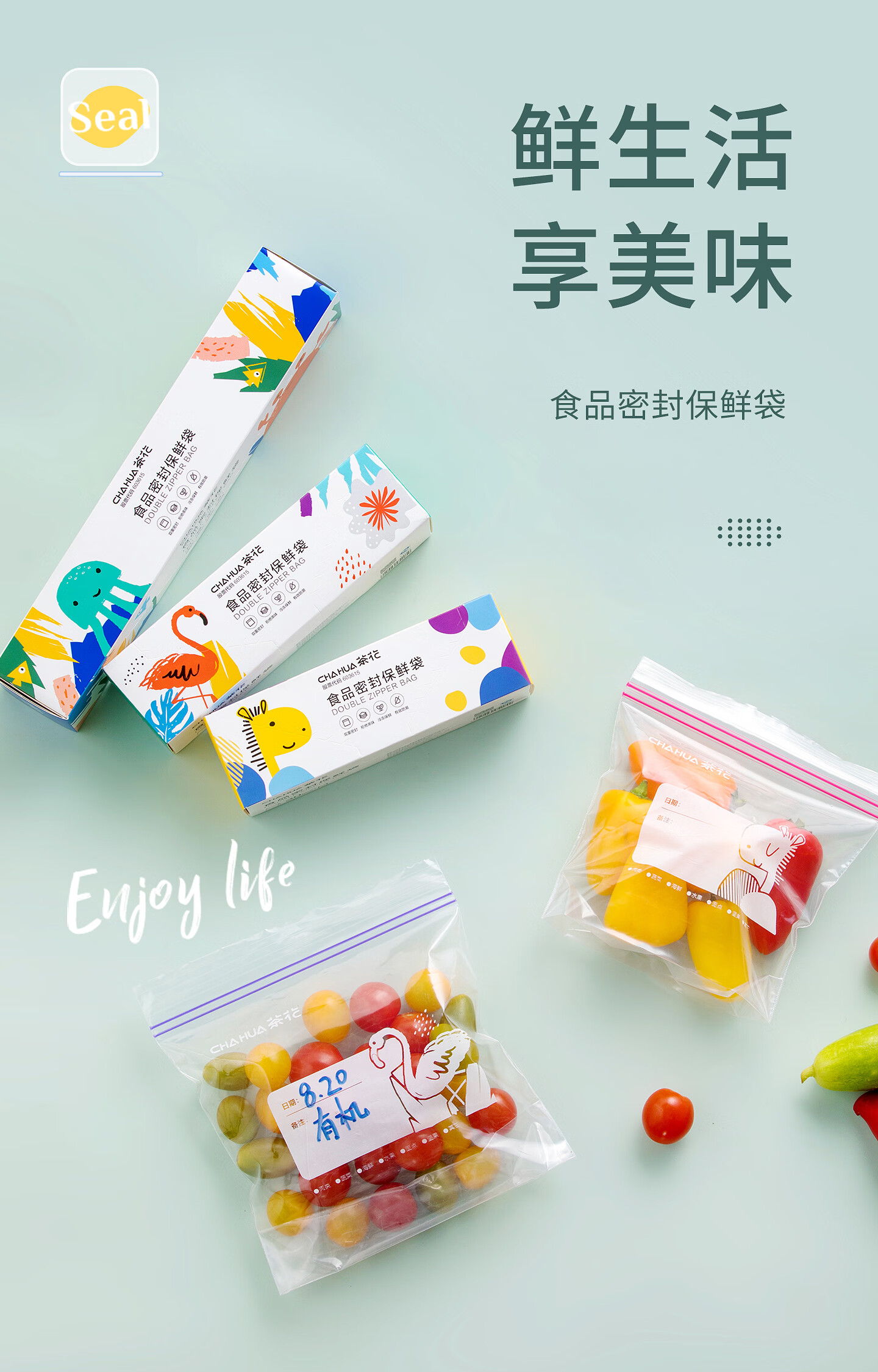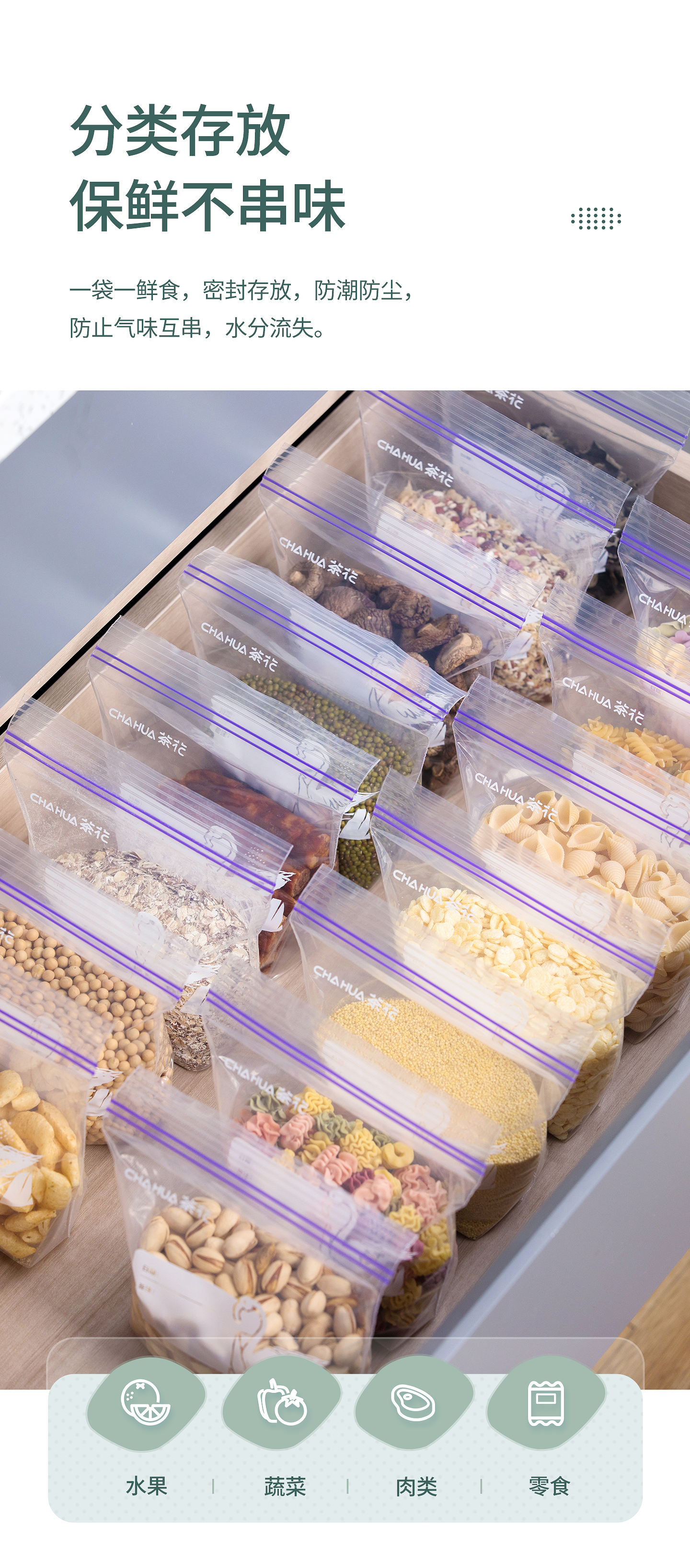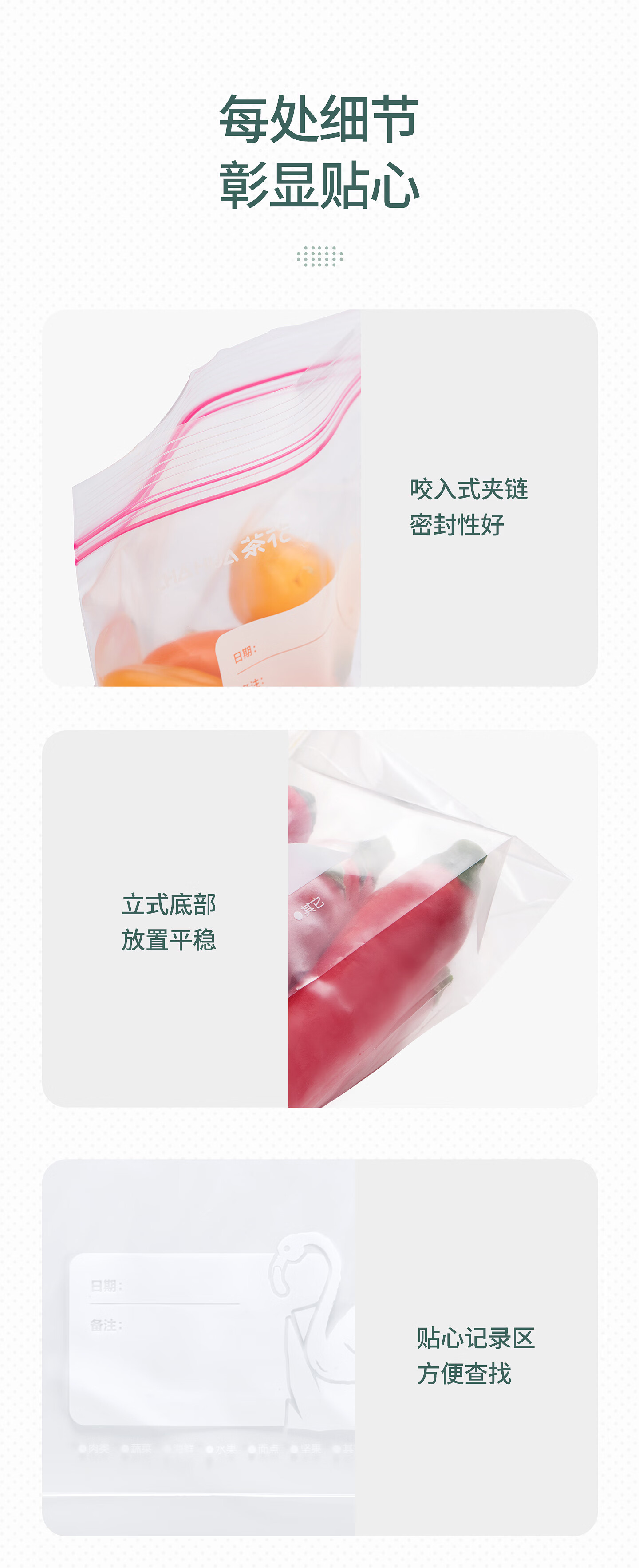 CHAHUA生物系列家用拉链密封袋密实袋食品袋收纳分装冷冻透明保鲜袋 【共70只】中号30只+大号25只+特大号15只