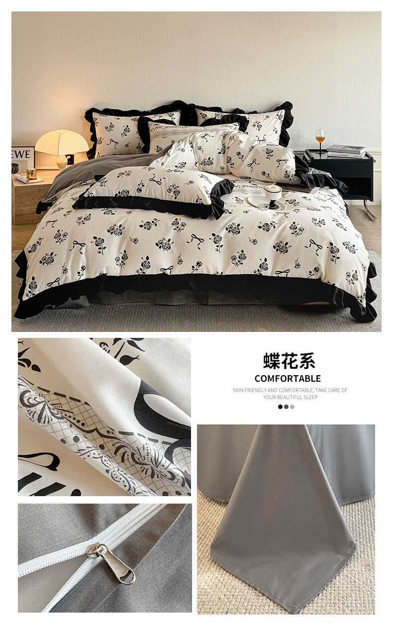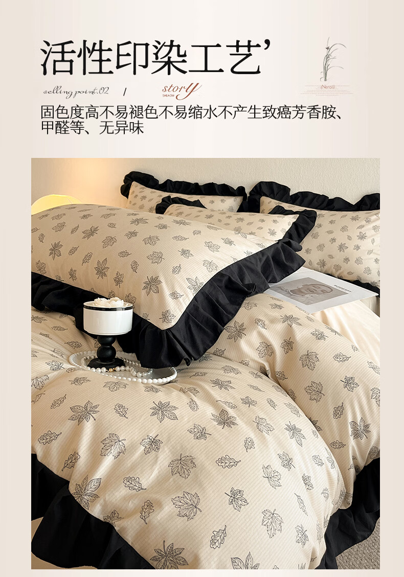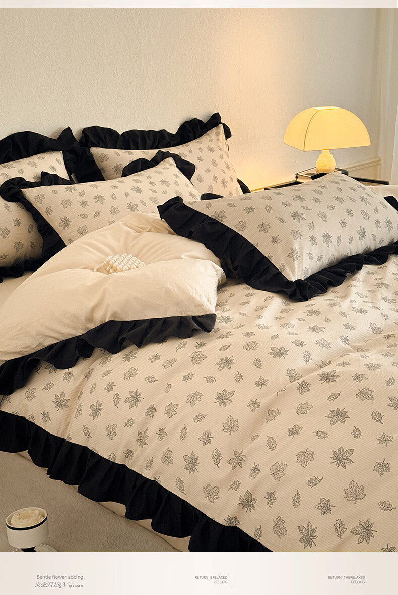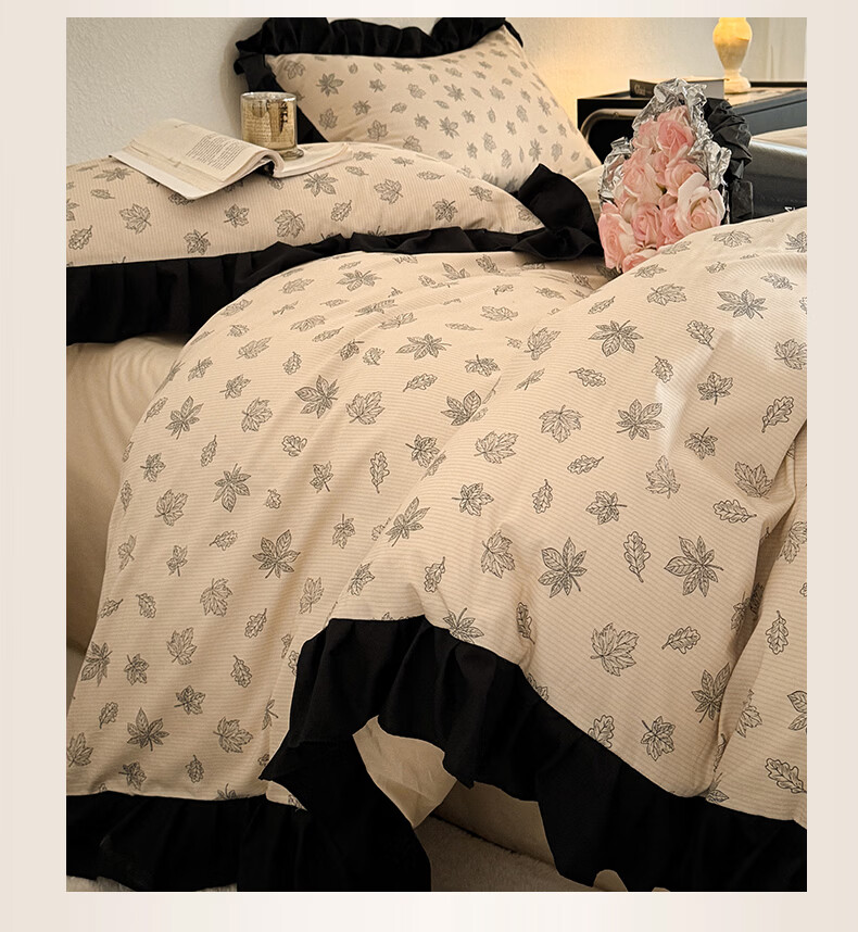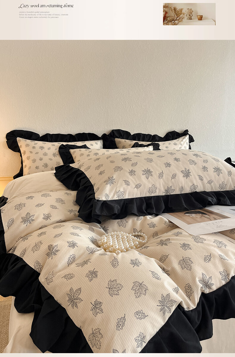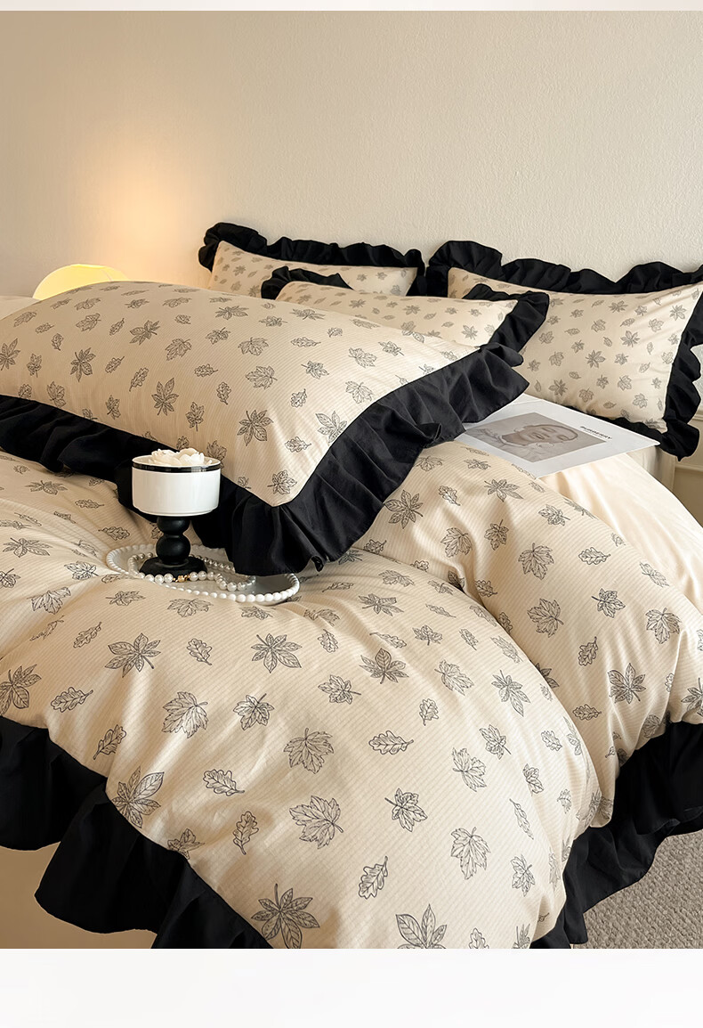 无印良品法式花边纯棉床上四件套全棉高端轻奢高级感床单被套家用床笠套件 水墨花【100%全棉 柔软舒适】 1.8m 床单款 四件套-被套200x230cm