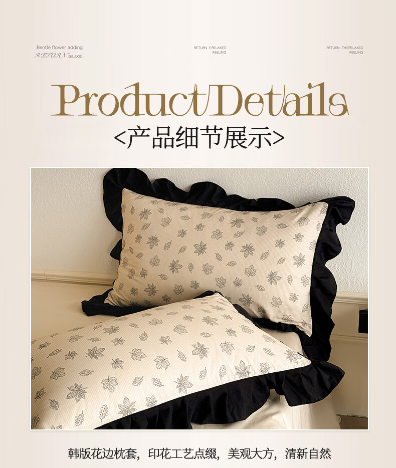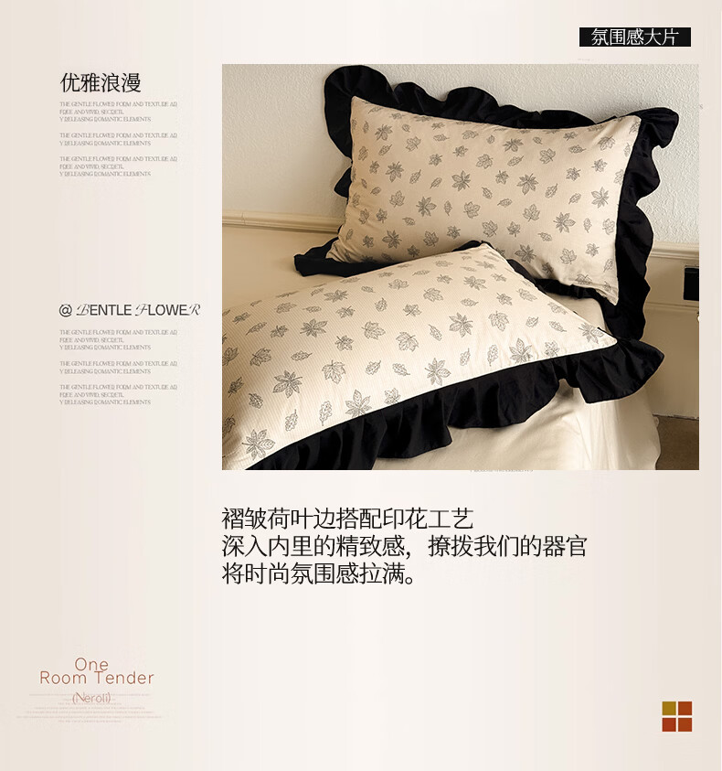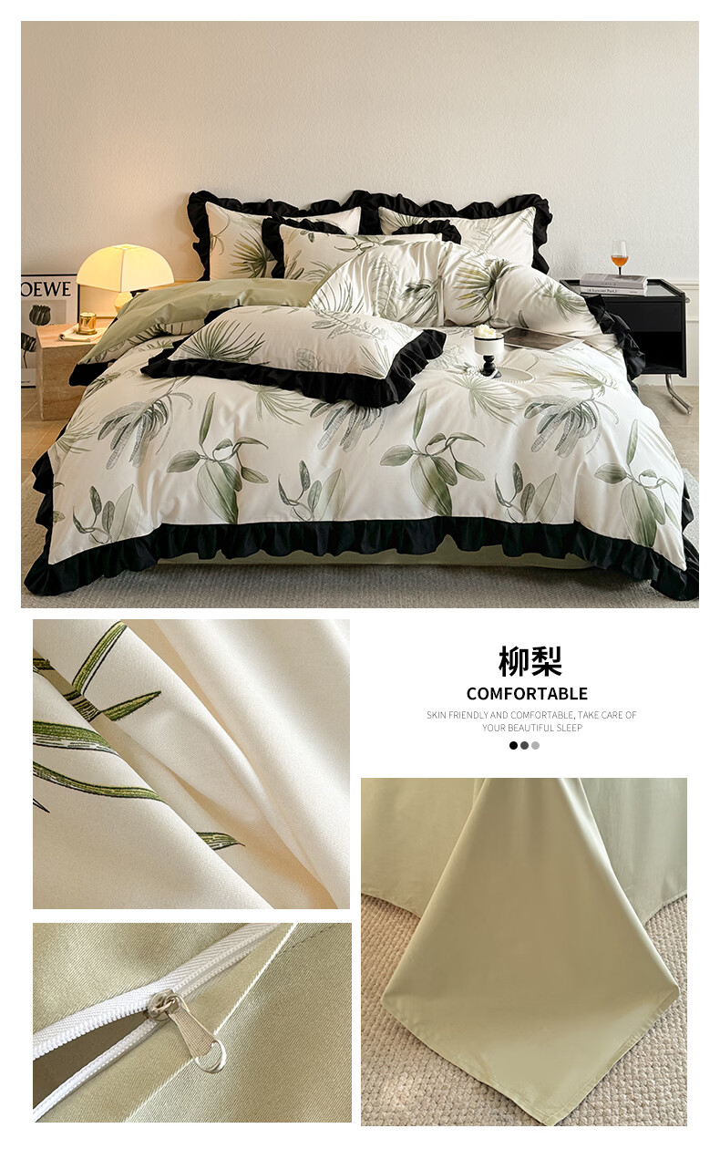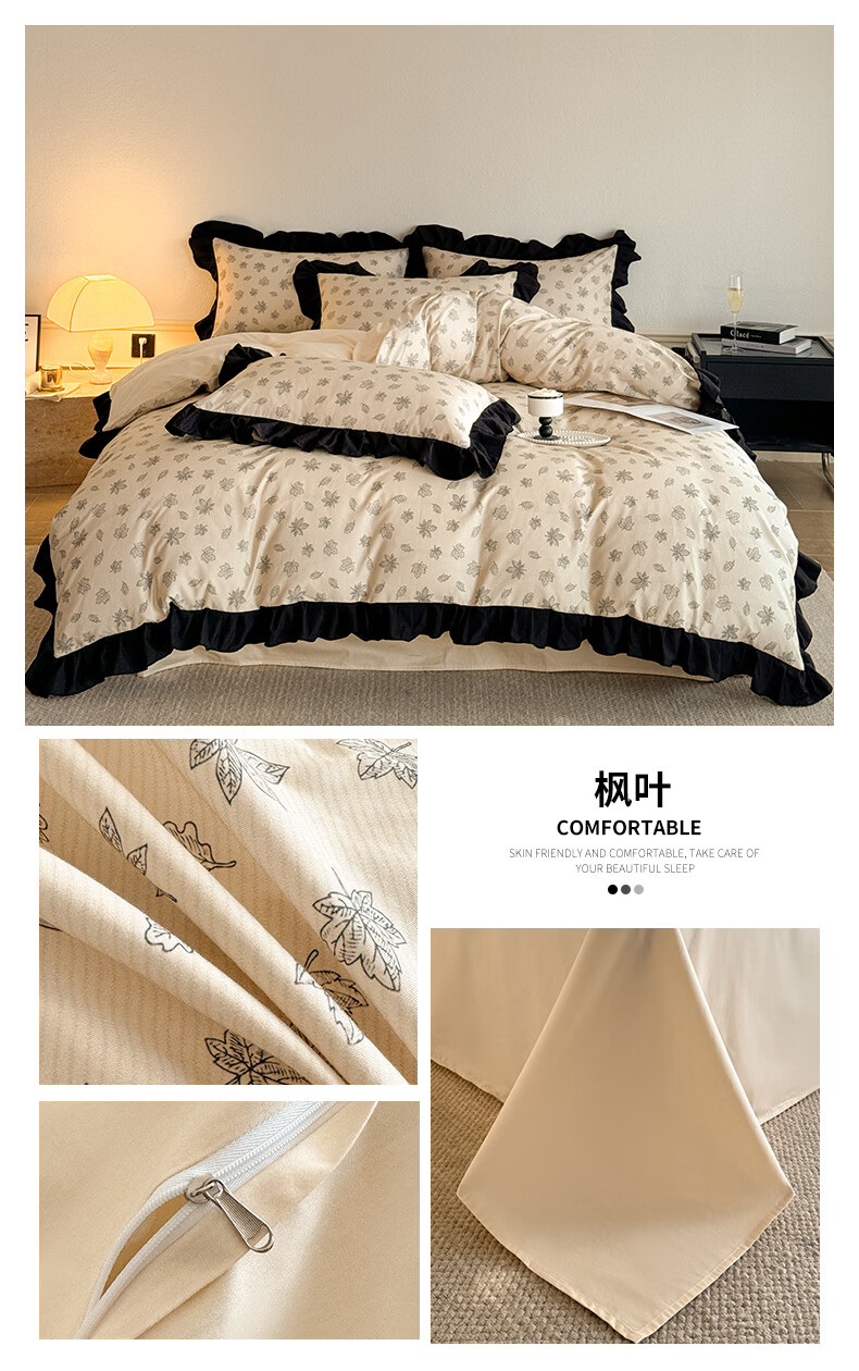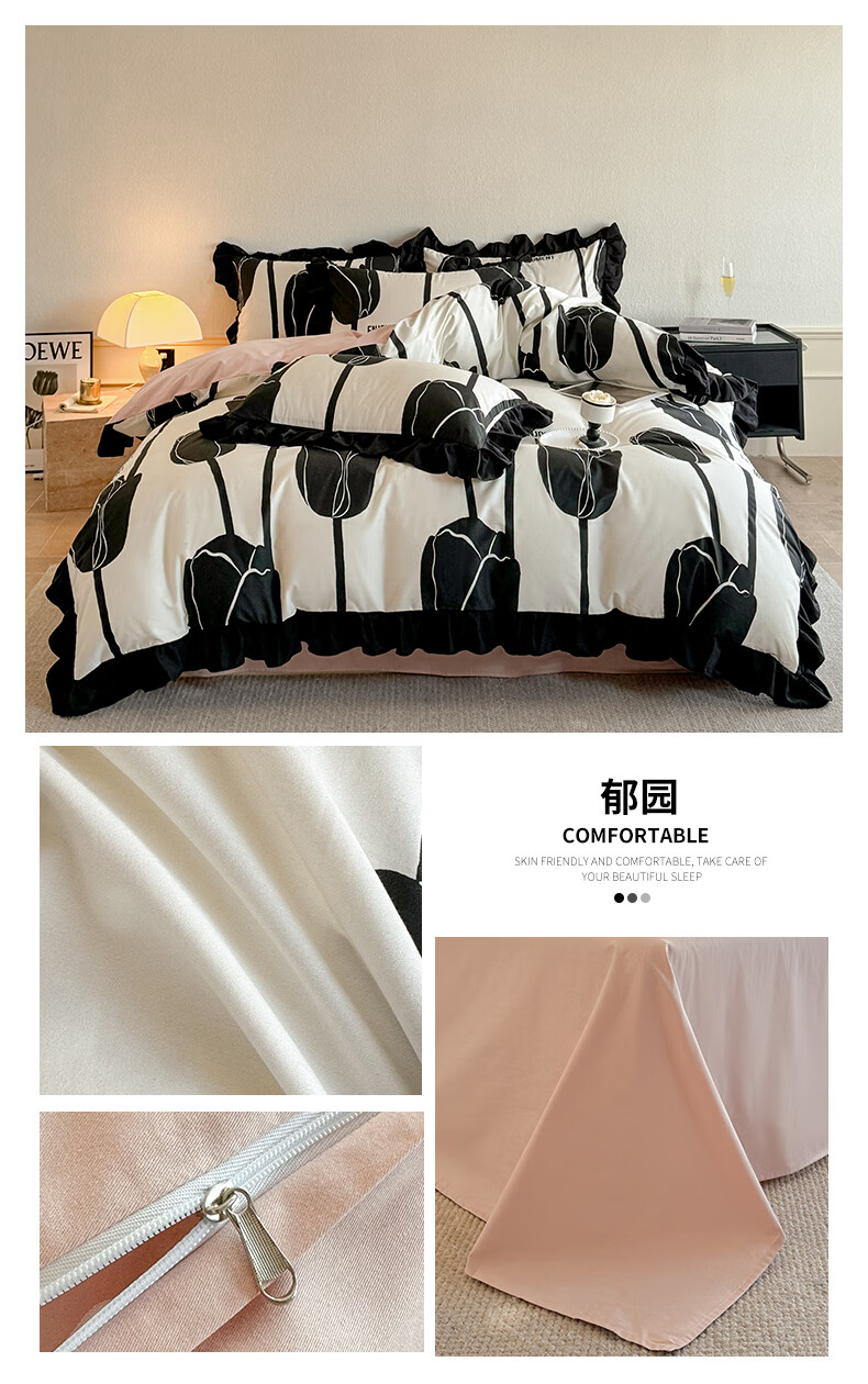 无印良品法式花边纯棉床上四件套全棉高端轻奢高级感床单被套家用床笠套件 水墨花【100%全棉 柔软舒适】 1.8m 床单款 四件套-被套200x230cm