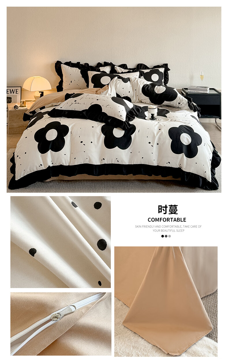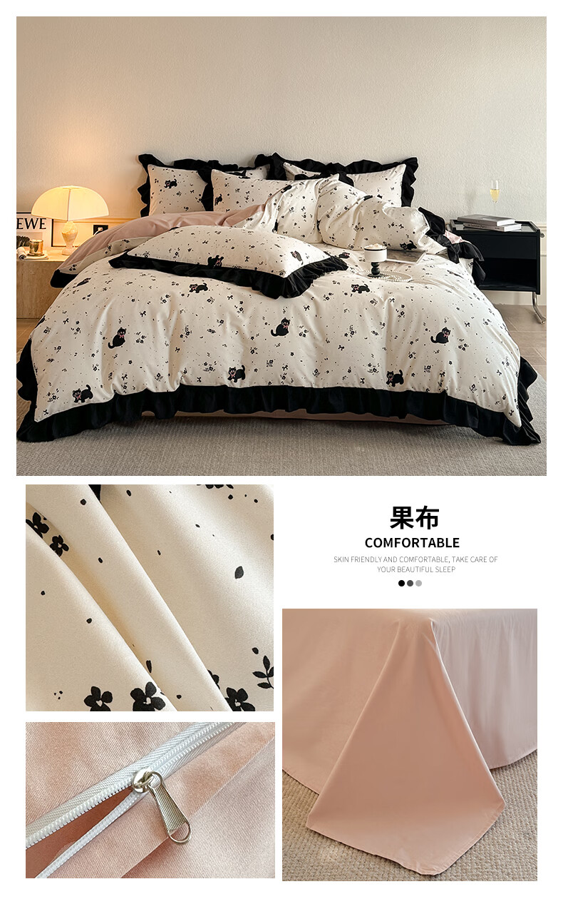 苏萱ins粉色波点纯棉床上四件套全棉毛球款被套床单1.8米少女公寓床品 海派甜心 1.8m 床单款 四件套-被套200x230cm