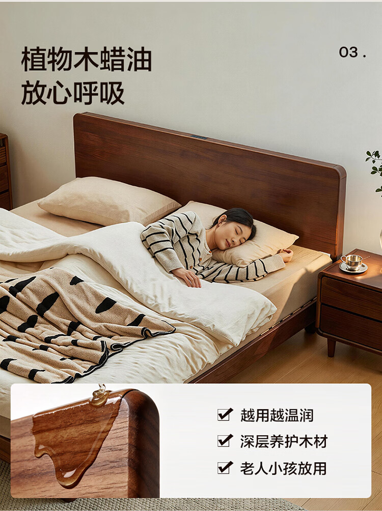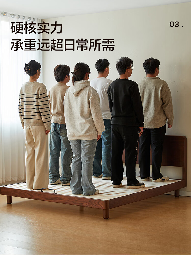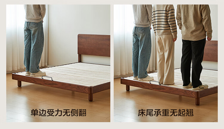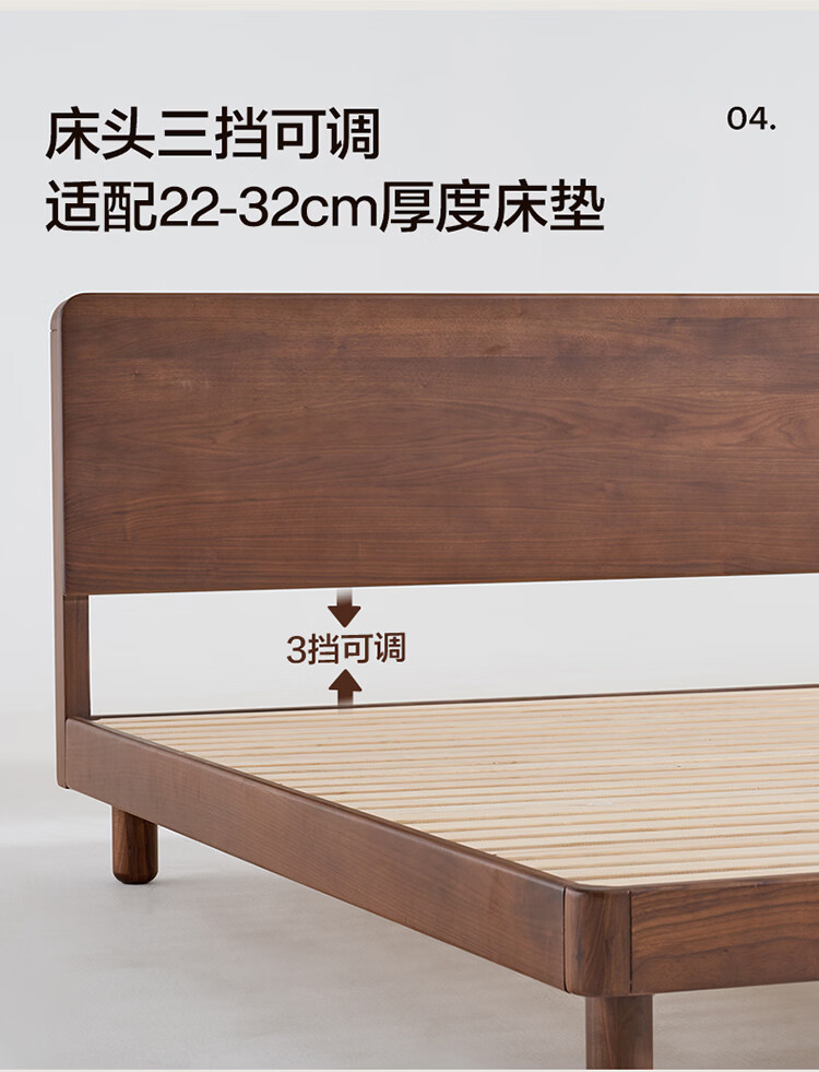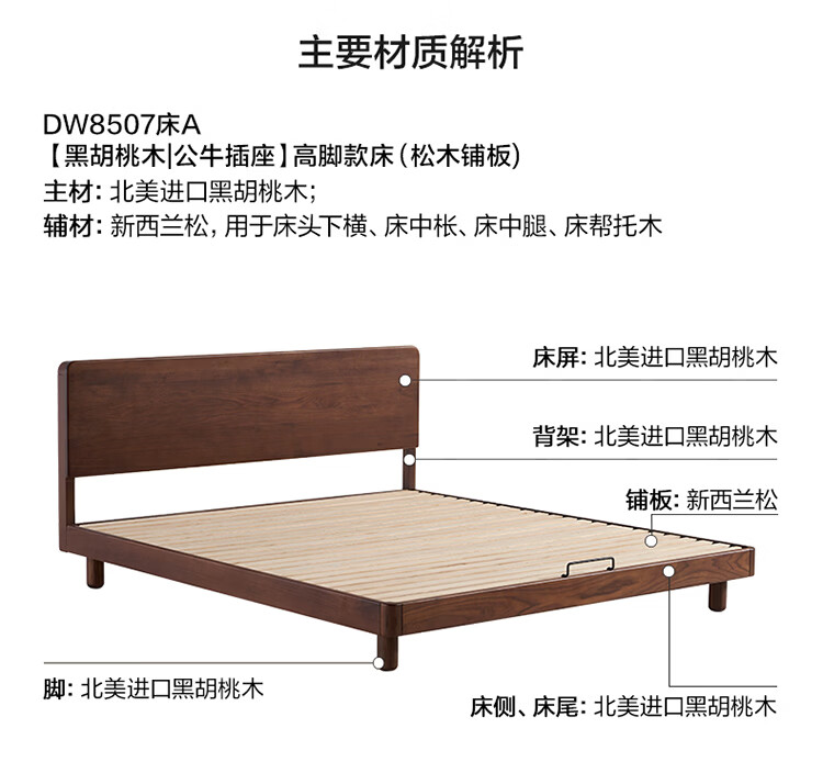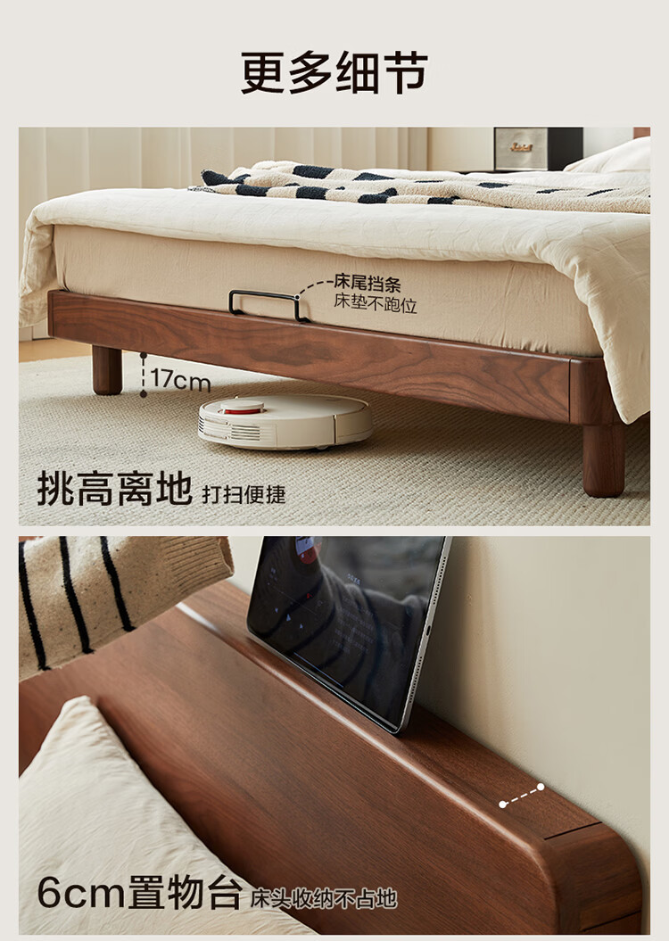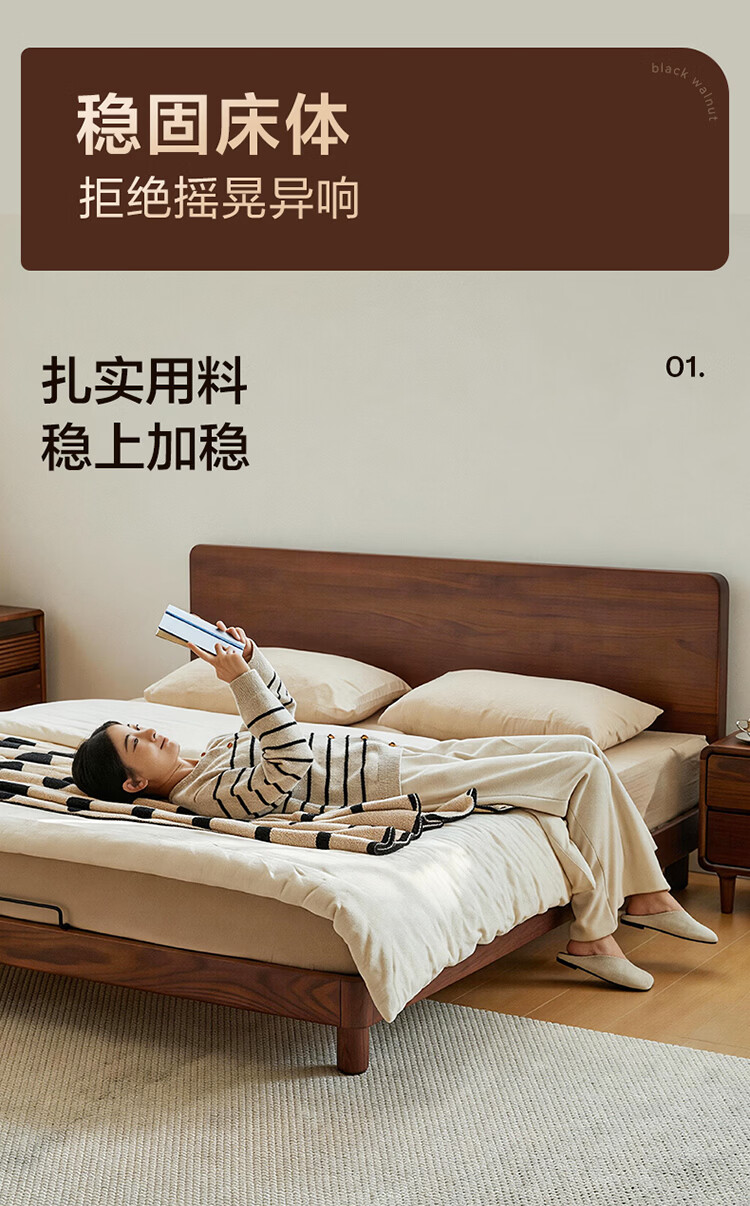 全友家居原木风北美黑胡桃实木床2026新款小户型齐边床主卧室双人大床 【黑胡桃木 | 公牛插座 | 松木铺板】高脚款 1.8米x2米 床