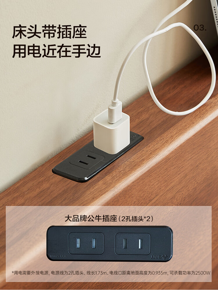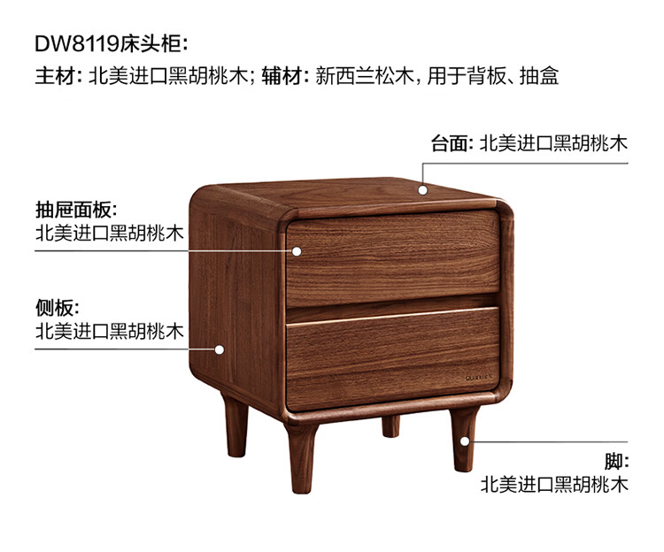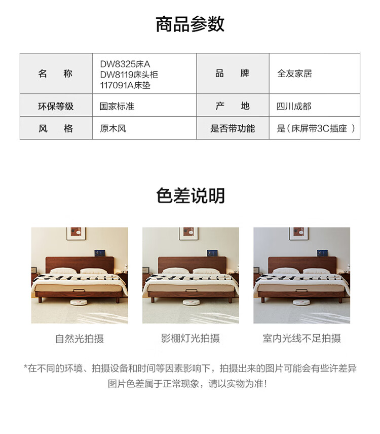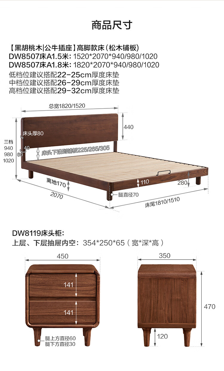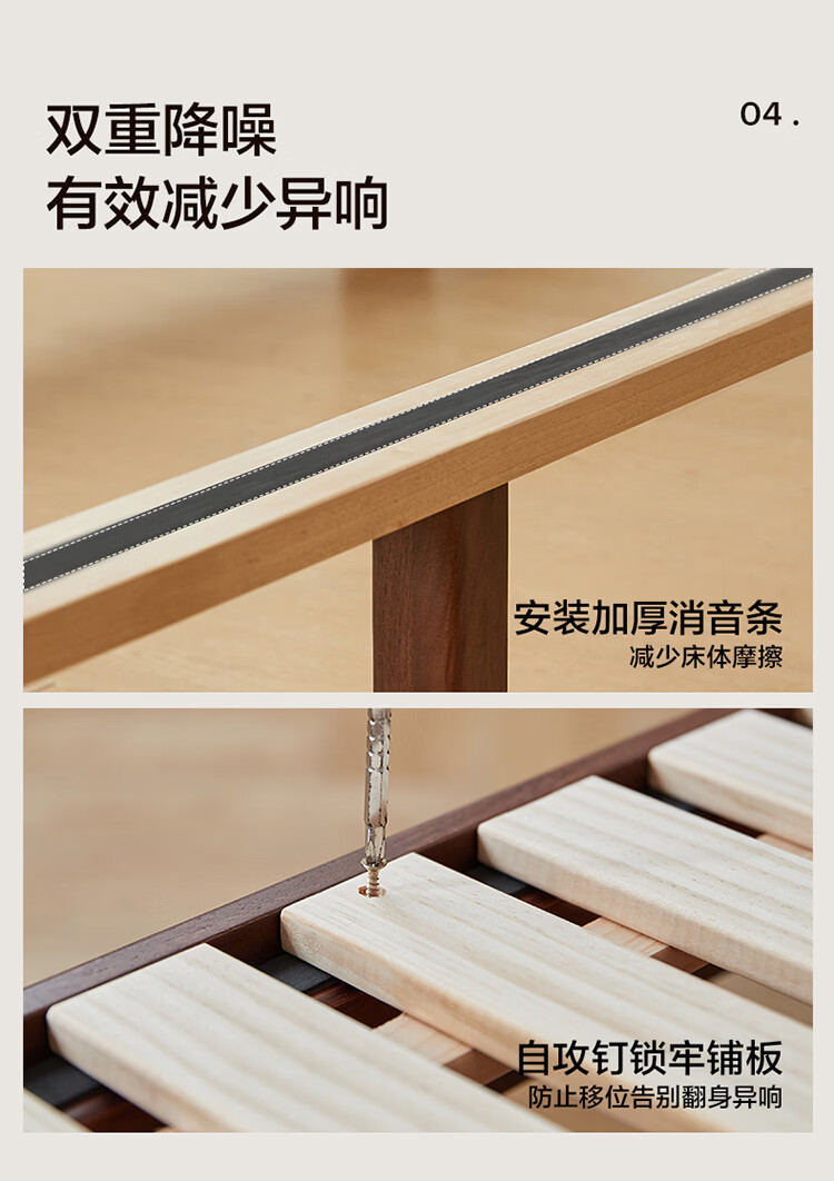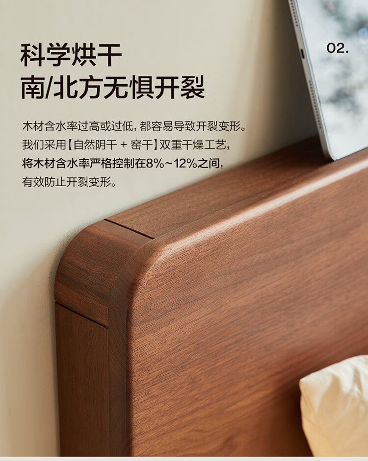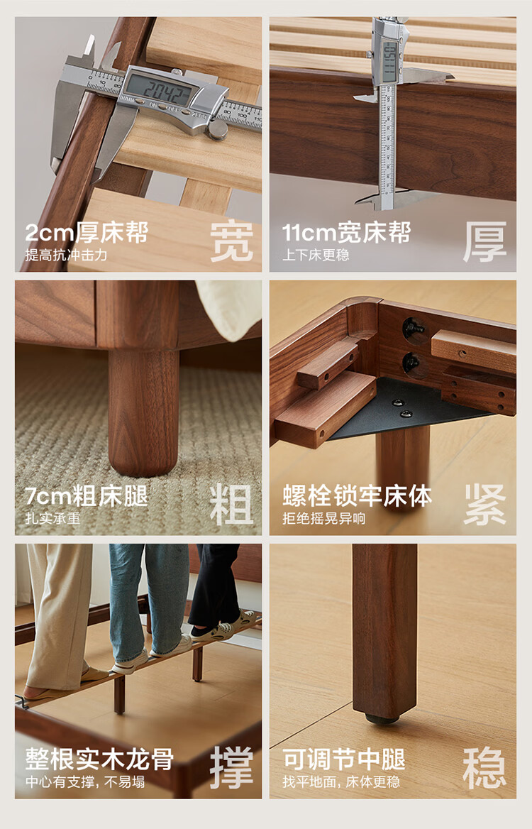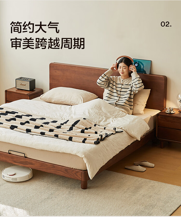 全友家居原木风北美黑胡桃实木床2026新款小户型齐边床主卧室双人大床 【黑胡桃木 | 公牛插座 | 松木铺板】高脚款 1.8米x2米 床