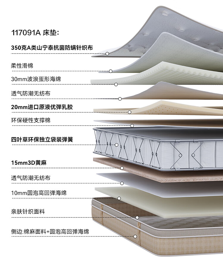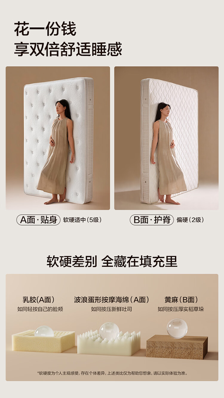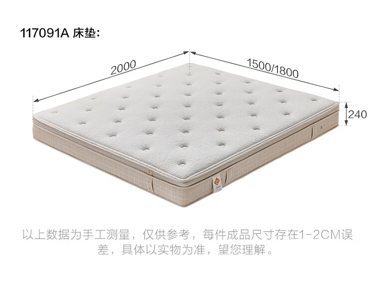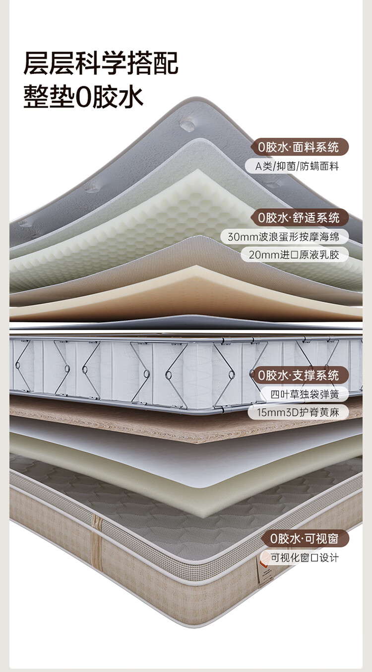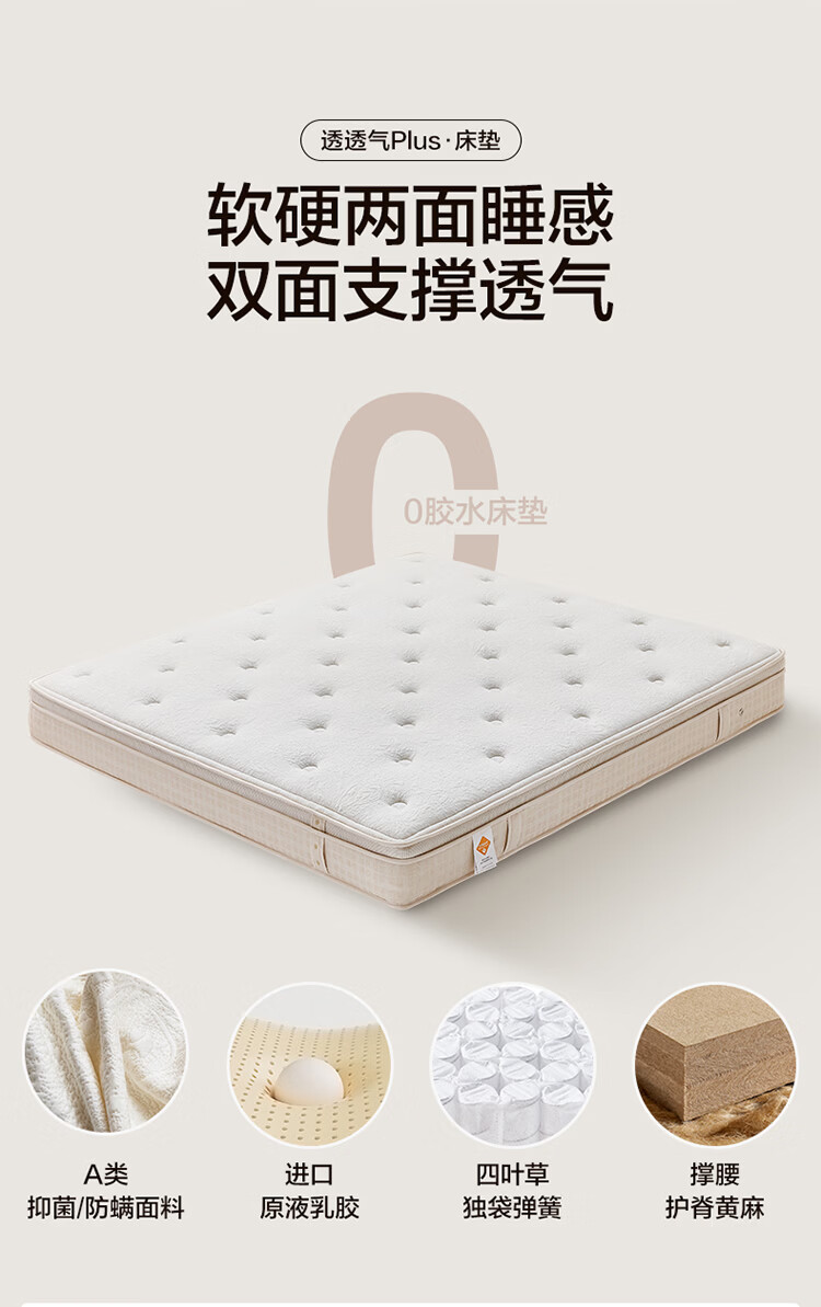 全友家居加厚乳胶床垫1.8米x2米独立弹簧椰棕护脊床垫子20cm厚云之垫 安睡pro版|1.8*2米|厚23cm