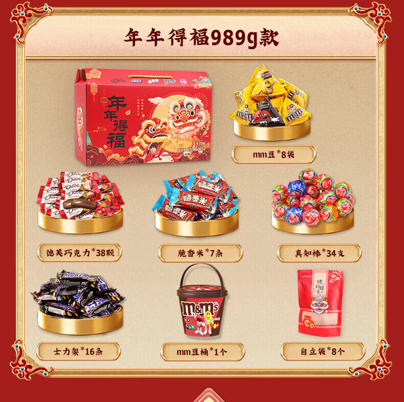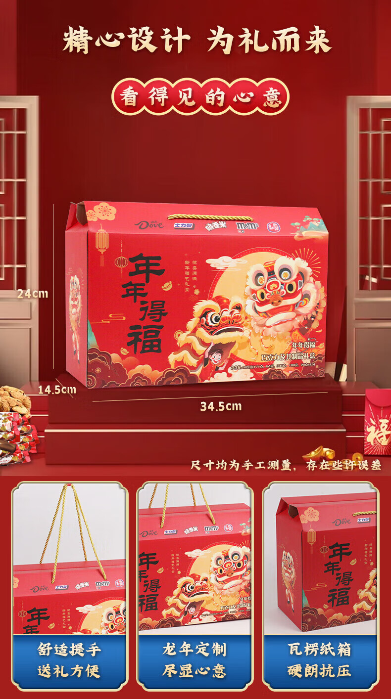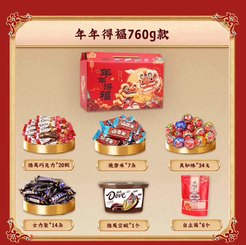 德芙(Dove)巧克力礼盒巧克力生日礼物年货节送女友零食休闲tzt 德芙马上有福年货礼包708g