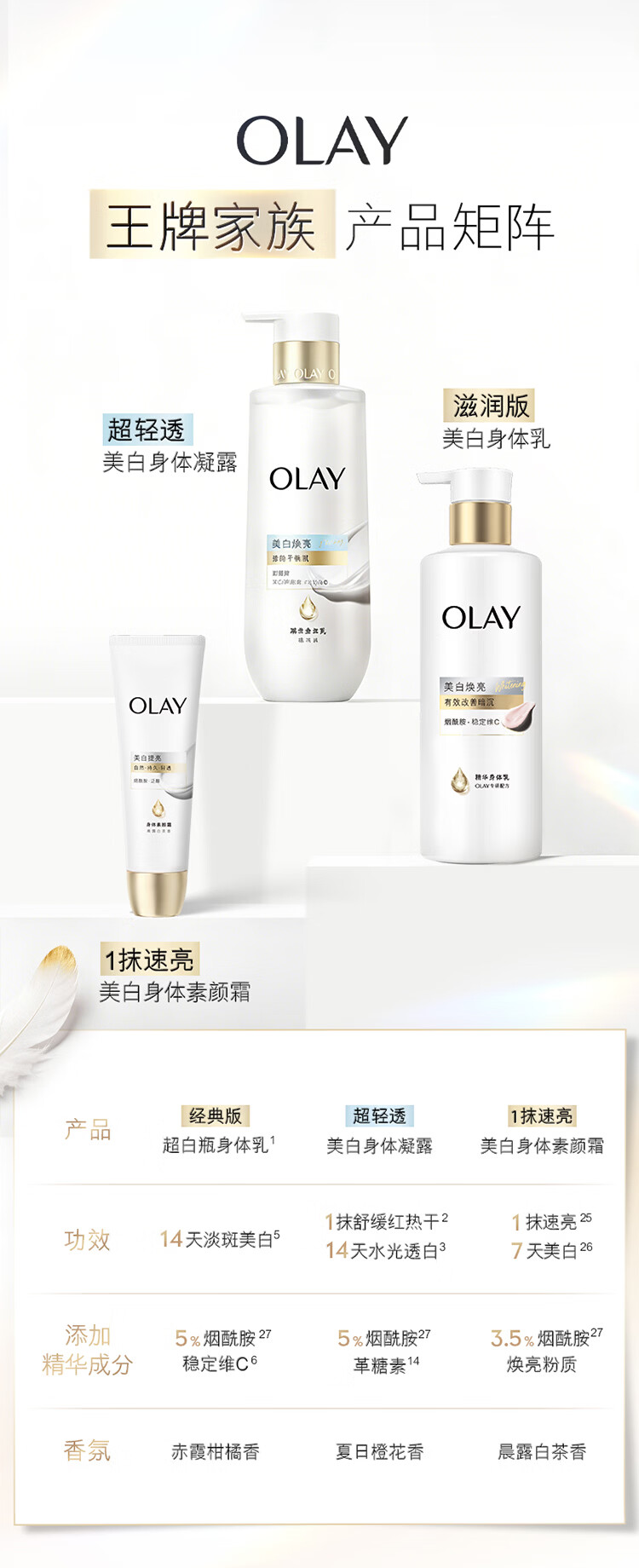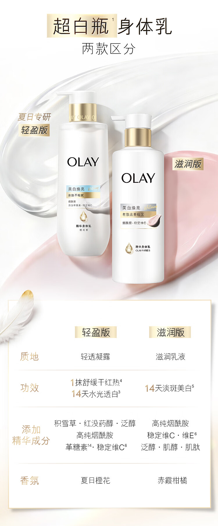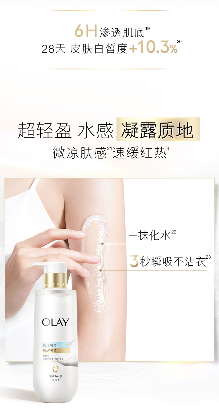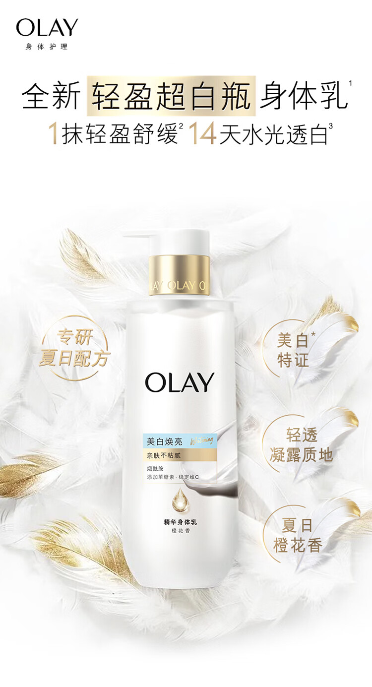 OLAY全新轻盈超白瓶美白身体乳橙花香260g轻透不粘腻补水保湿润肤男女