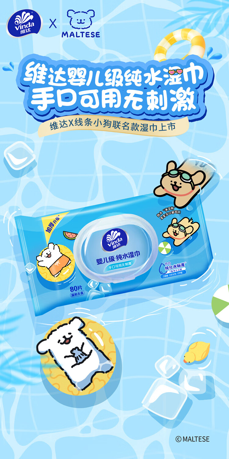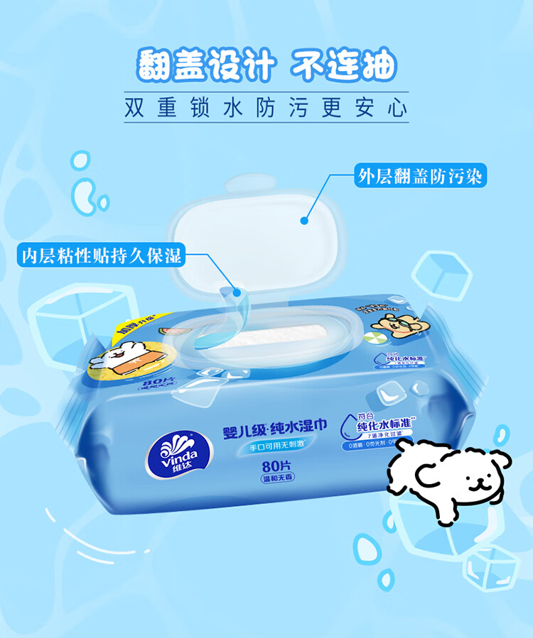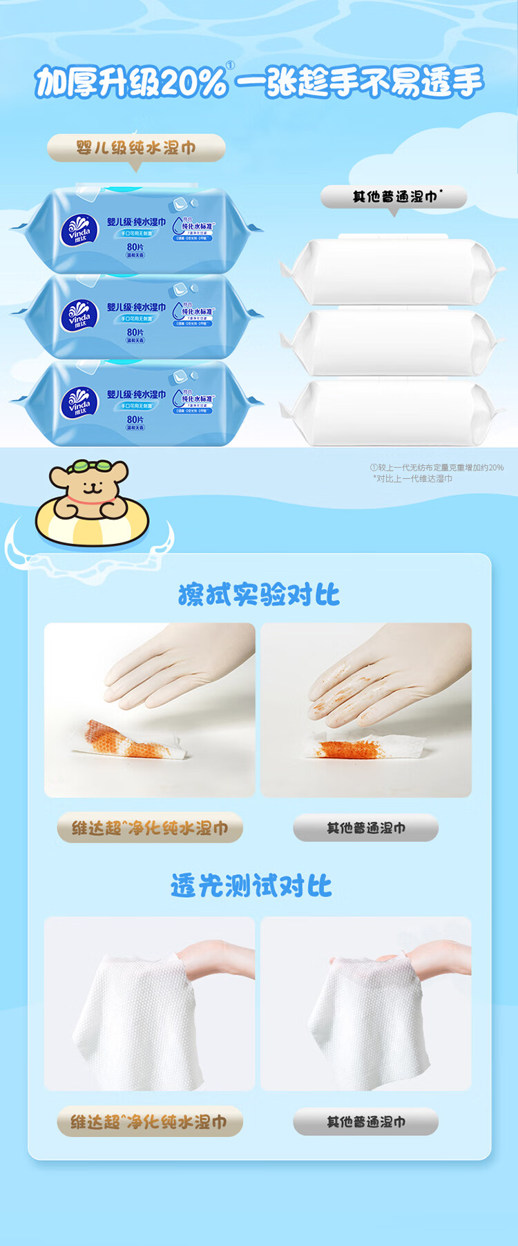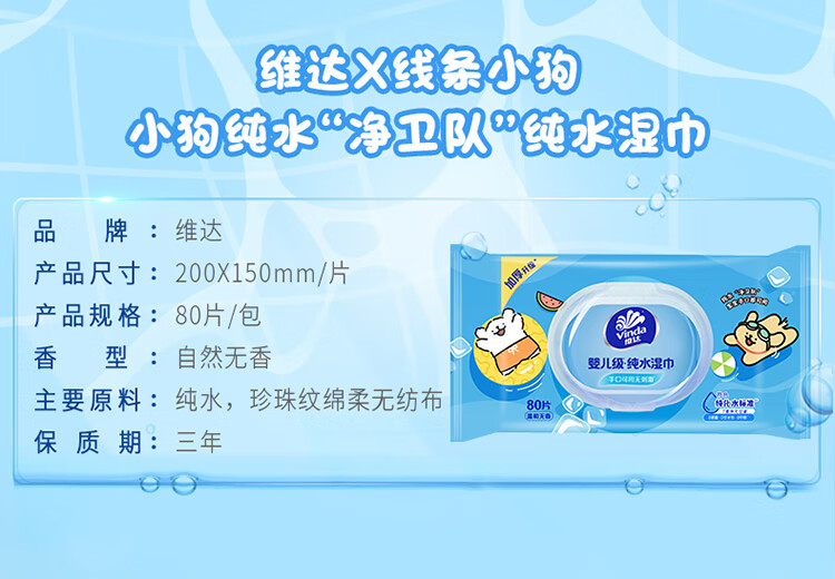 维达(Vinda)超净化纯水湿巾 80片*12包 线条小狗联名 婴儿湿巾手口可用湿纸巾