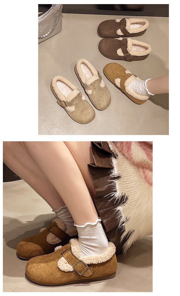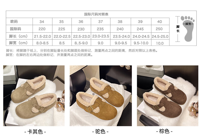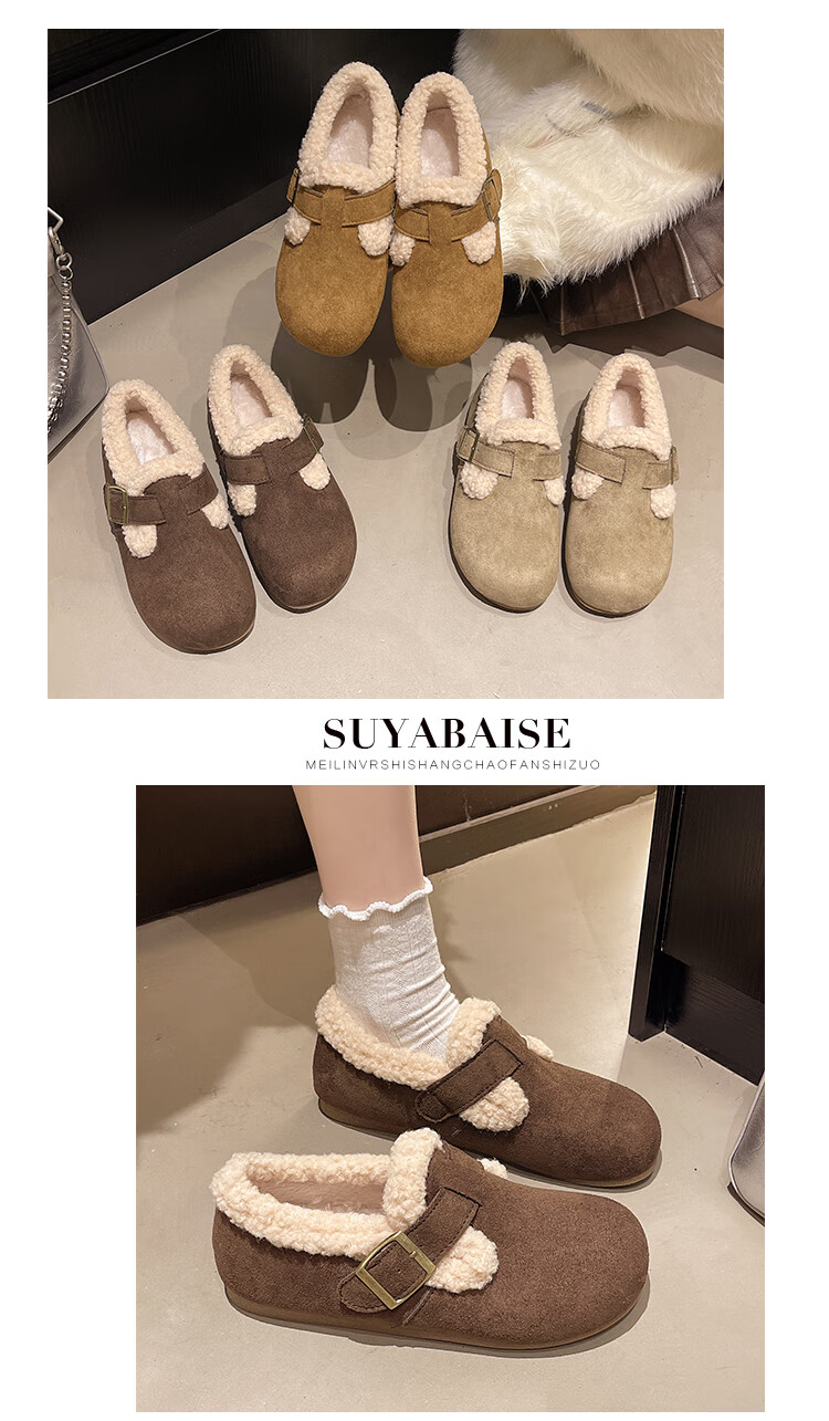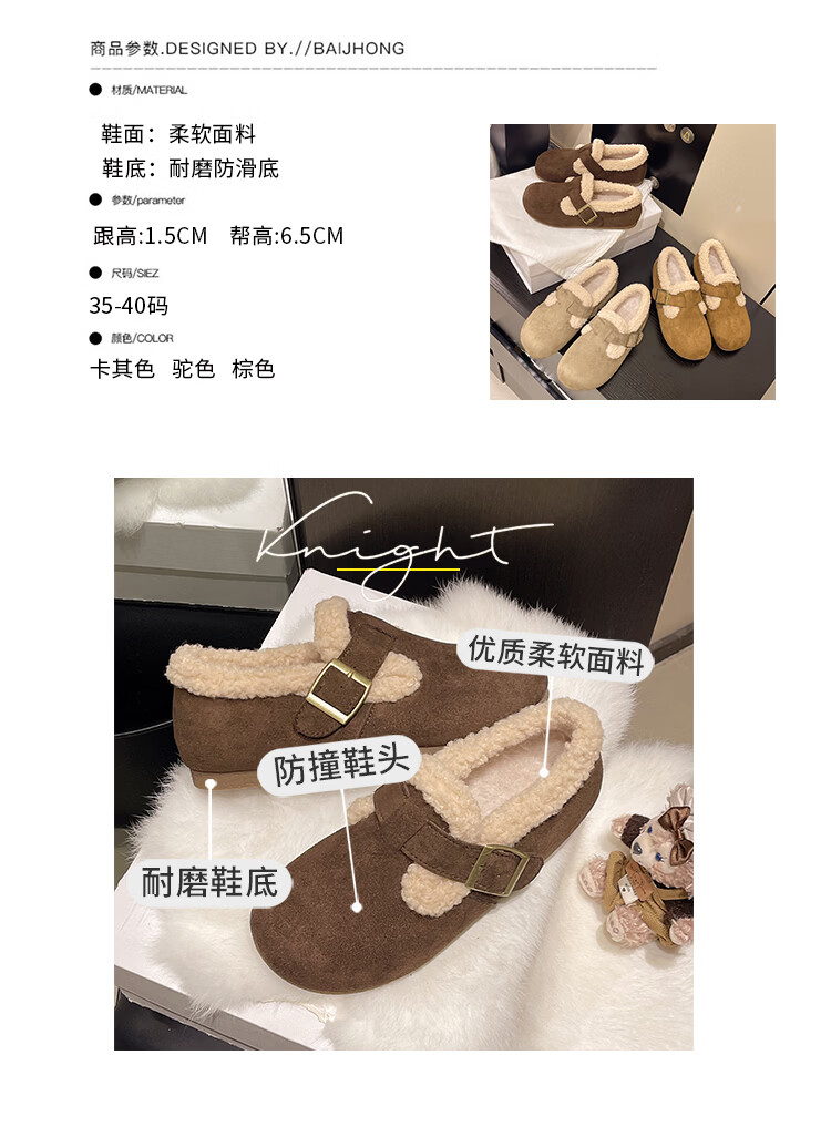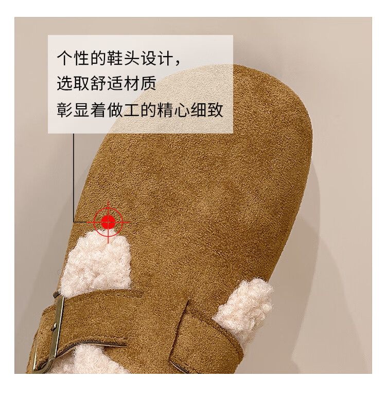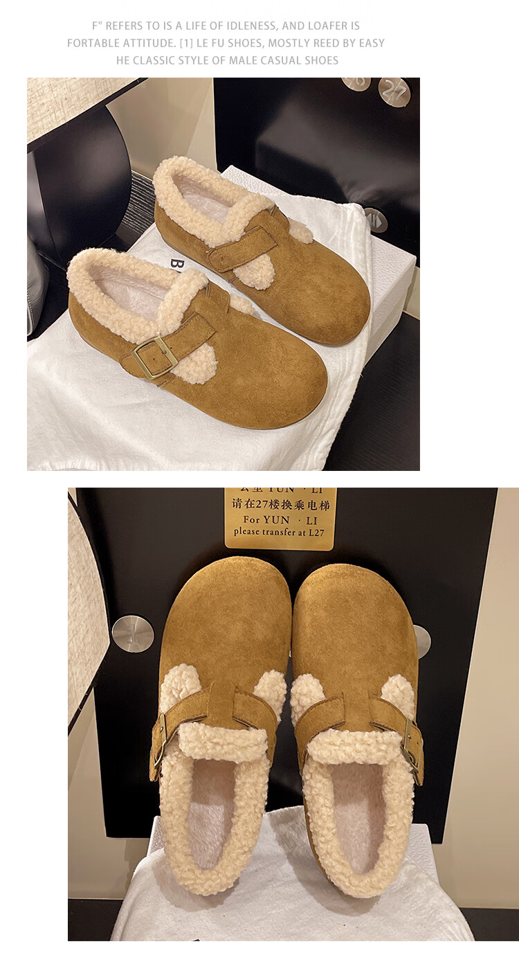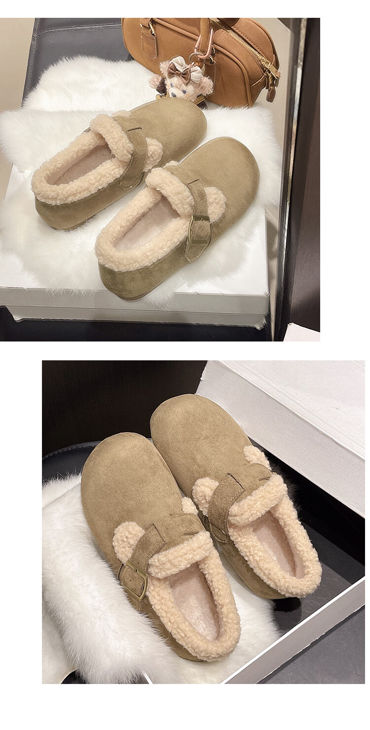 稻草人(MEXICAN)复古厚底加绒勃肯毛毛鞋女2026秋冬新款保暖棉鞋懒人一脚蹬雪地靴 加绒内里卡其色 35