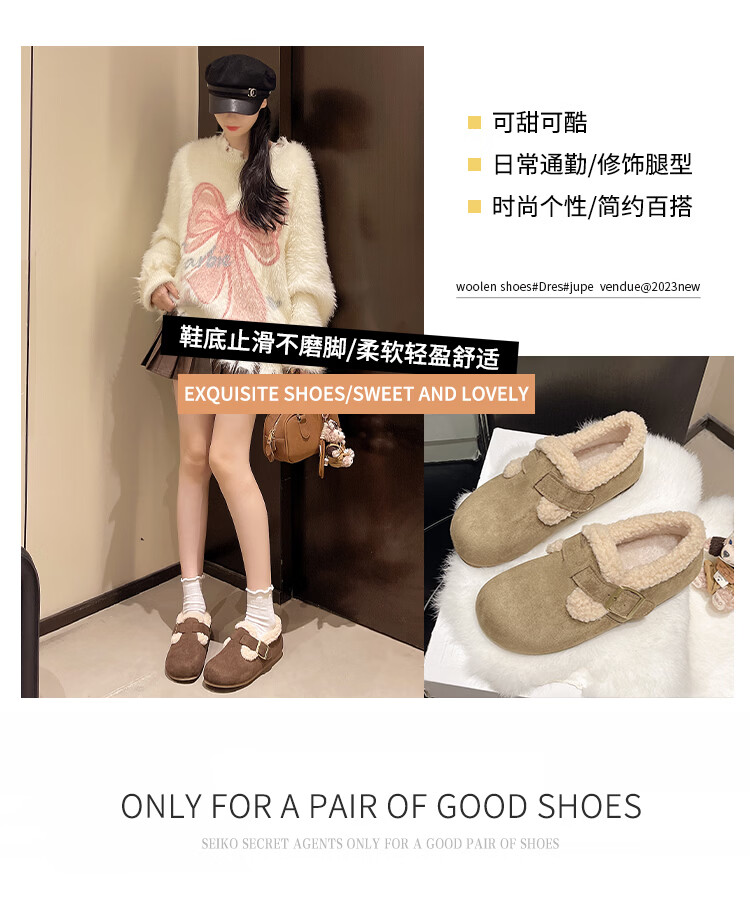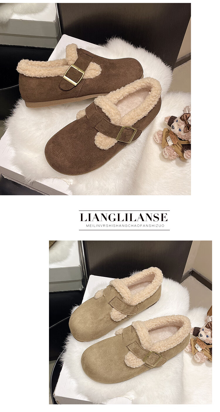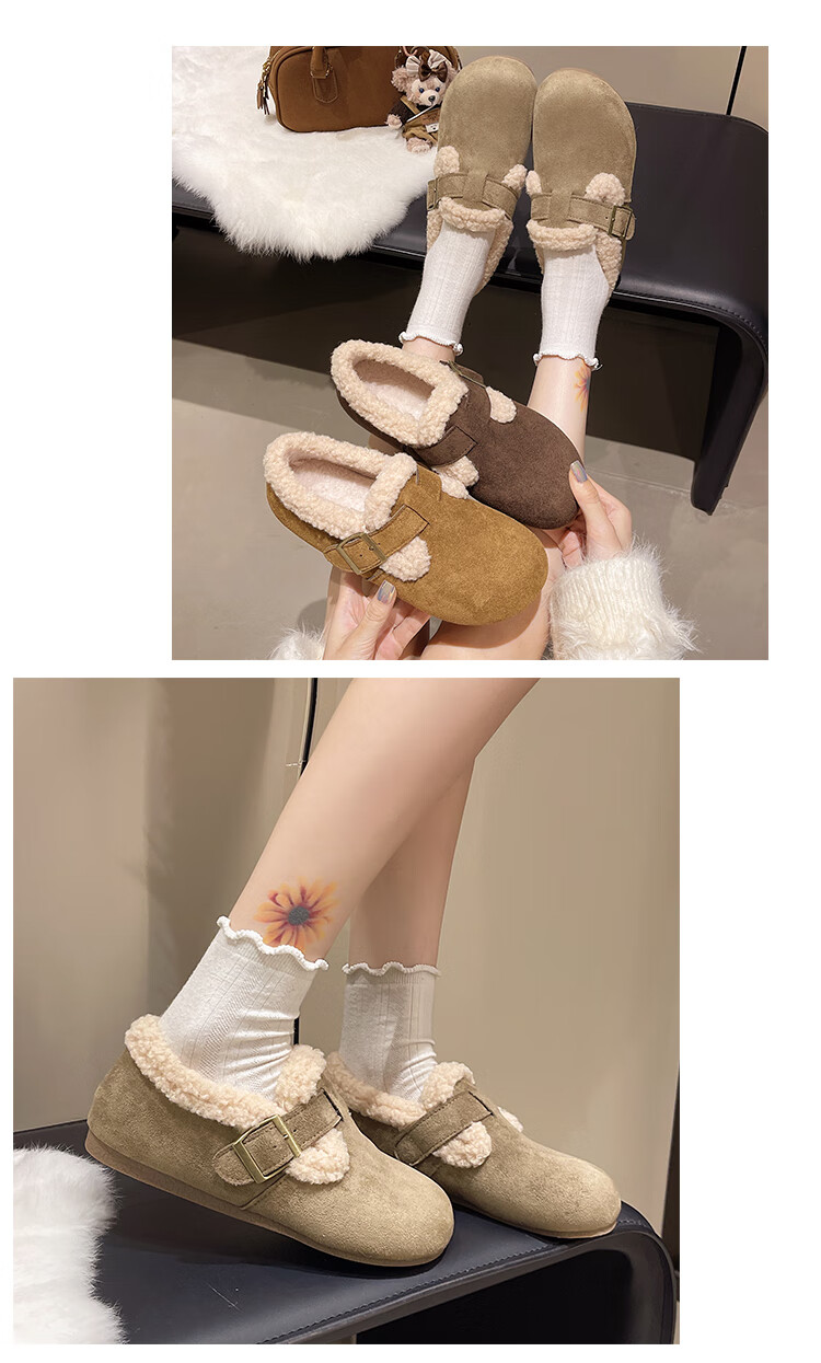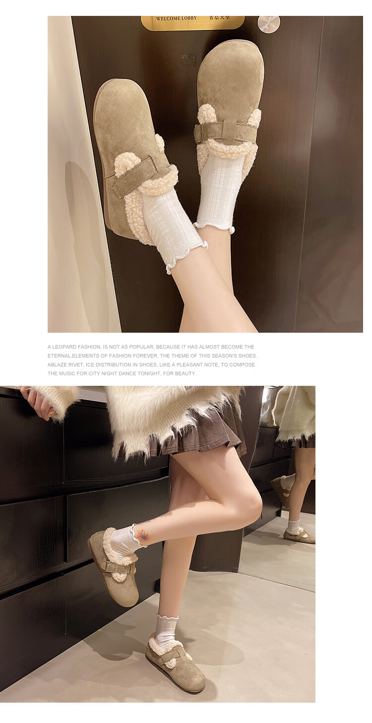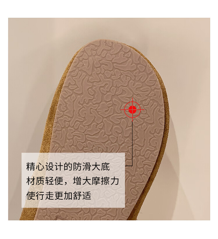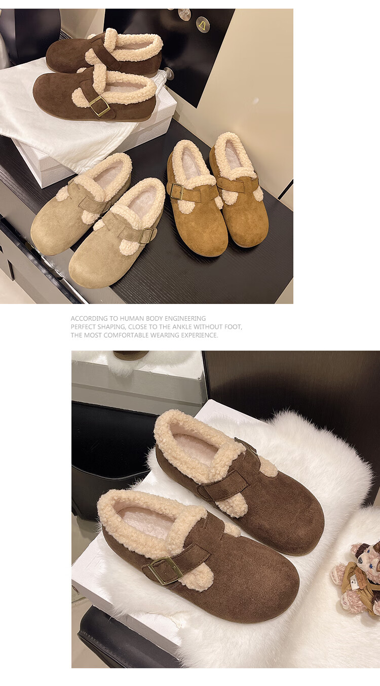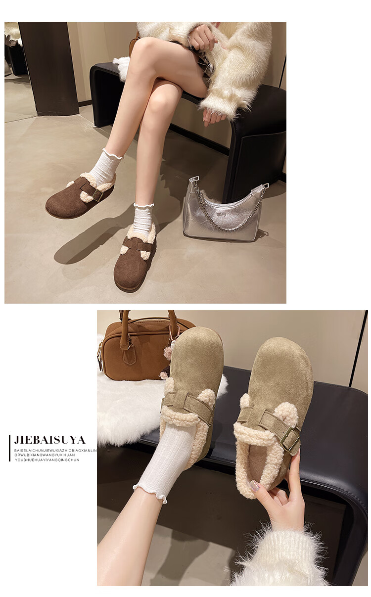 稻草人(MEXICAN)复古厚底加绒勃肯毛毛鞋女2026秋冬新款保暖棉鞋懒人一脚蹬雪地靴 加绒内里卡其色 35