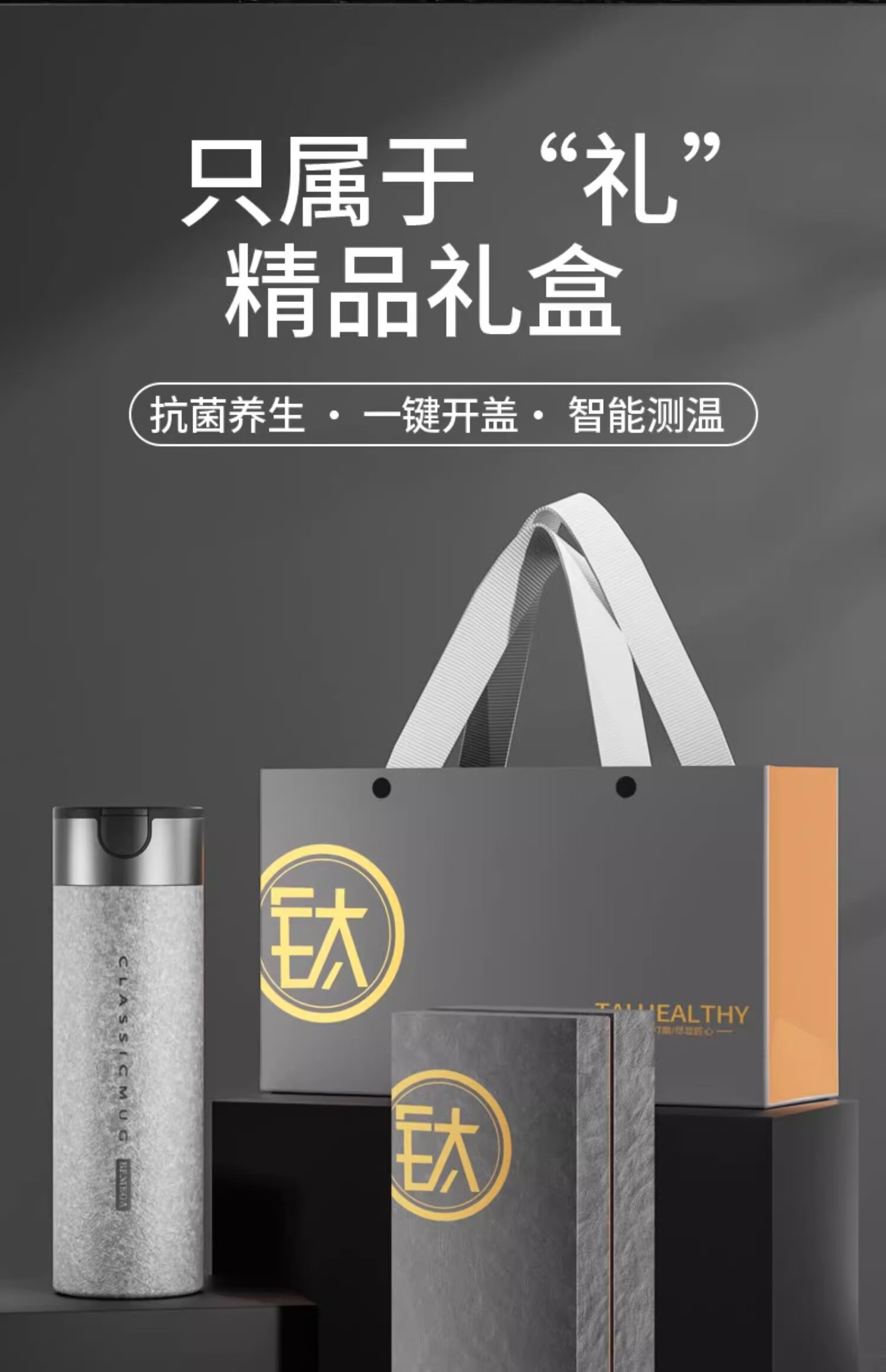 BEMEGA纯钛保温杯男款大容量车载钛杯泡茶水杯子定制新年情人节生日礼物 绅士黑【纯钛抗菌内胆 礼盒装】