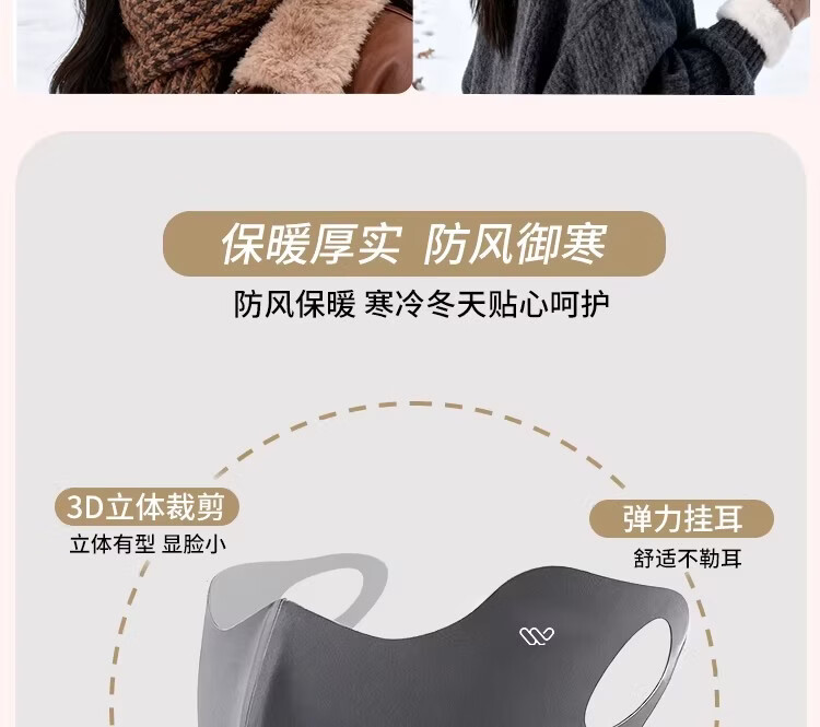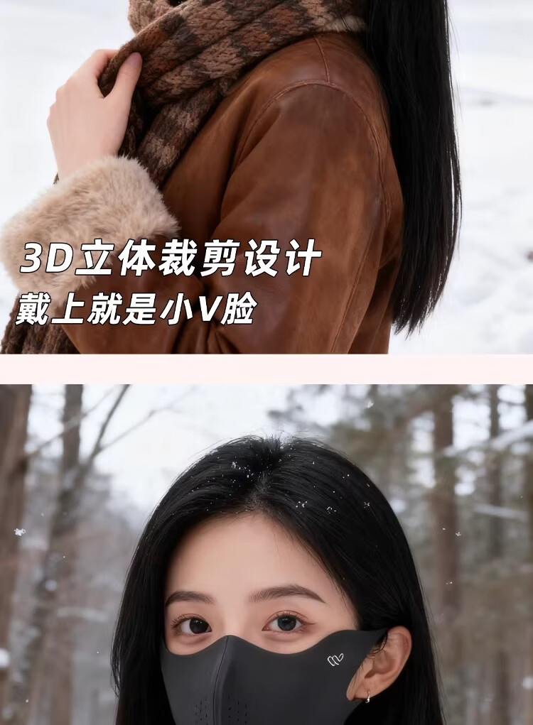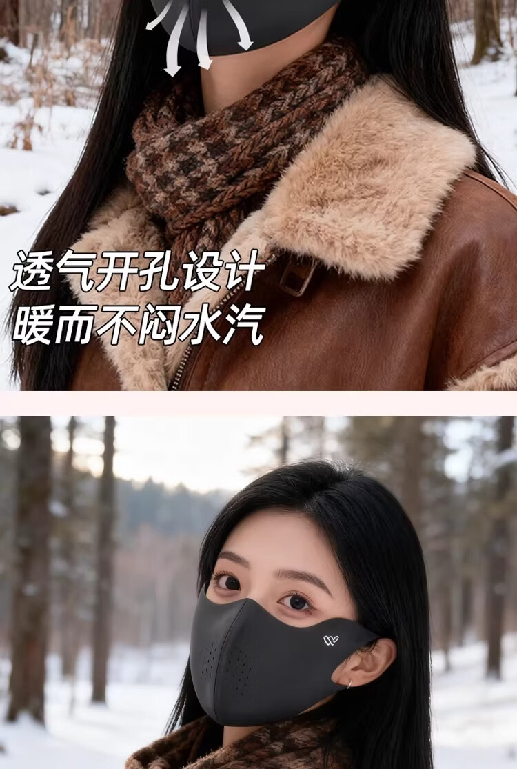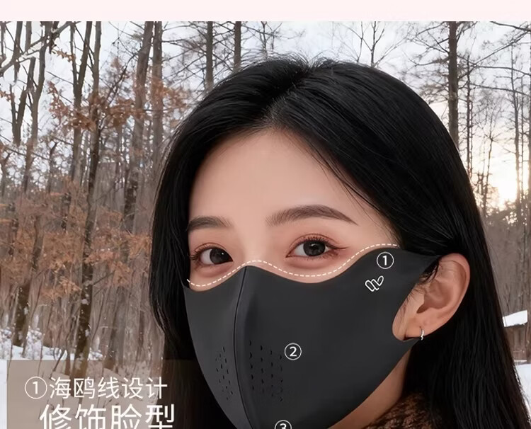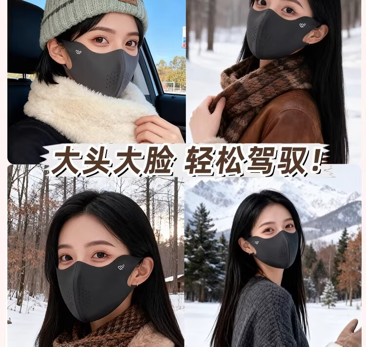 万宝绿保暖口罩女高颜值冬季防风防寒2025新款3d立体黑色成人东北防冻脸 云墨黑【保暖防风 透气抗寒】