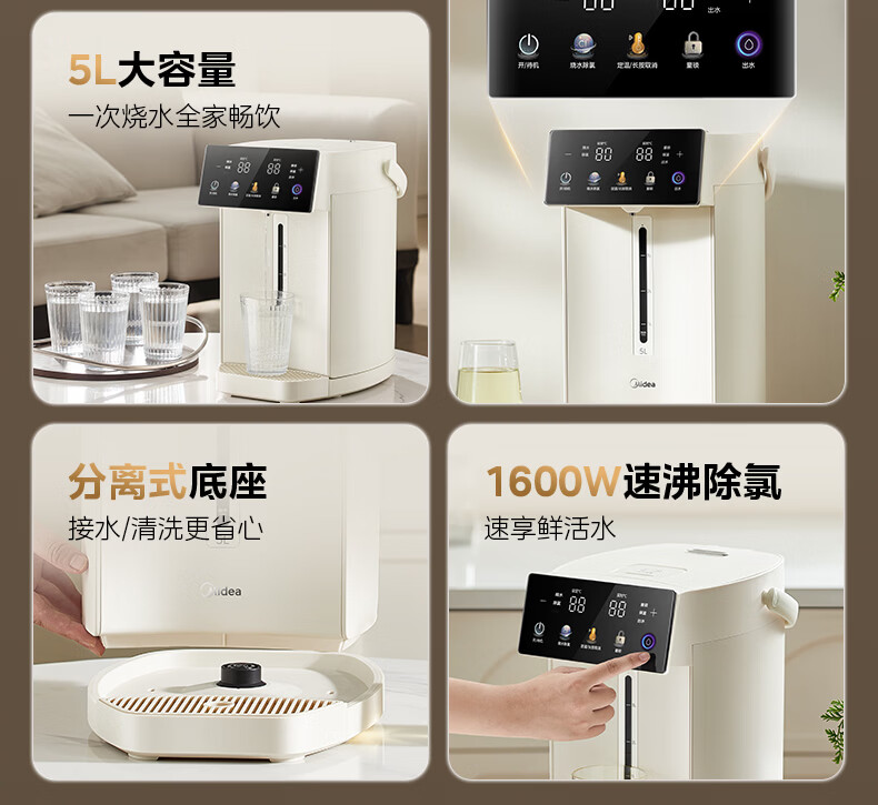 美的(Midea)小魔方电热水瓶可拆5L恒温一体全自动除氯电热水壶有钛无缝内胆保温水壶非即热式饮水机熟水机 5L 有钛无缝内胆【2026年旗舰新品】