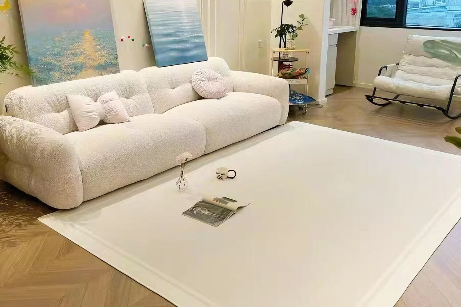 Y U-LIVE地毯客厅中古风2026新款复古异形免洗可擦不规则法式防水沙发 S仿羊绒-浮羽 180×250Cm【夏季透气 冬季保暖】