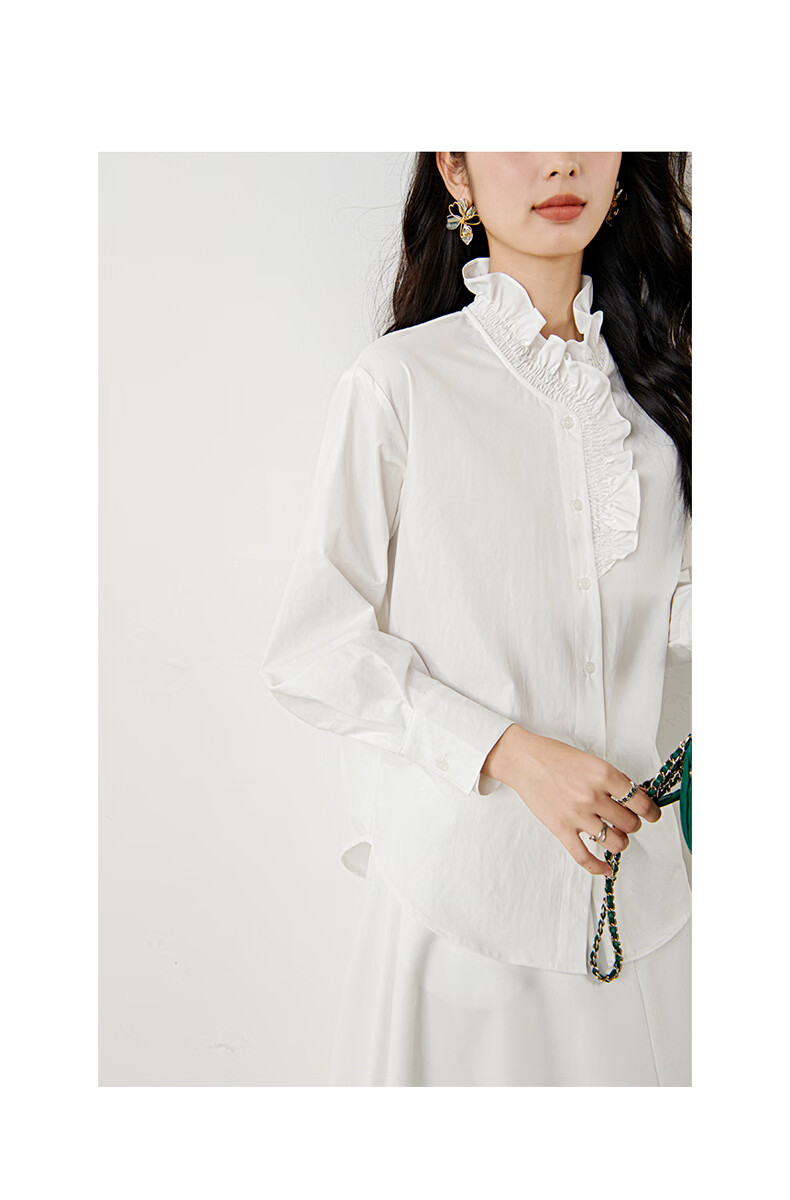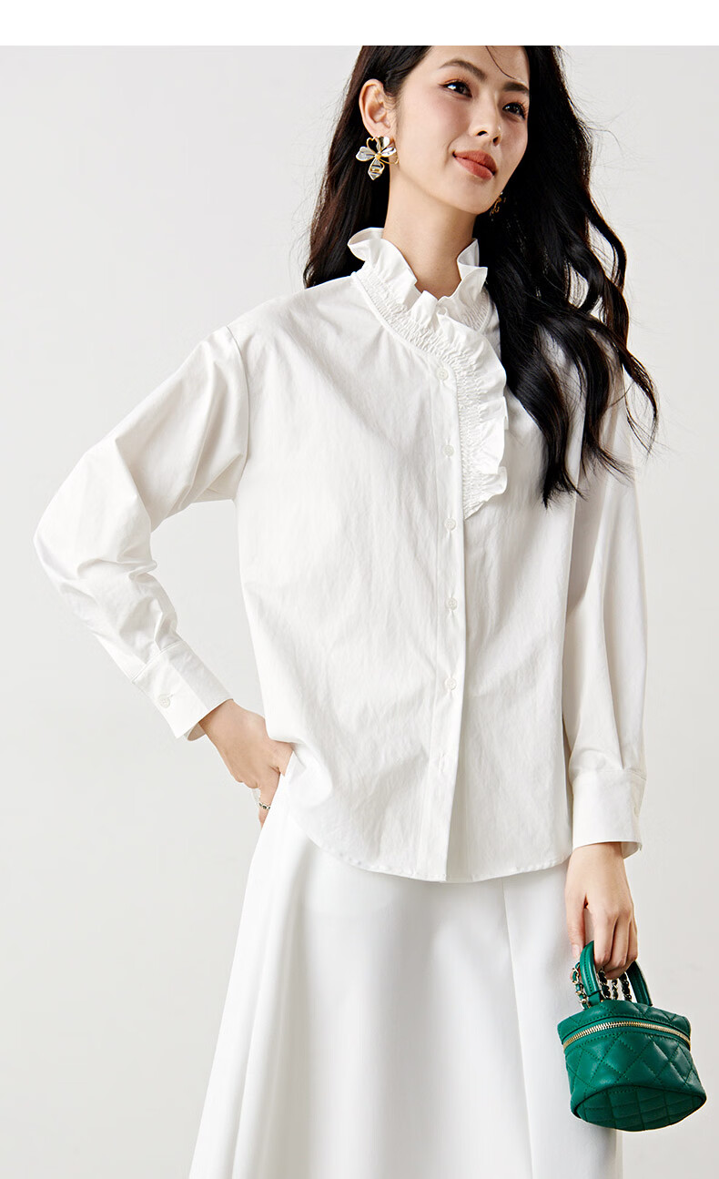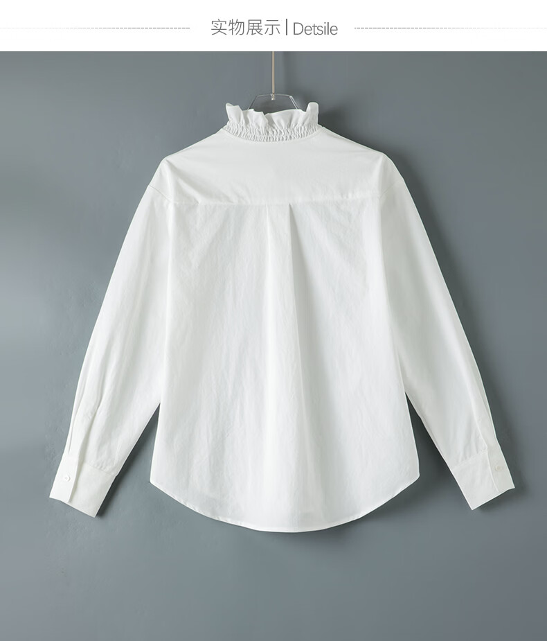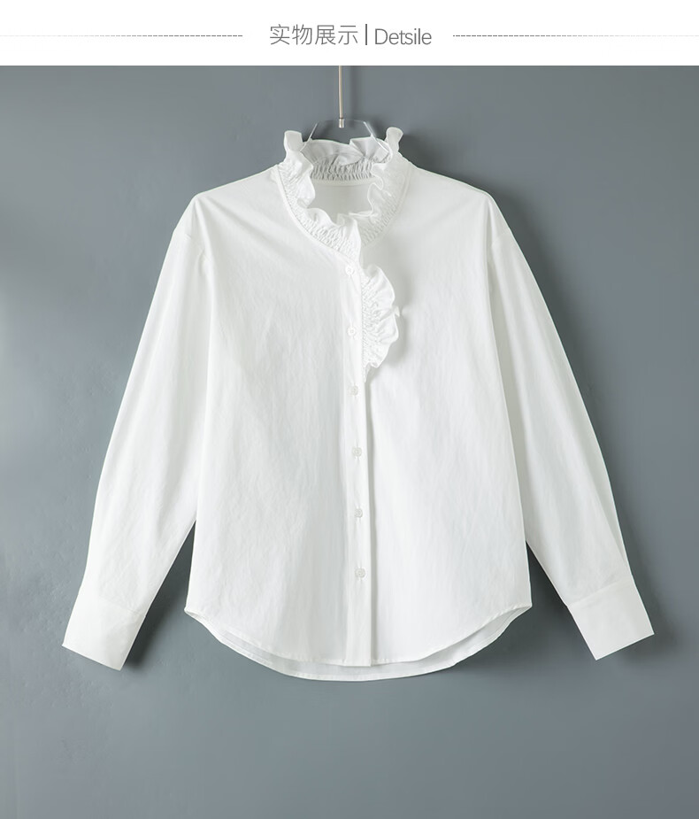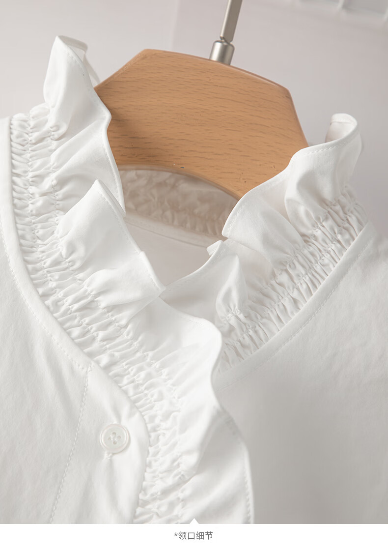 晚白2026年春款法式复古宫廷风木耳花边领棉感上衣宽松松弛感大码衬衫 白色 M