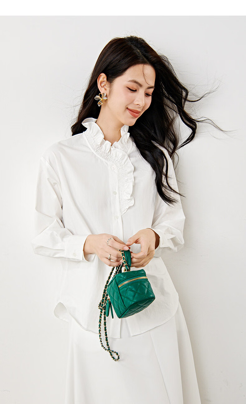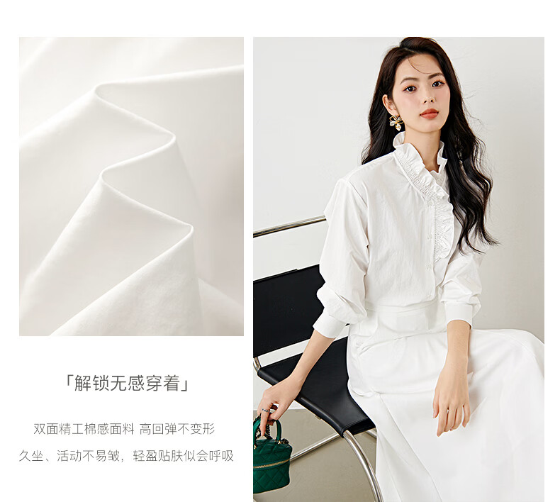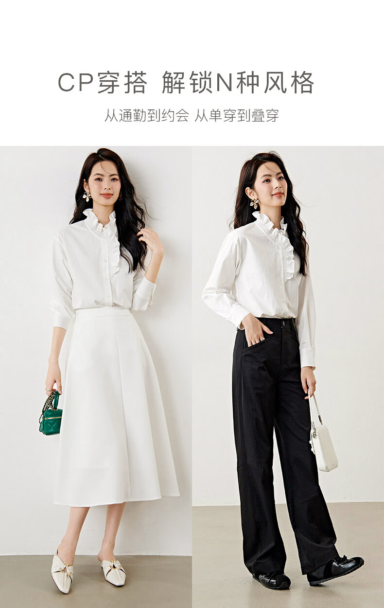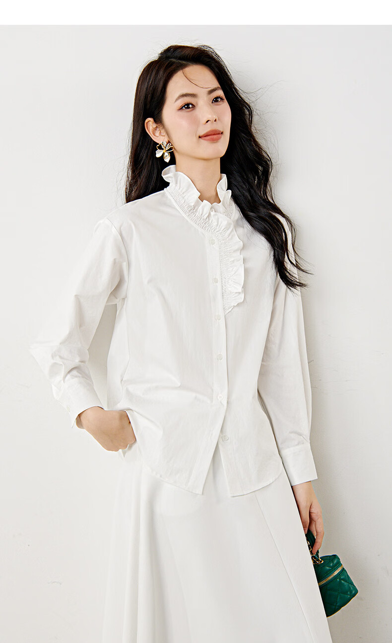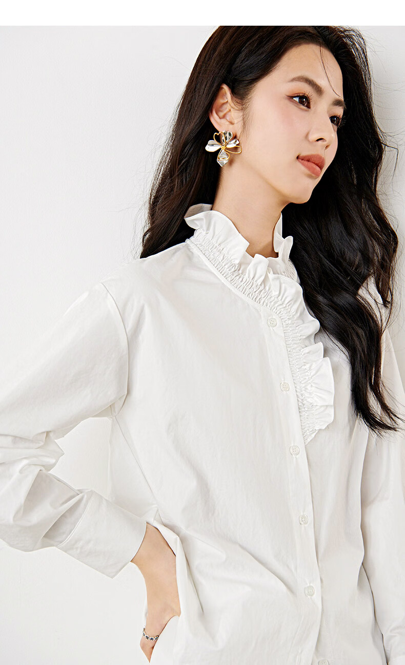 晚白2026年春款法式复古宫廷风木耳花边领棉感上衣宽松松弛感大码衬衫 白色 M