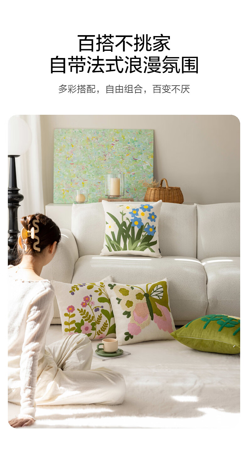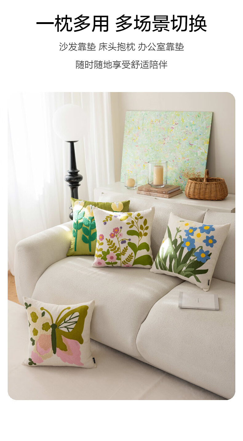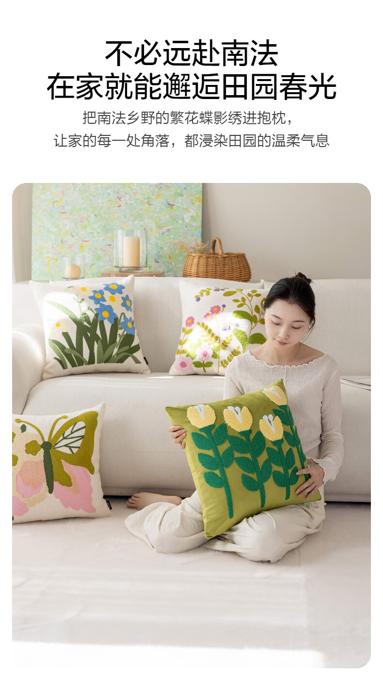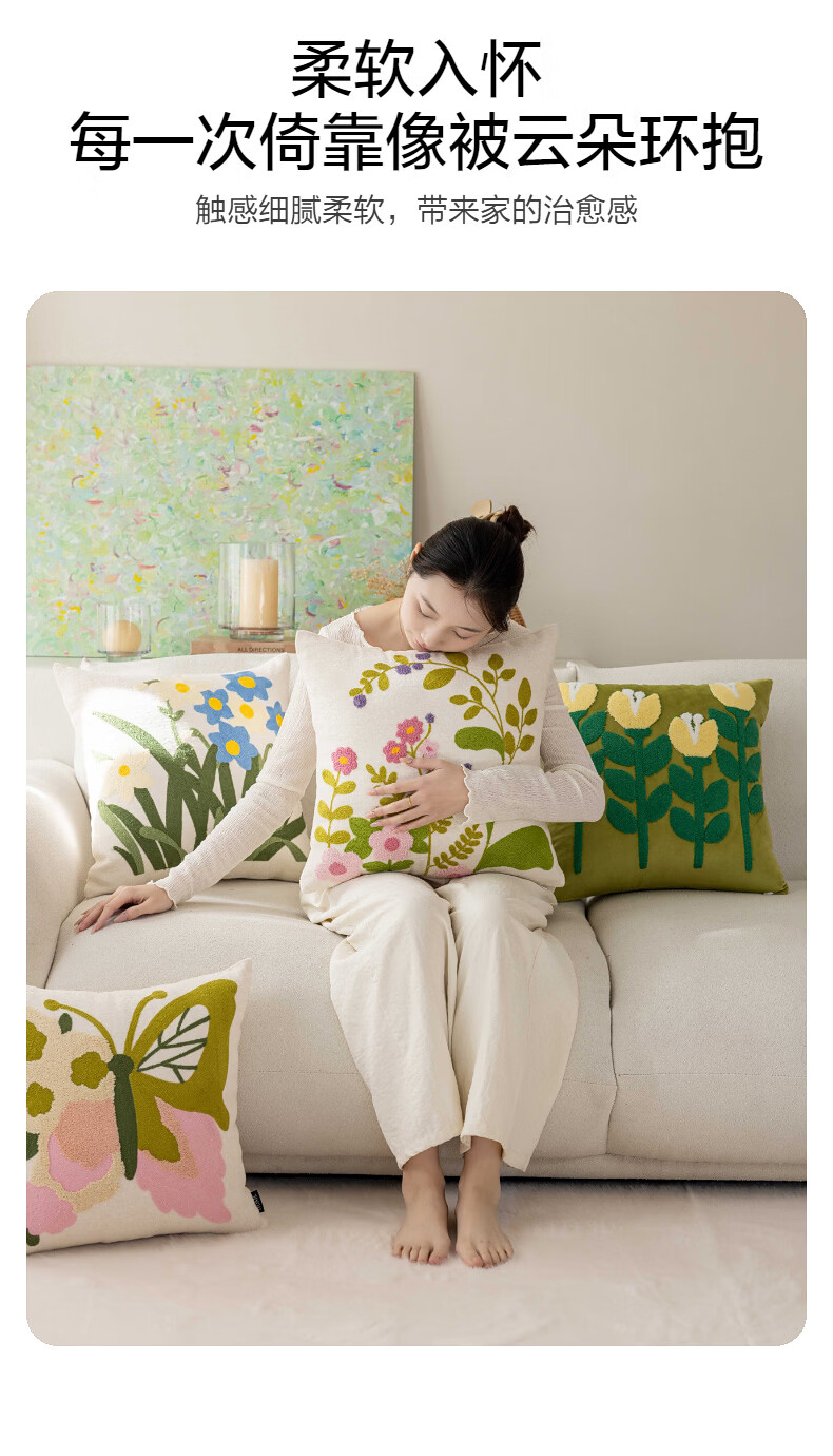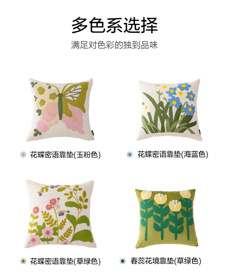 水星家纺花蝶密语靠垫/春蕊花境靠垫 春蕊花境靠垫(草绿色) 45cm*45cm*18cm 含枕芯