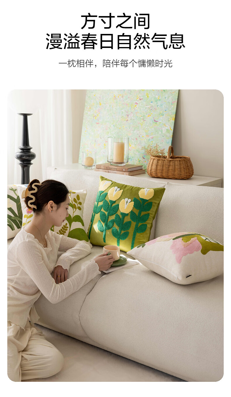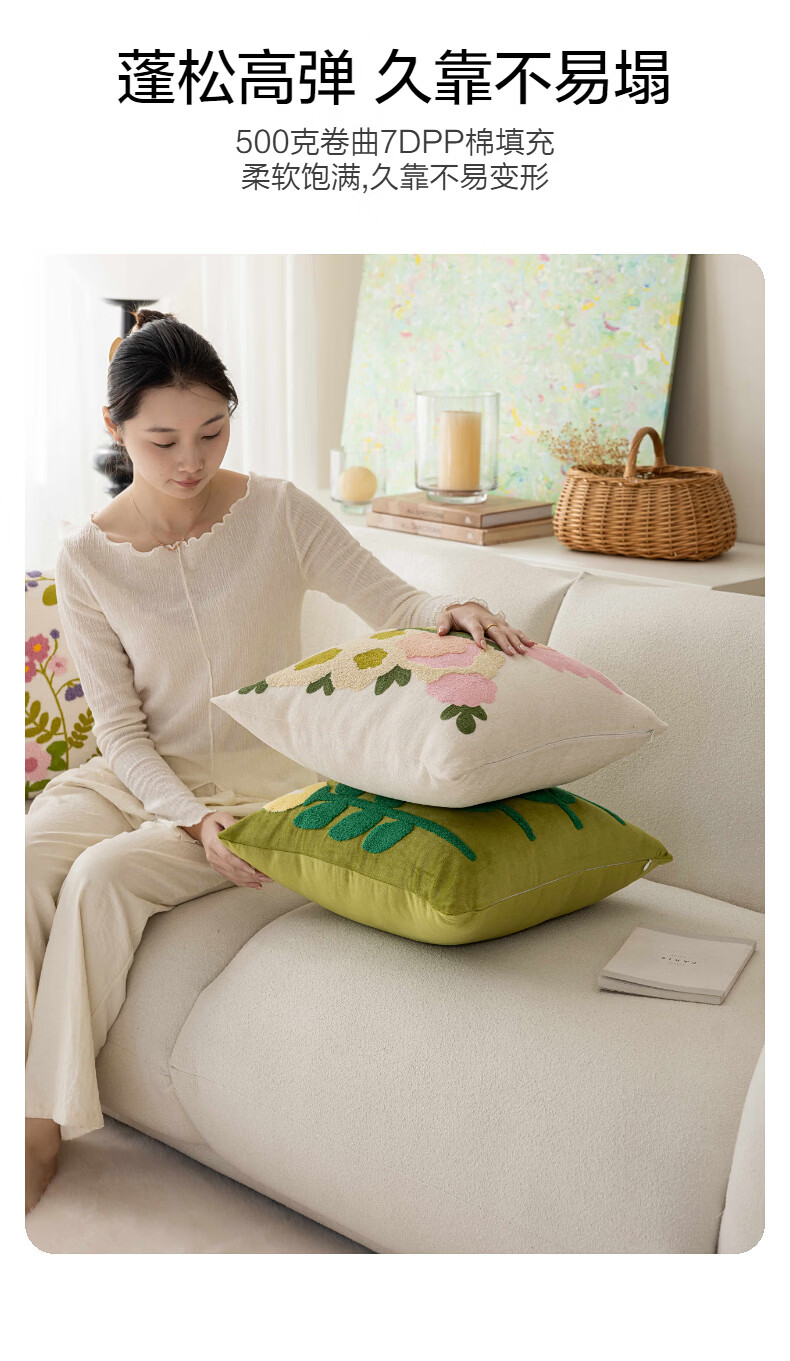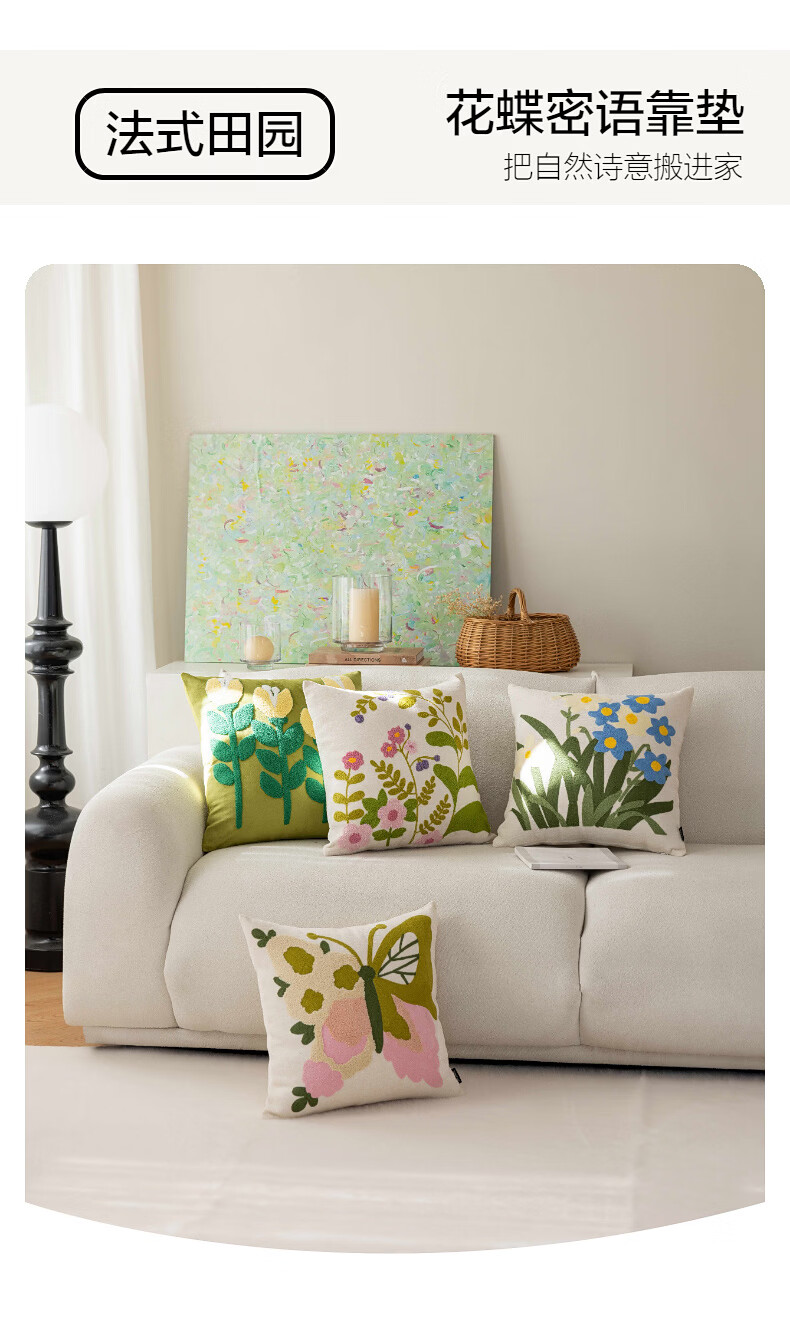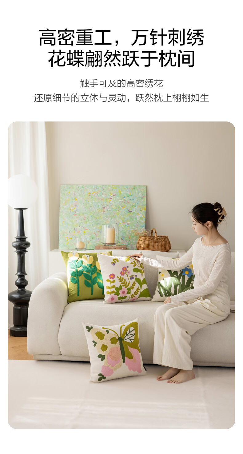 水星家纺花蝶密语靠垫/春蕊花境靠垫 春蕊花境靠垫(草绿色) 45cm*45cm*18cm 含枕芯