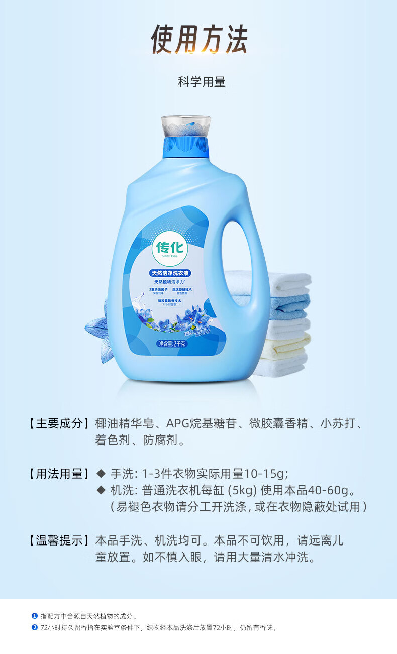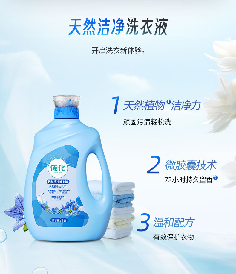 传化天然洁净洗衣液持久留香护衣柔顺洁净低泡易漂快洗洗衣液 到手四斤