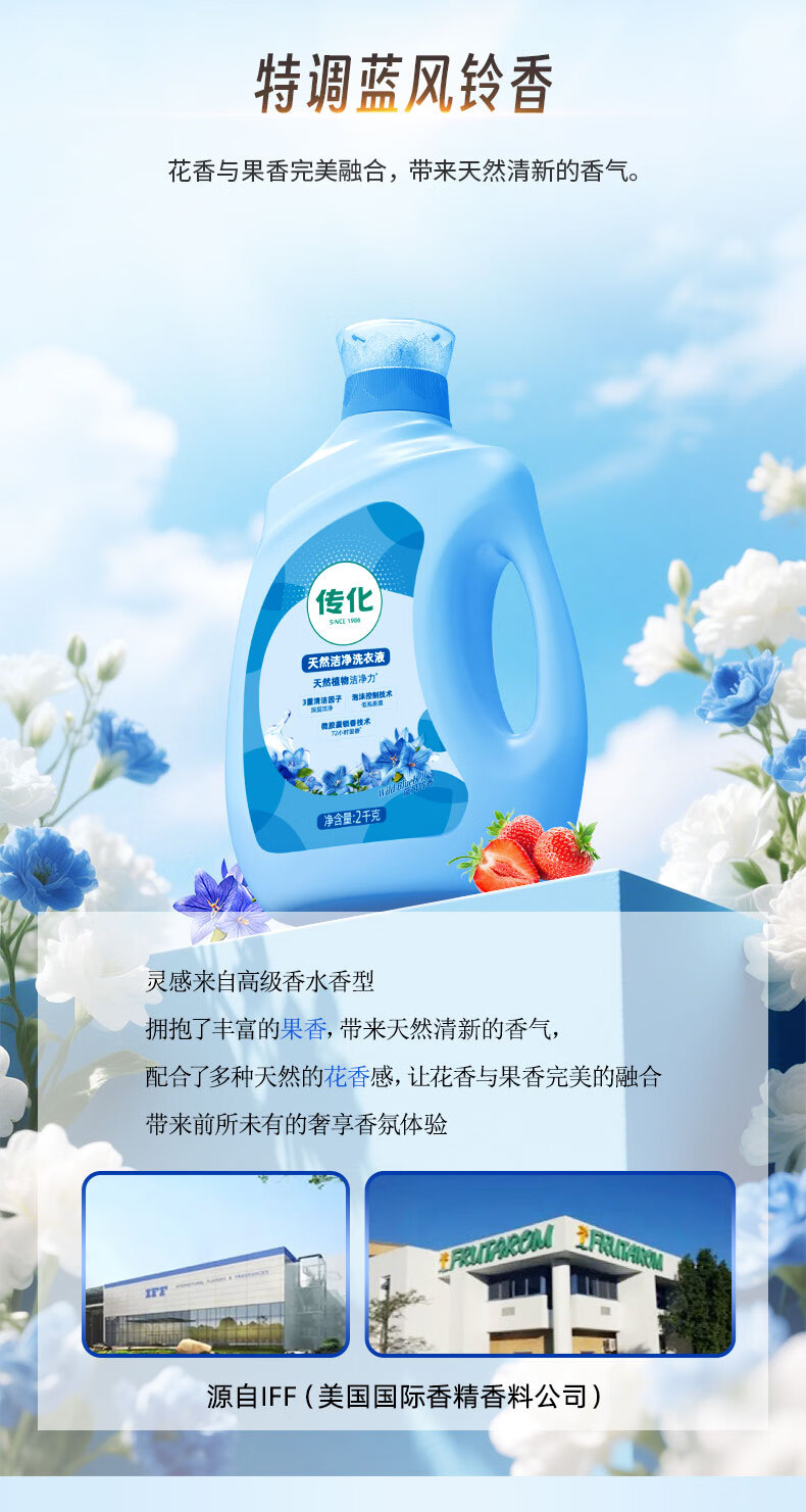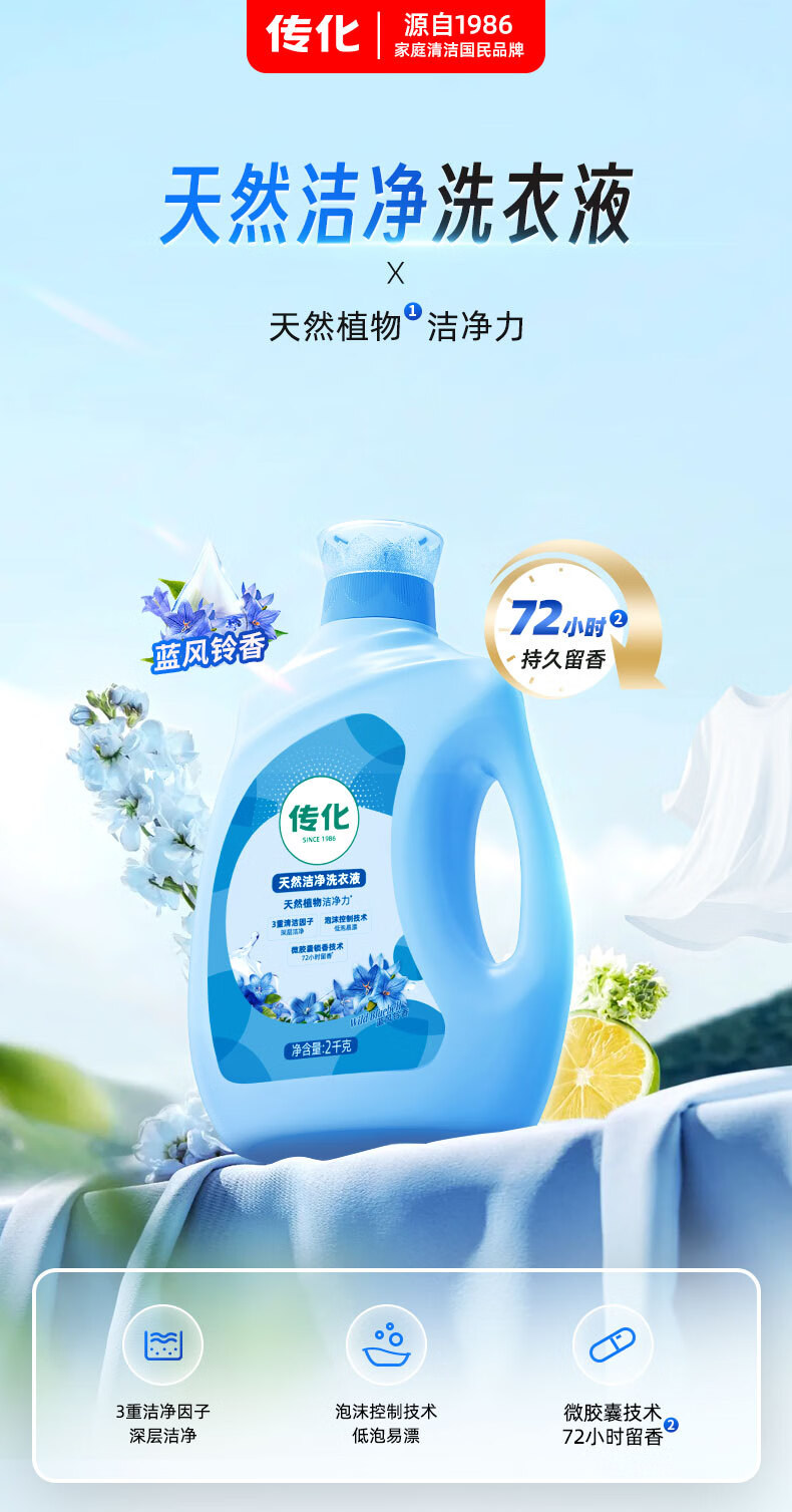 蔬果园香氛洗衣液 持久留香快洗速净除菌除螨薰衣草洗衣液 婴儿大人可用 【除螨抑菌】5斤 | 蓝风铃洗衣液