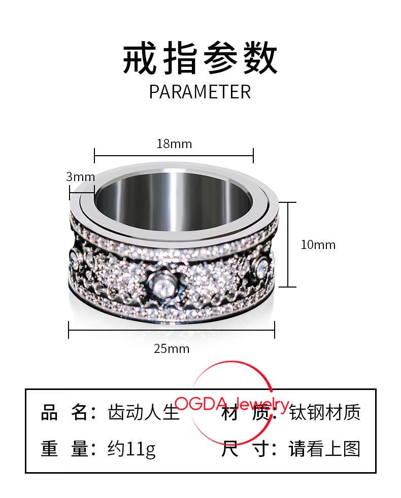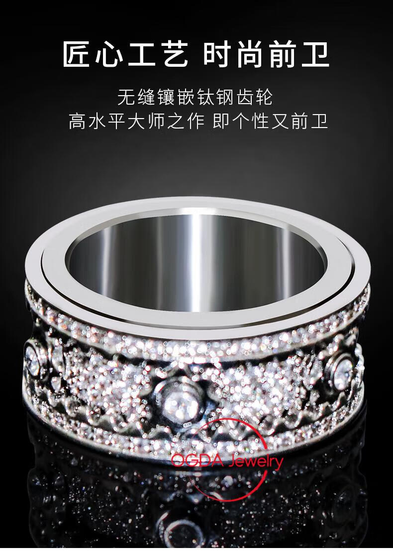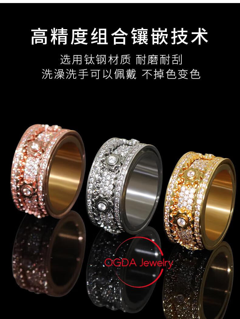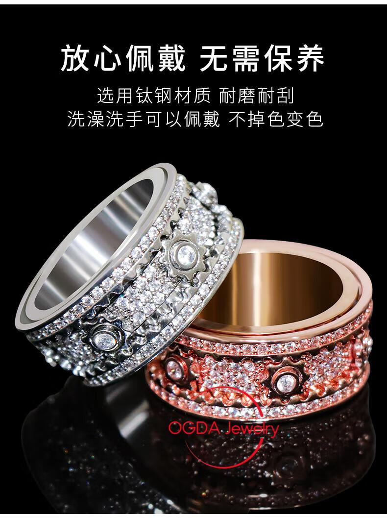 DL 1998胖东来同款时来运转戒指齿轮满钻旋转机械可转动满天星感男女 玫瑰金【满钻】 8号适合体重50-60kg