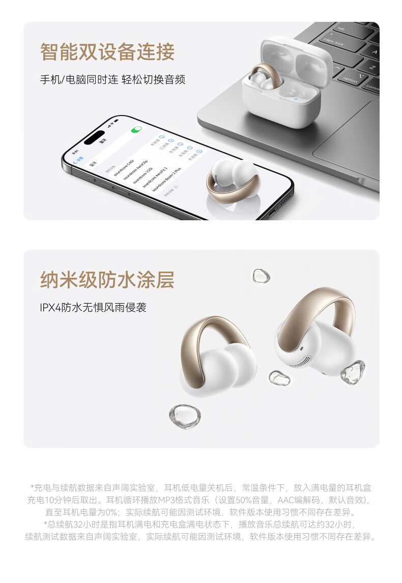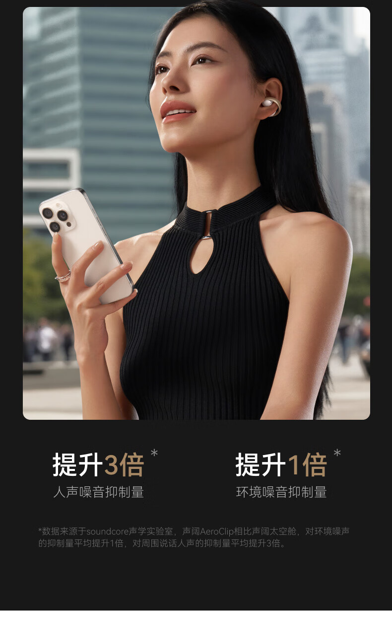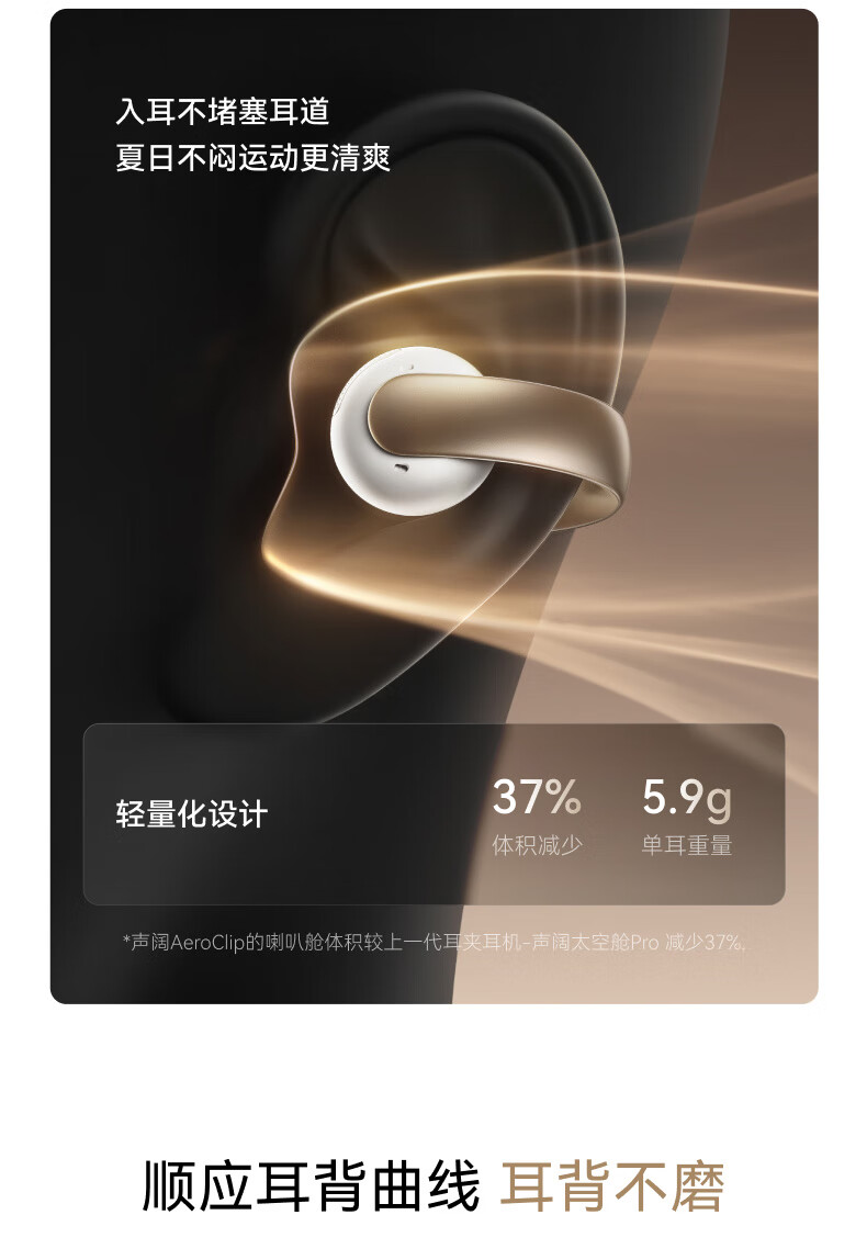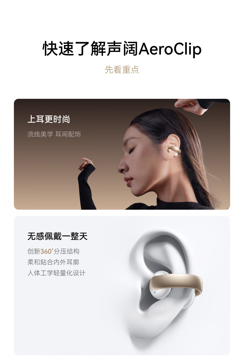 声阔安克【胡彦斌同款】AeroClip耳夹式蓝牙耳机无线开放式运动跑步耳机气传导耳机适用苹果华为小米白