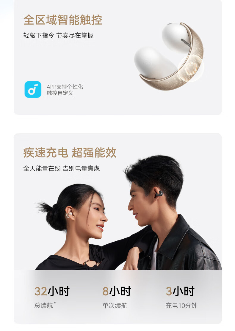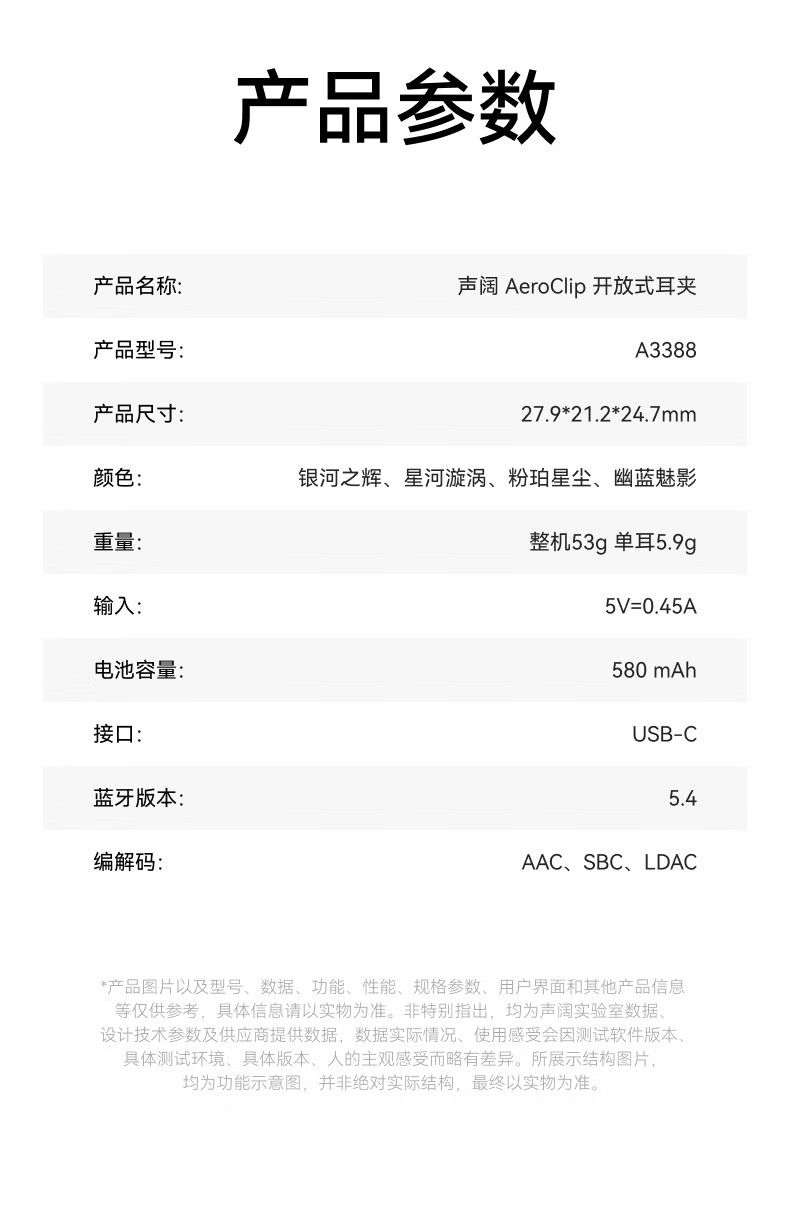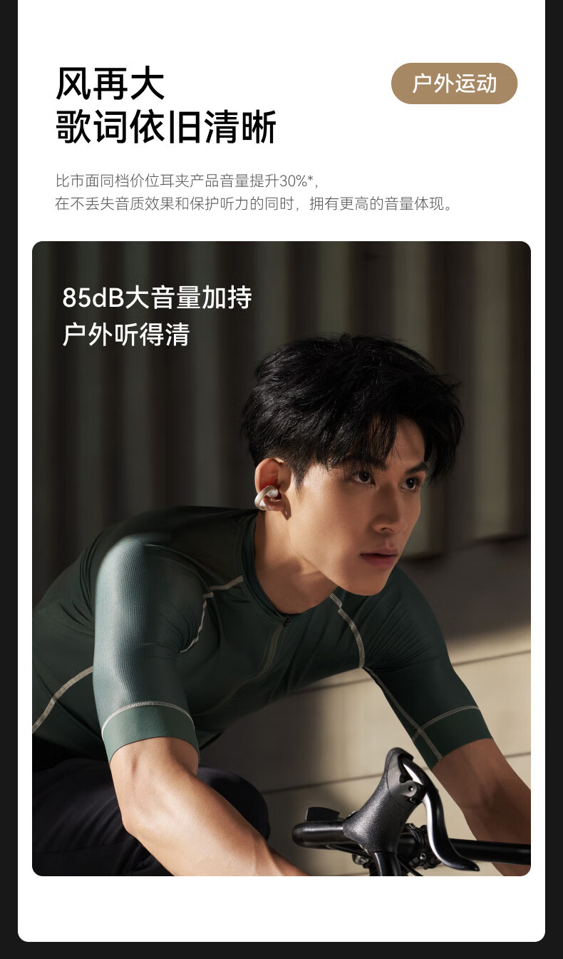 声阔安克【胡彦斌同款】AeroClip耳夹式蓝牙耳机无线开放式运动跑步耳机气传导耳机适用苹果华为小米白
