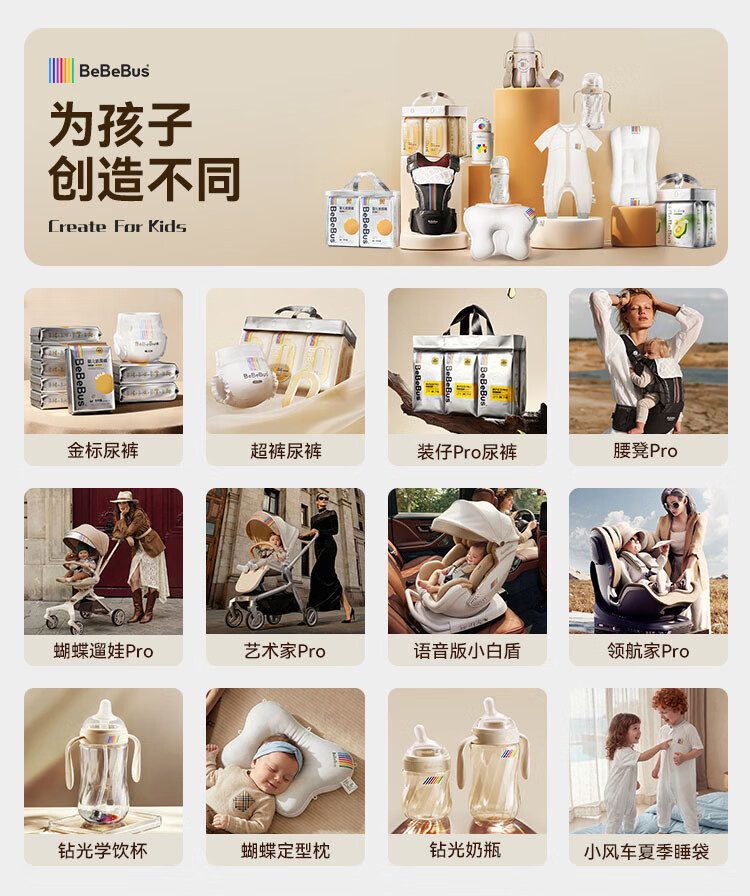 bebebus装仔pro纸尿裤试用装M码4片(6-11kg)透气超薄尿不湿